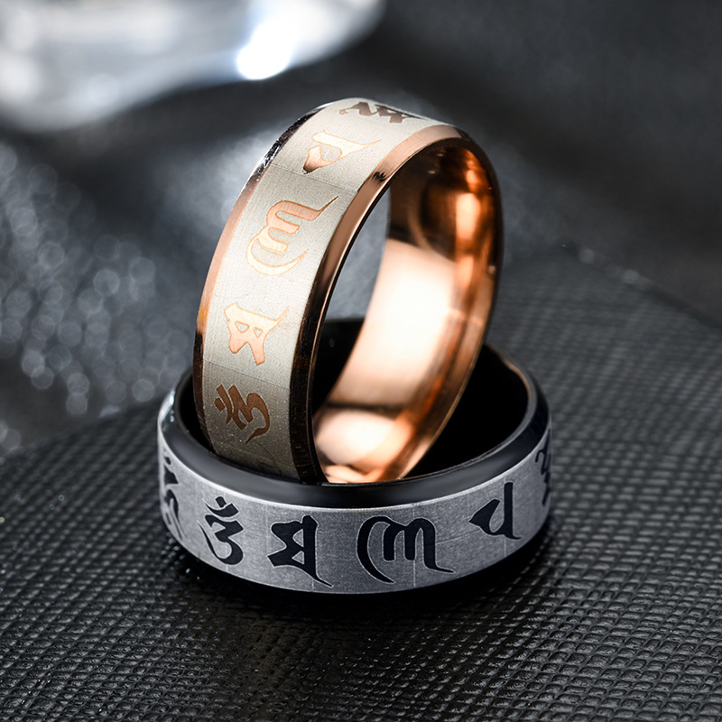 0 Review for Six-Character Mantra Personalized Stainless Steel Ring For Men And Women