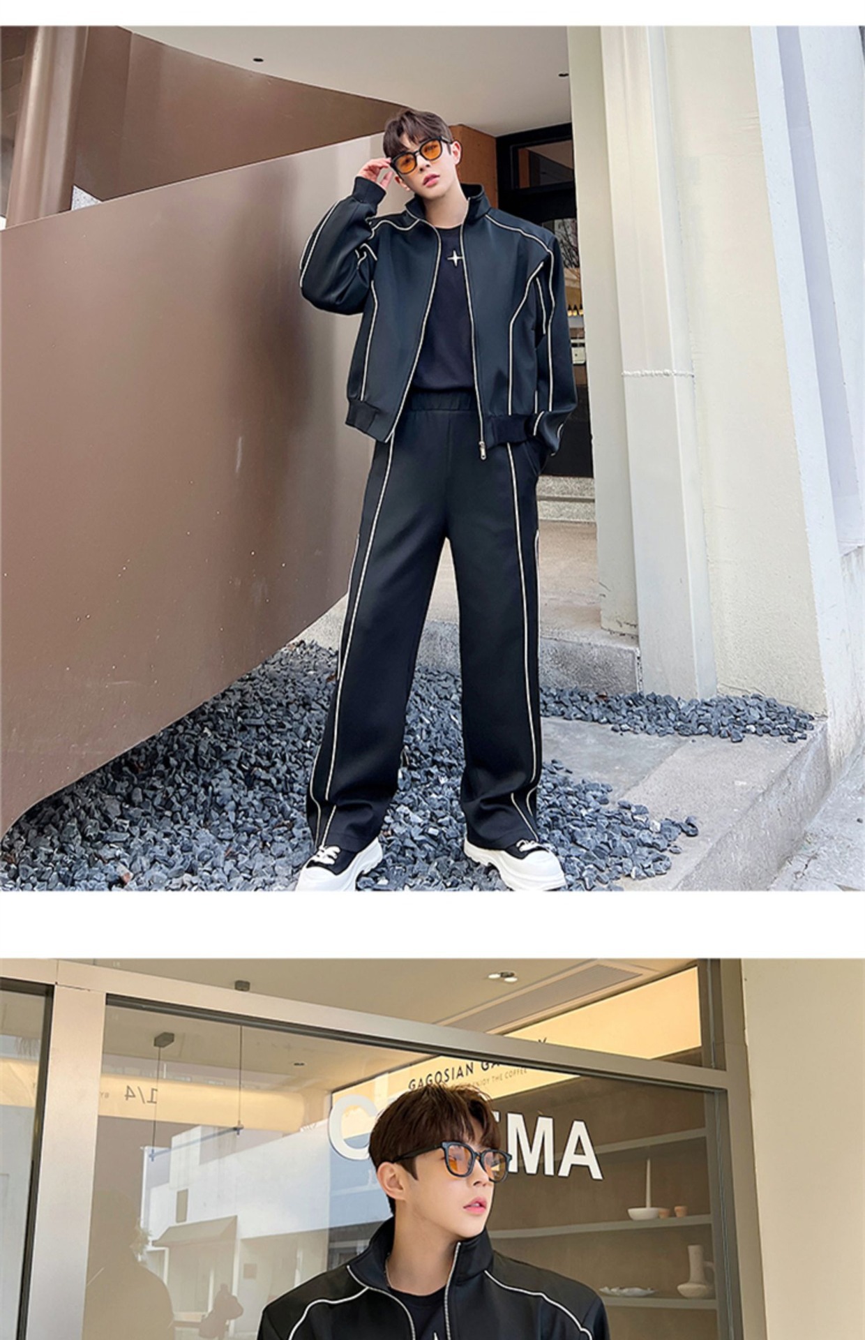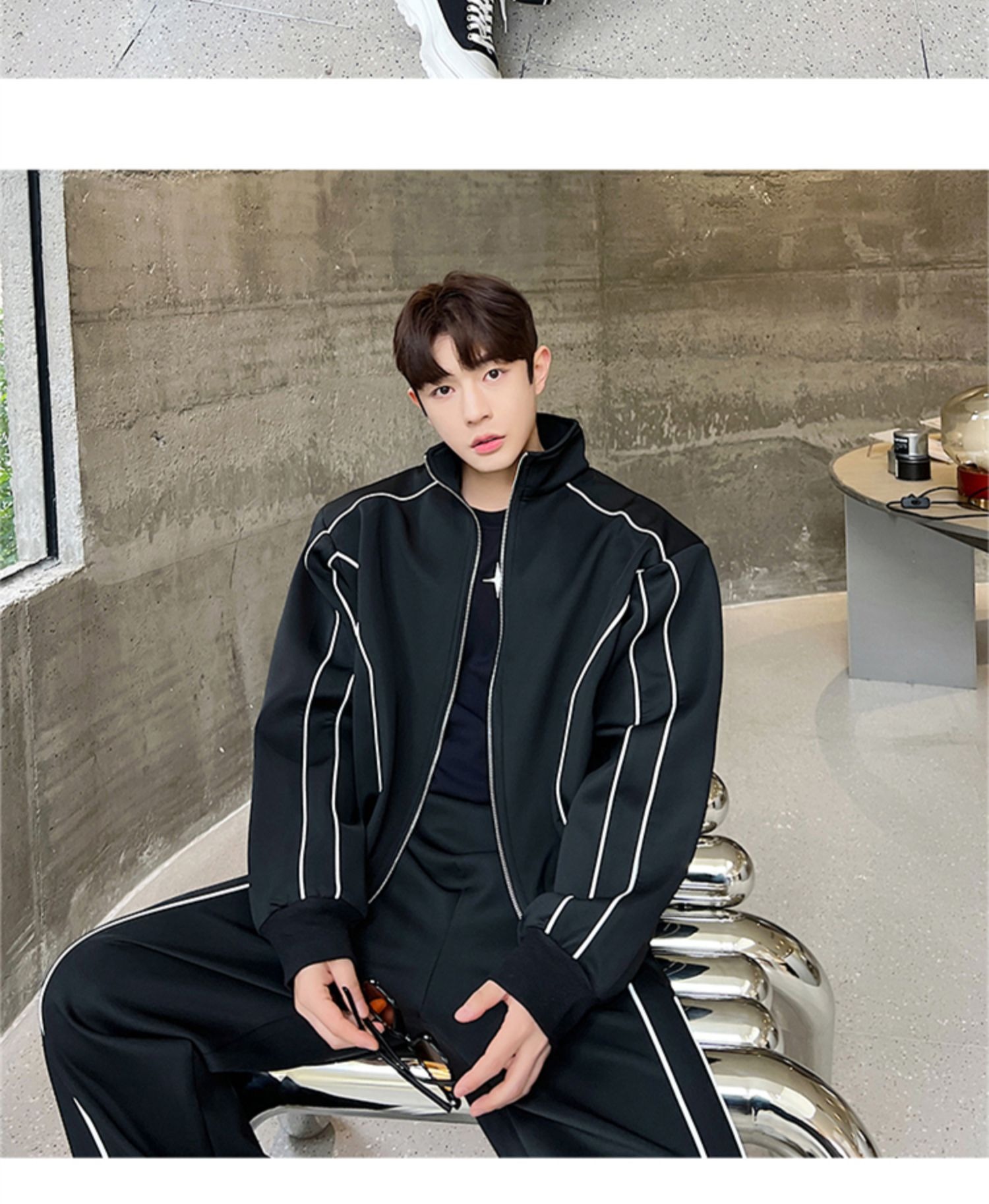 0 Review for Sleek Edgy Casual Wide-leg Pants Sports Suit With Wide-leg Pants