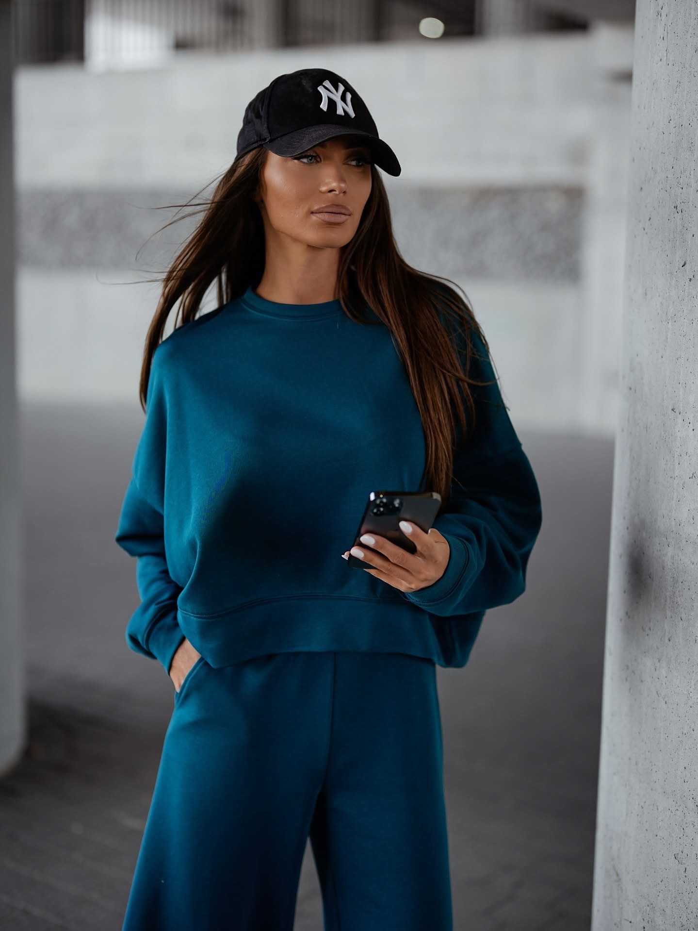 0 Review for Solid Color Pullover Sweatshirt Pants Women's Suit