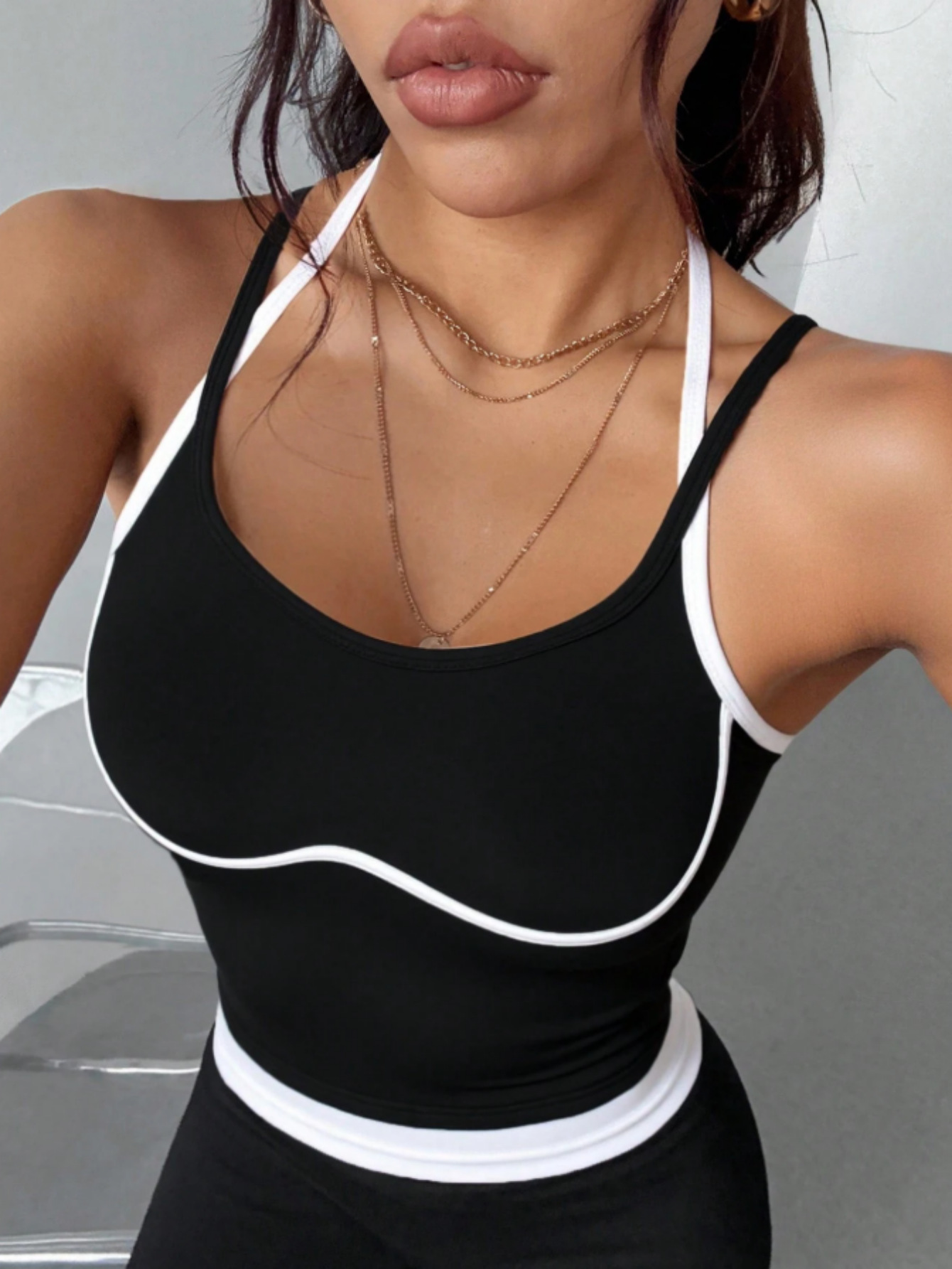 0 Review for Sporty Minimalist Style Patchwork-edged Camisole