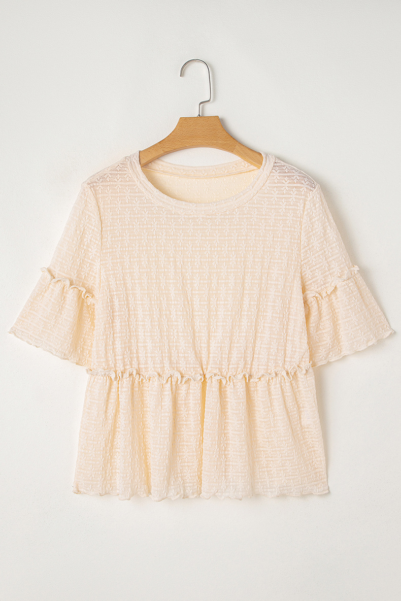 Spring And Summer New Solid Color Pullover Round Neck Short Sleeve Chiffon Shirt