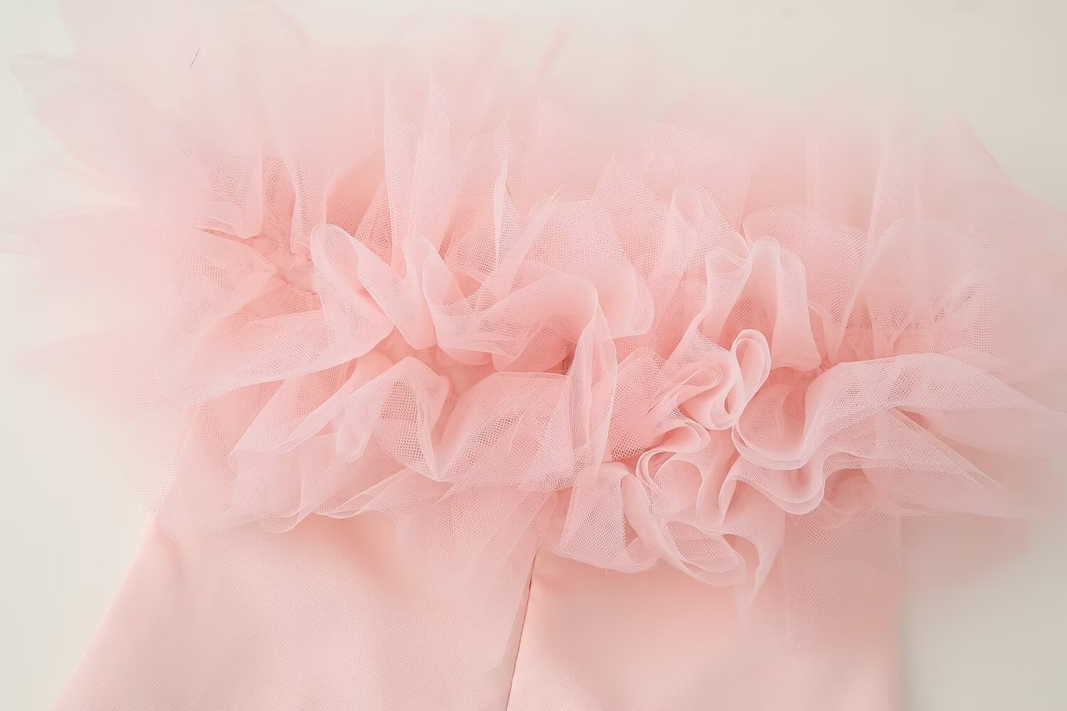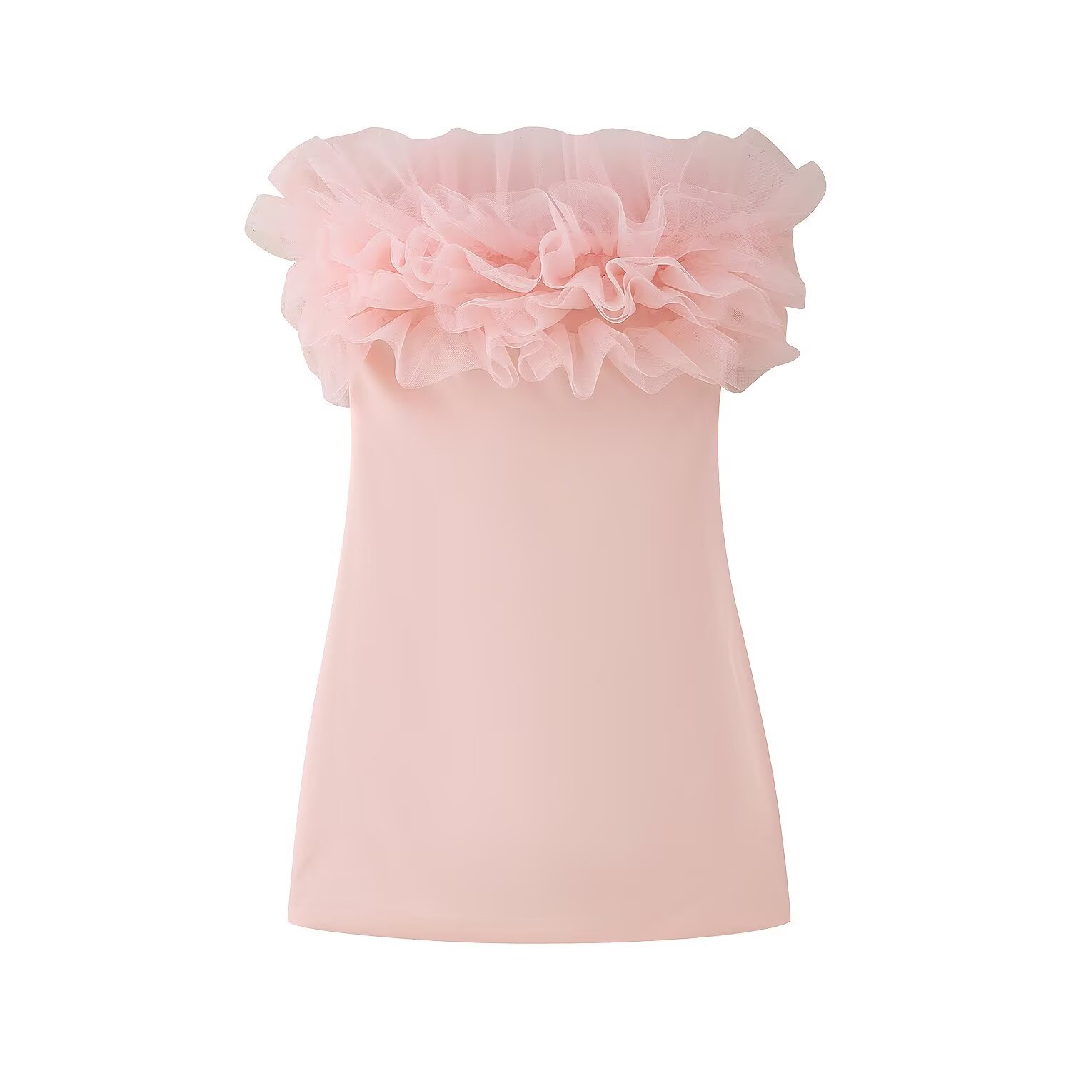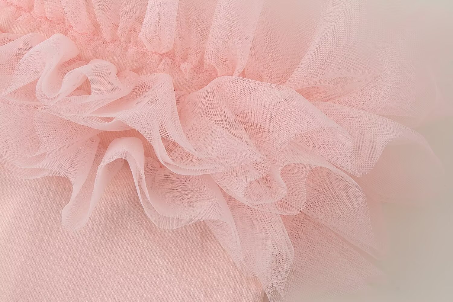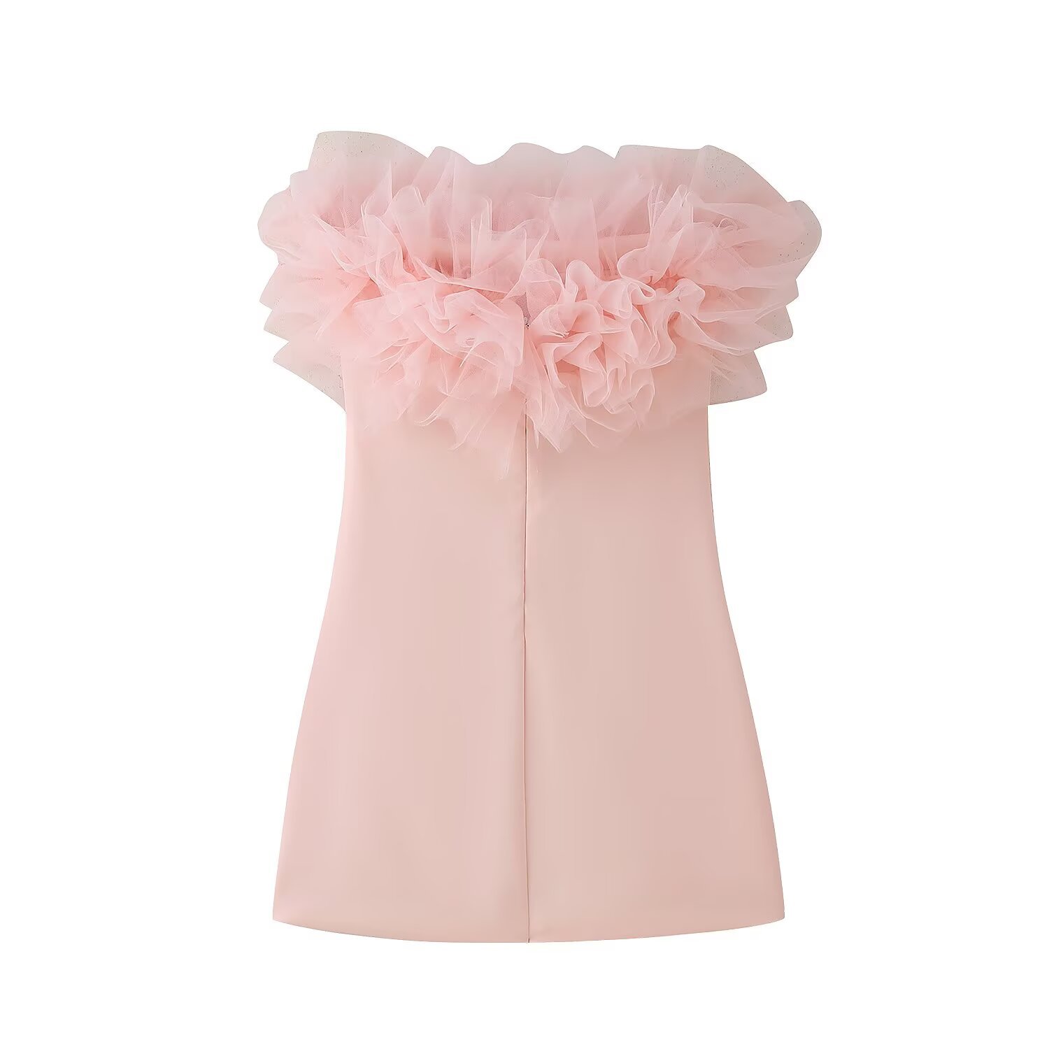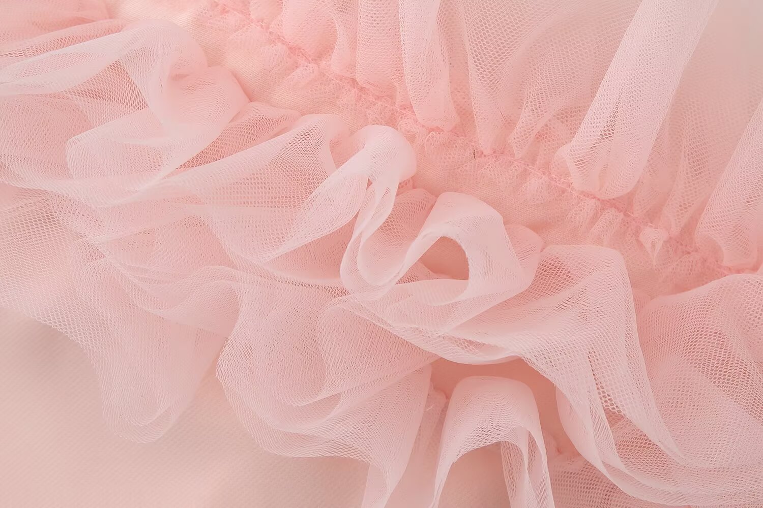 0 Review for Square Collar Printed Fluffy Silk Net Dress
