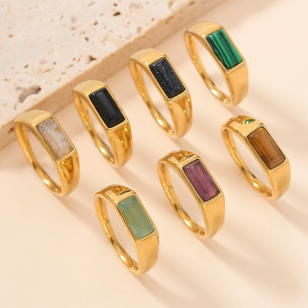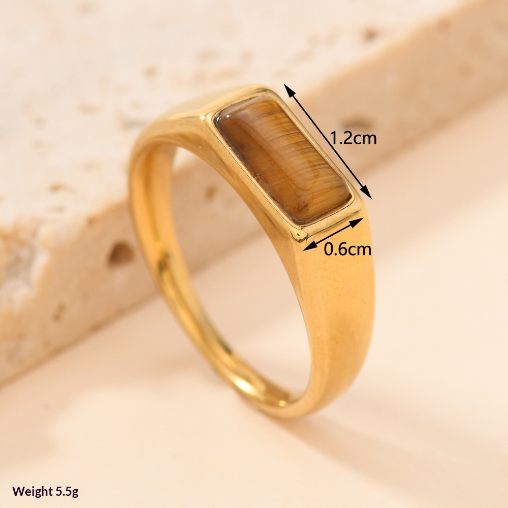 0 Review for Stainless Steel Rectangular Natural Stone Ring