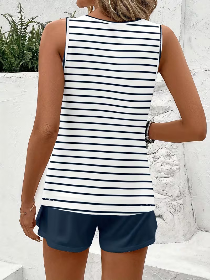 0 Review for Striped Print Sleeveless Two-Piece Set For Women