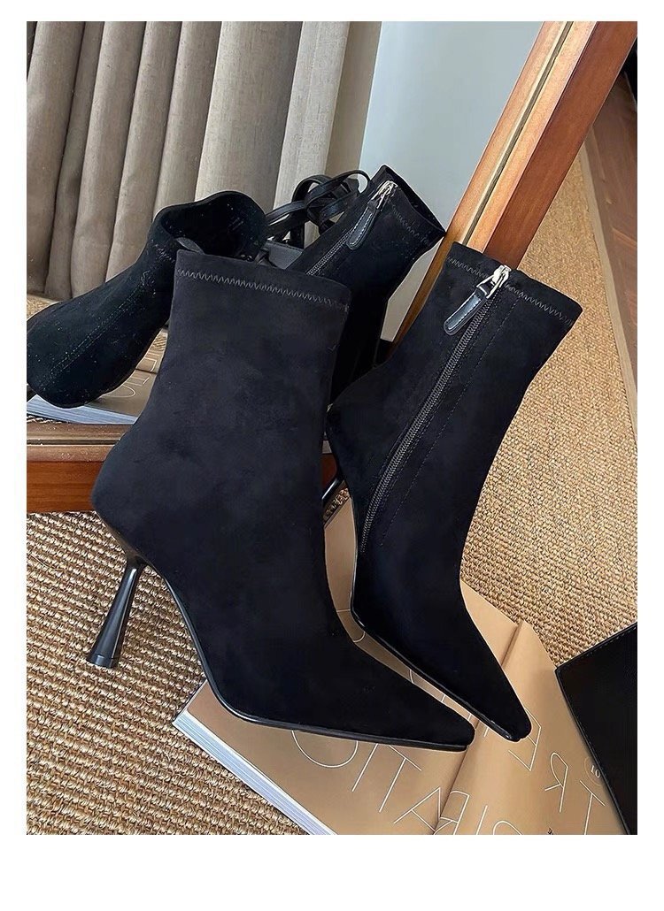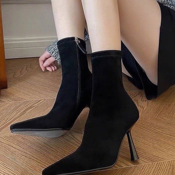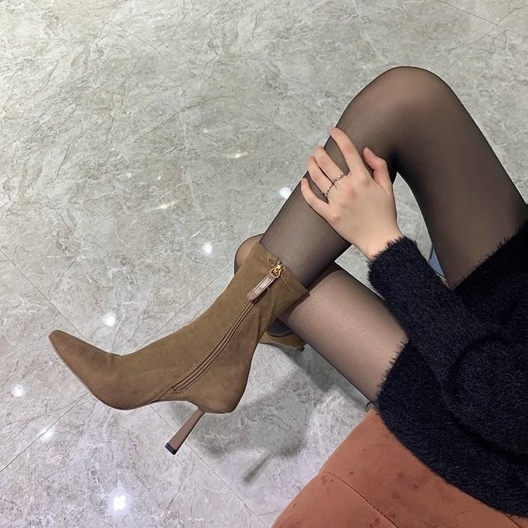 0 Review for Stylish Mid-calf Suede Stretch High Heels With A Thin Heel That Flatters The Legs