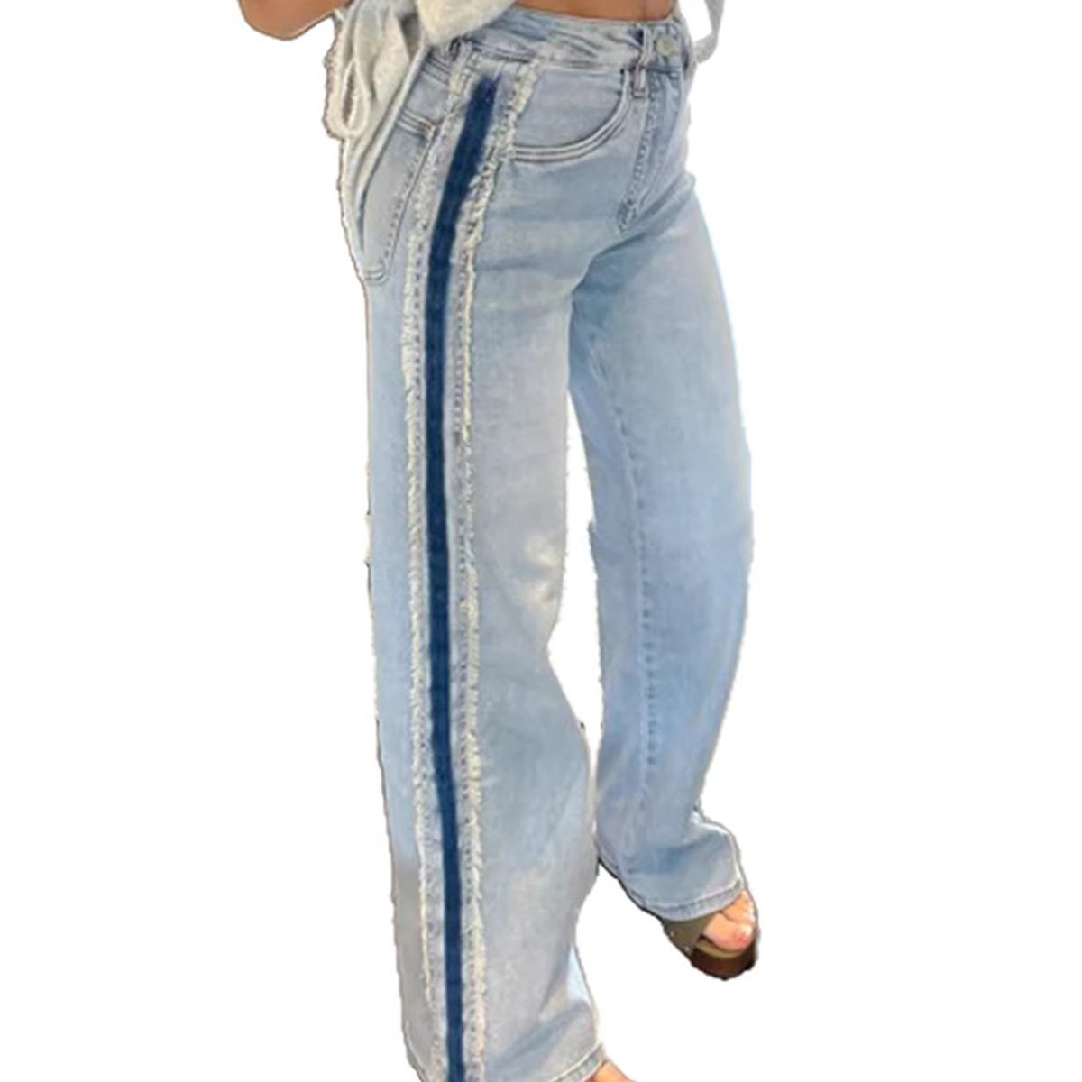Stylish Versatile Womens Distressed Straight Jeans With Contrasting Trim