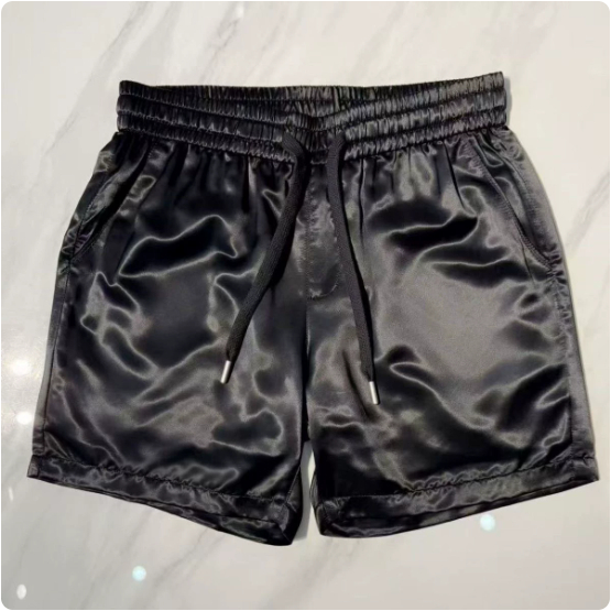 Summer Acetate Casual Mens Solid-Color Versatile Trendy Simple Elastic-Waist Drawstring Shorts