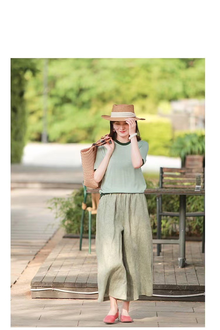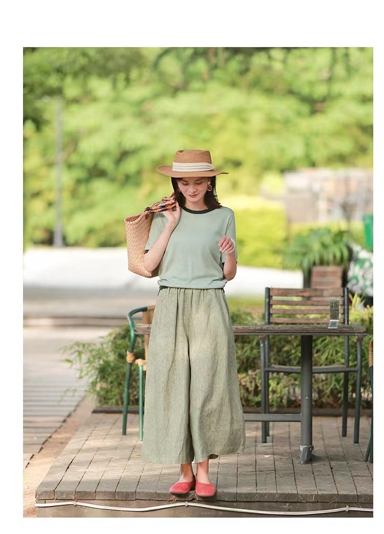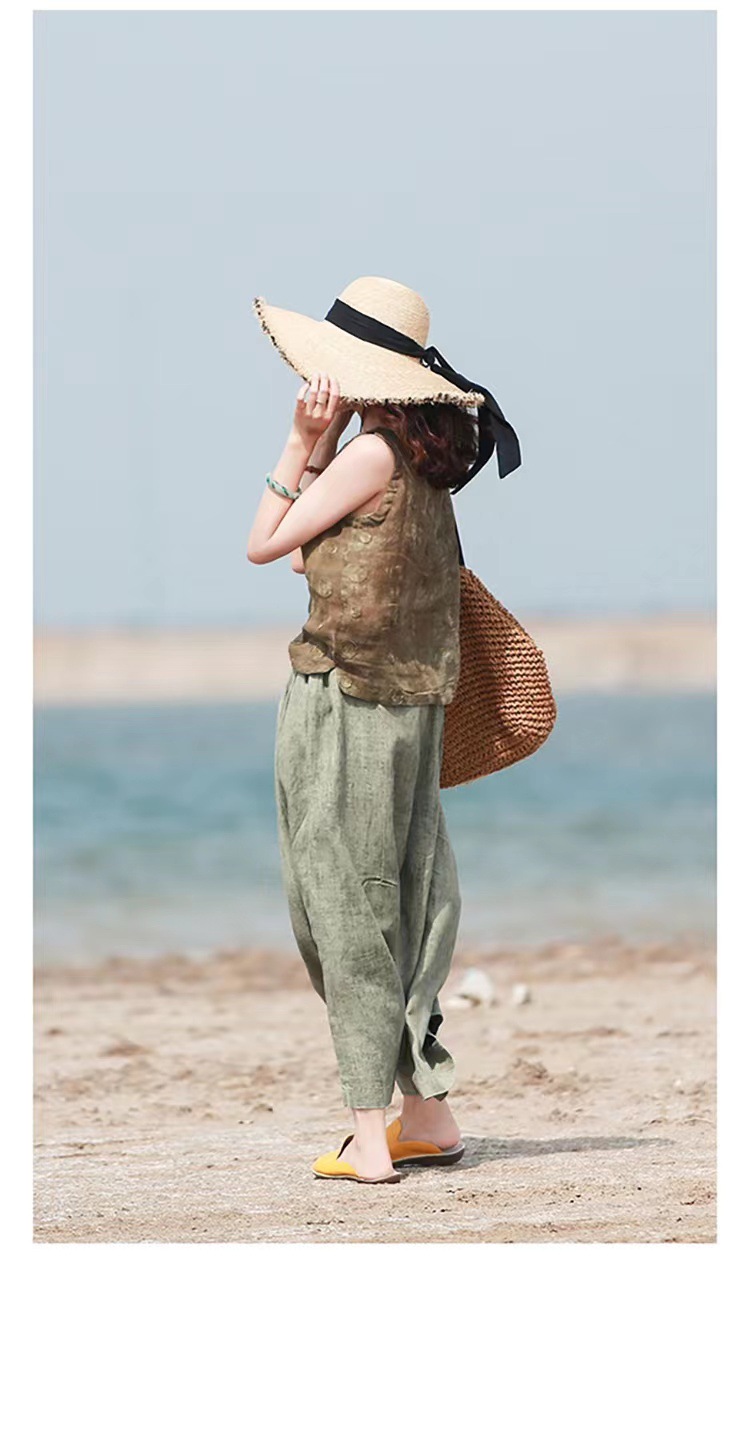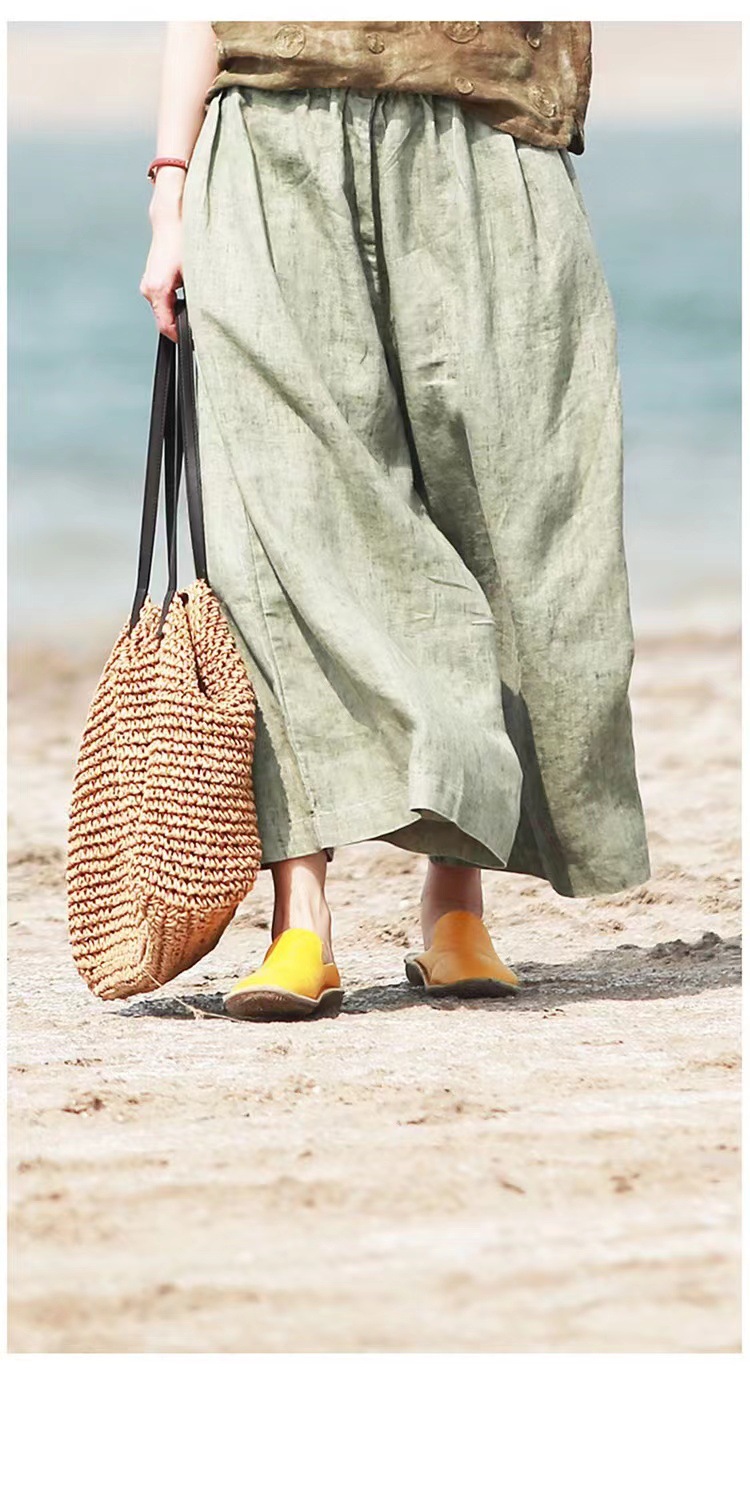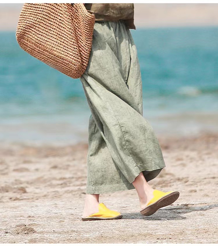 Summer Cotton-linen Loose-fitting Lightweight Capri Wide-leg Pants