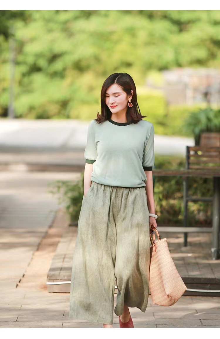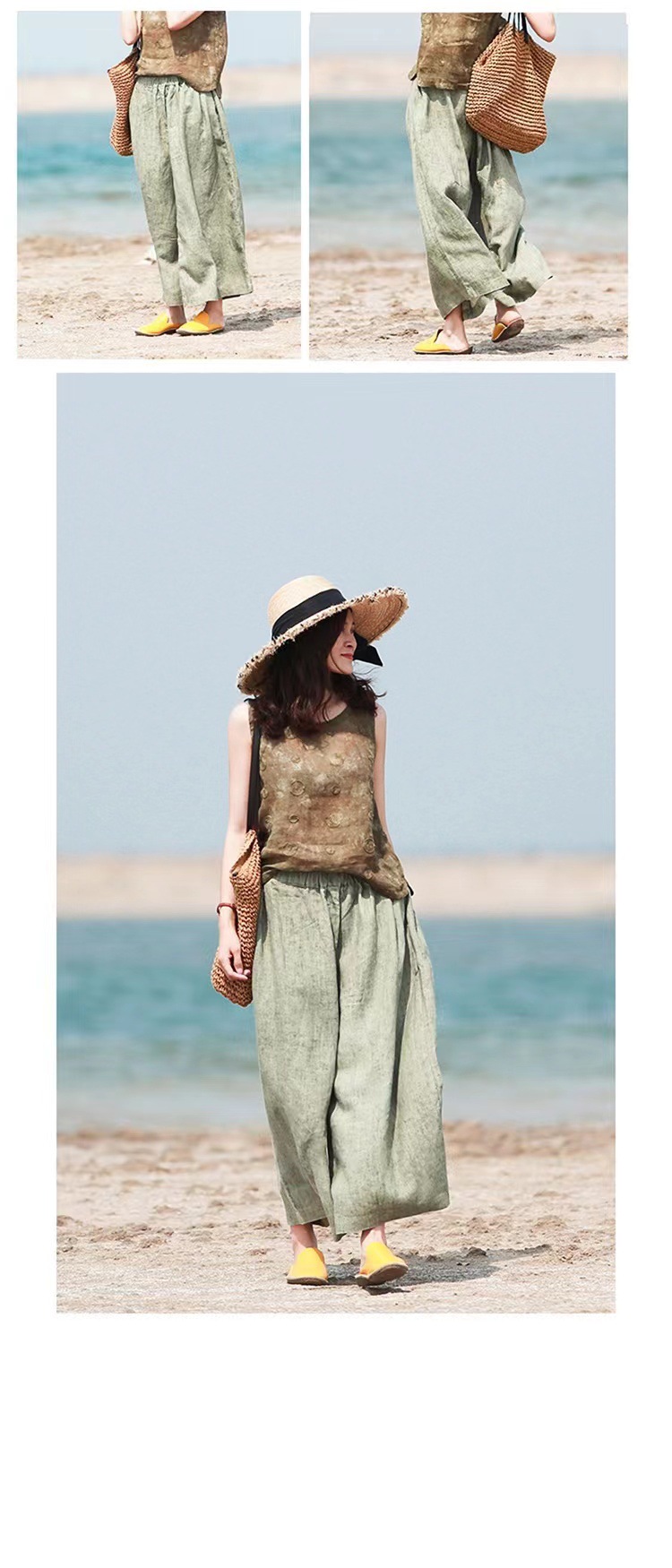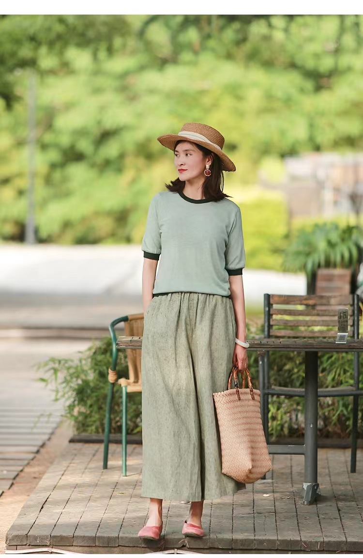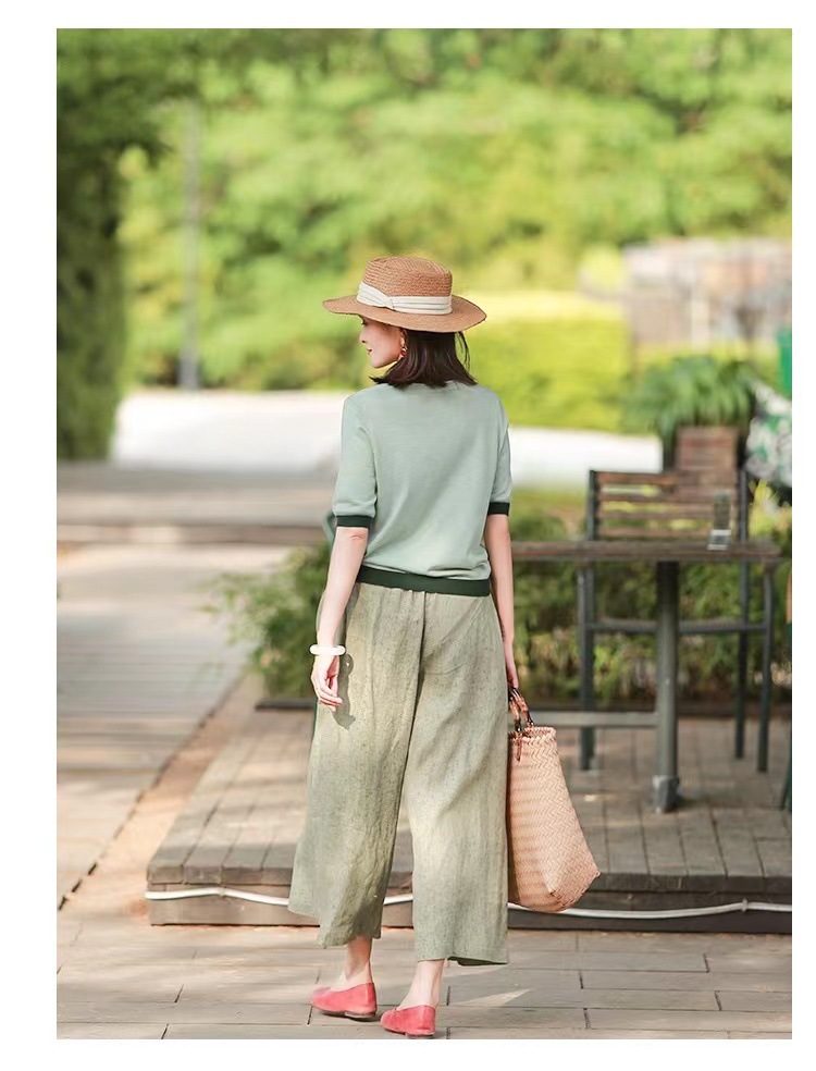 Summer Cotton-linen Loose-fitting Lightweight Capri Wide-leg Pants