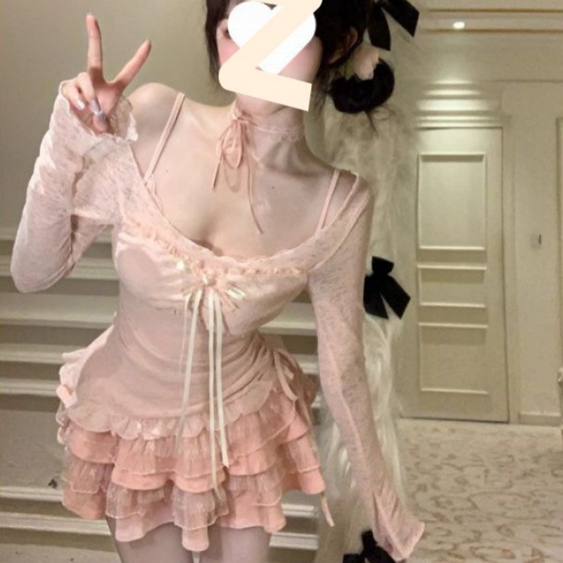 Summer Sweet Hot Girl Pure Desire Smock Top Strap Dress Two-piece Suit