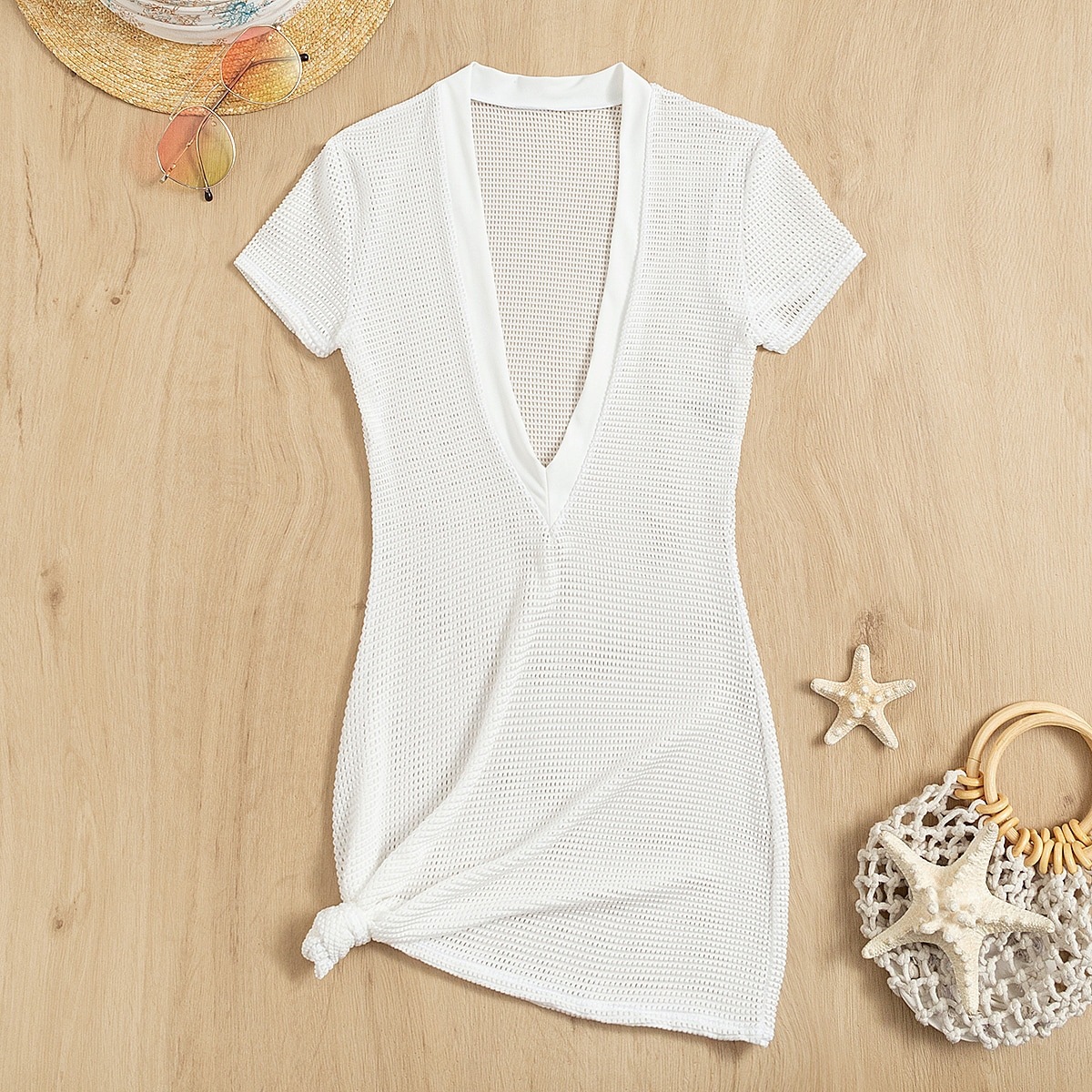 Sunscreen Women's High-Stretch Deep V-Neck Sexy Slimming Sheath Dress