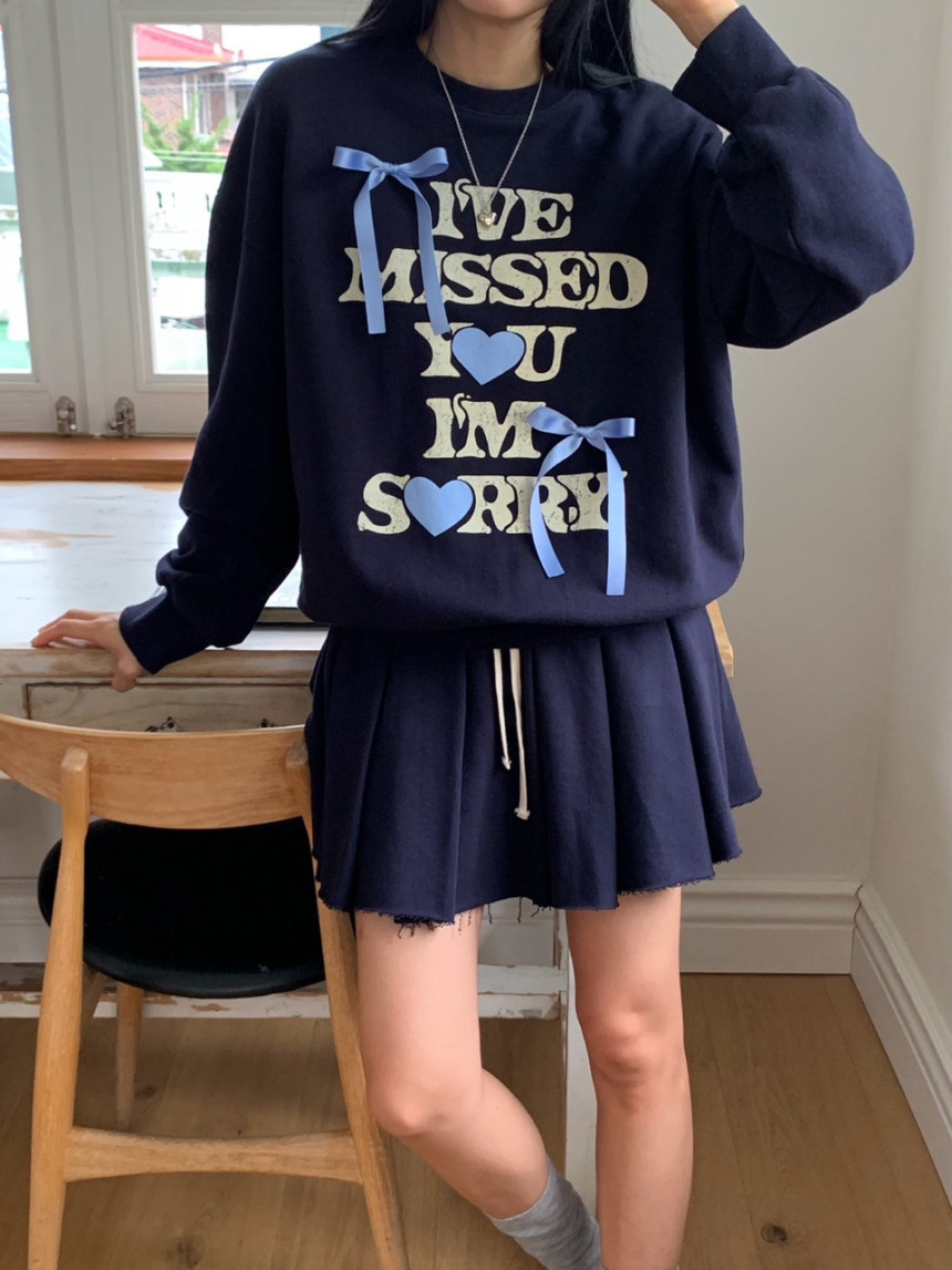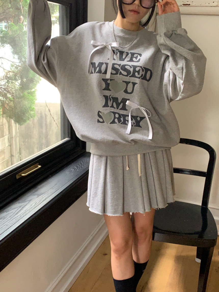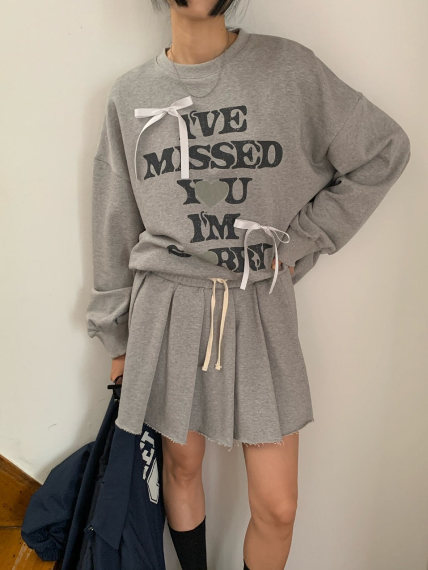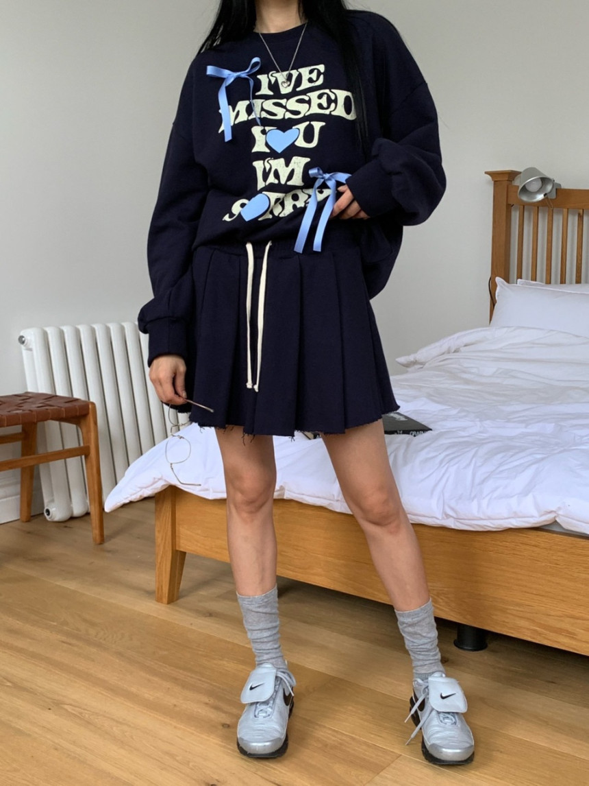 0 Review for Sweet Bow Letter Printed Crew Neck Sweatshirt Skirt Suit