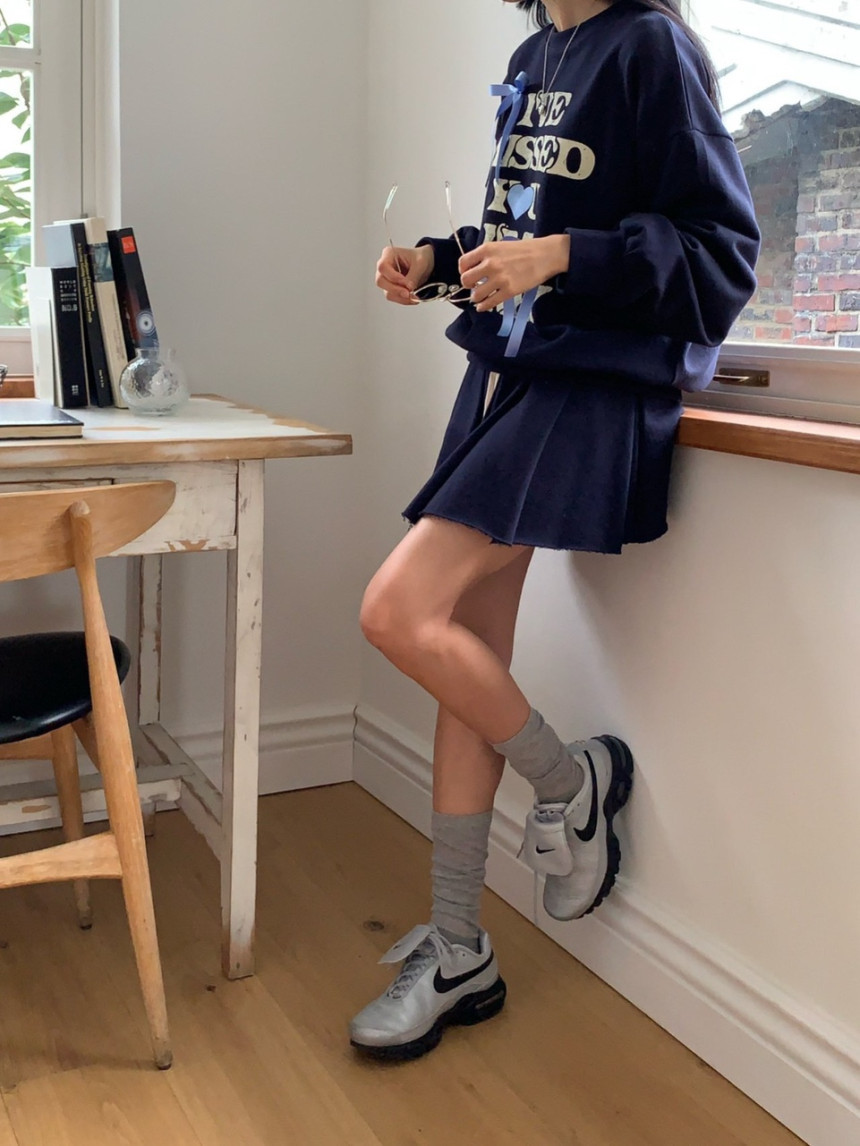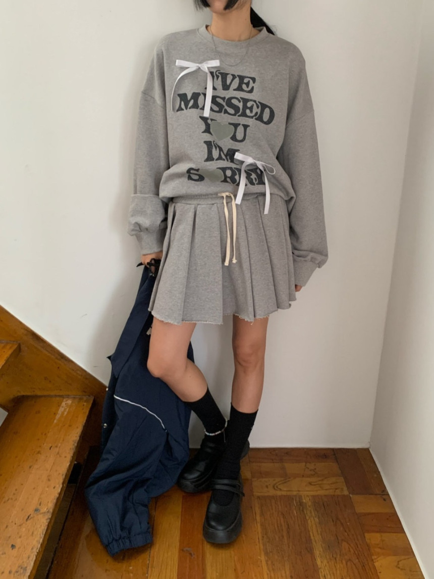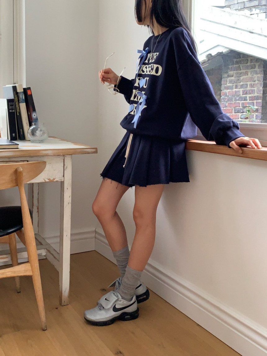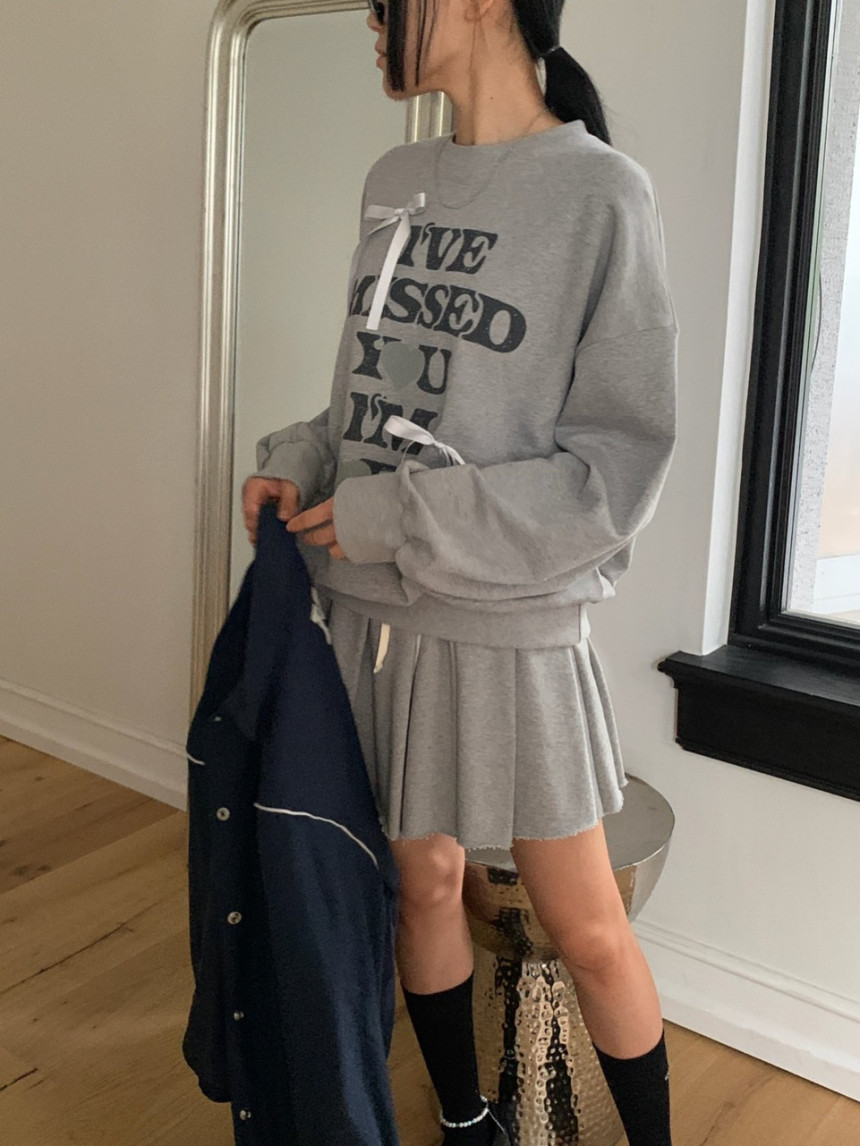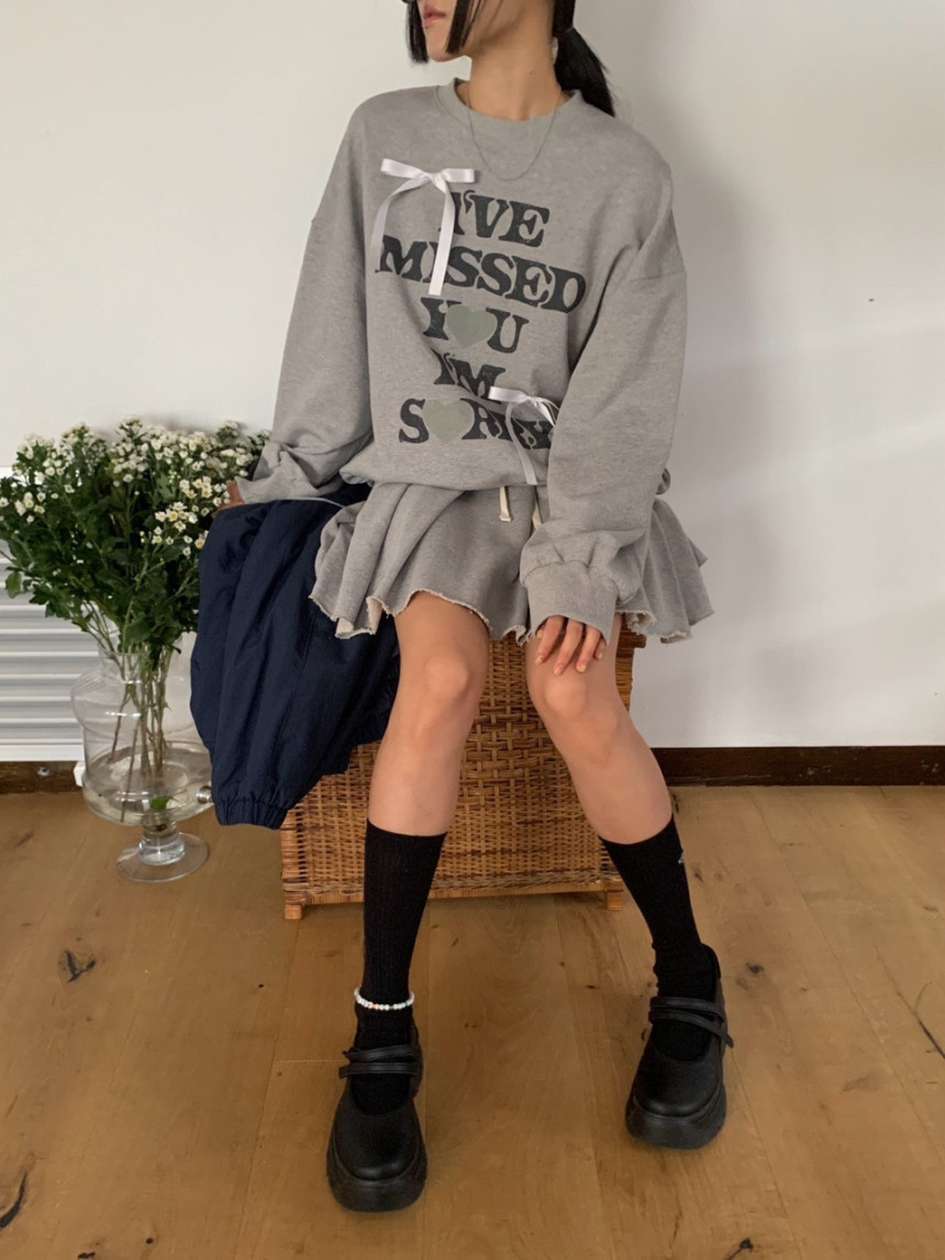 0 Review for Sweet Bow Letter Printed Crew Neck Sweatshirt Skirt Suit