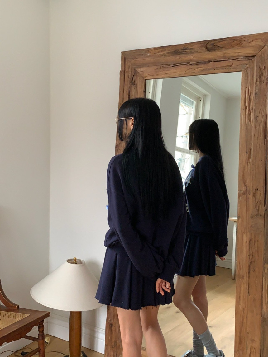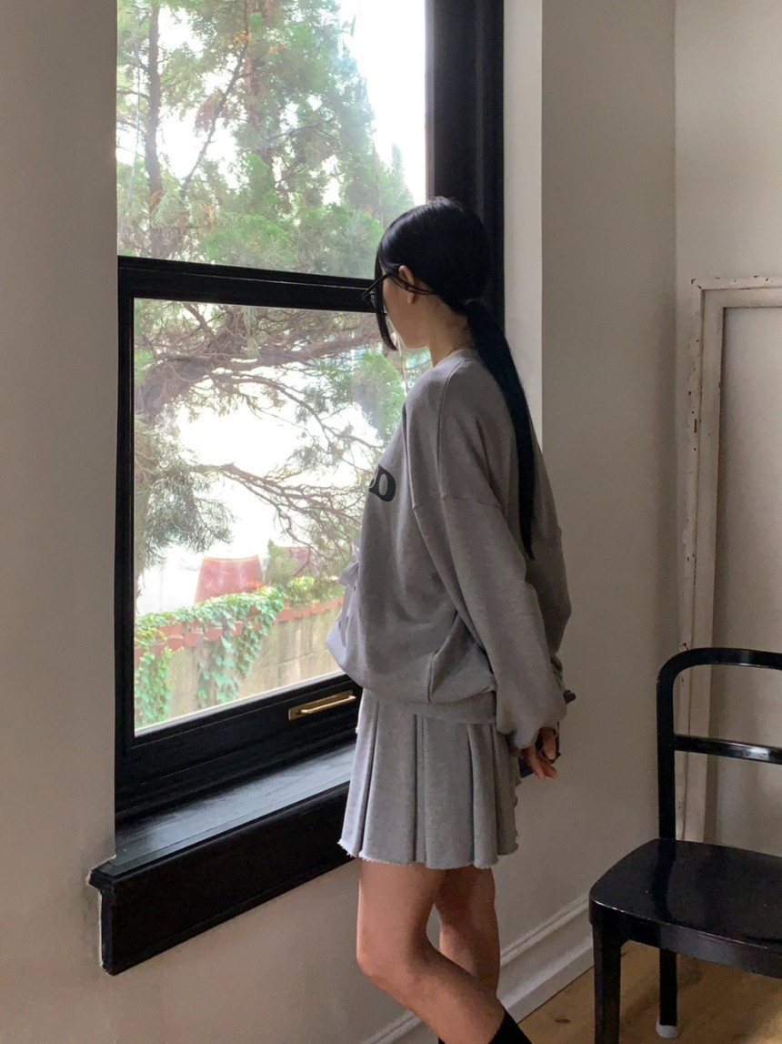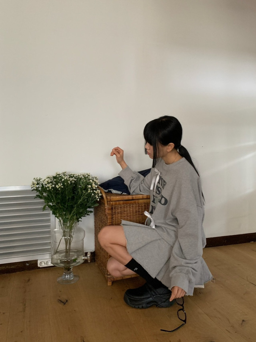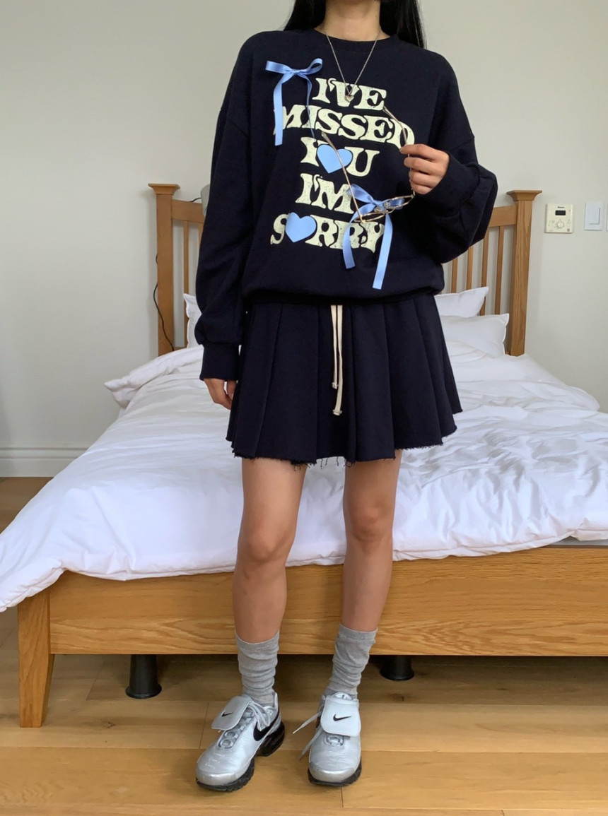 0 Review for Sweet Bow Letter Printed Crew Neck Sweatshirt Skirt Suit