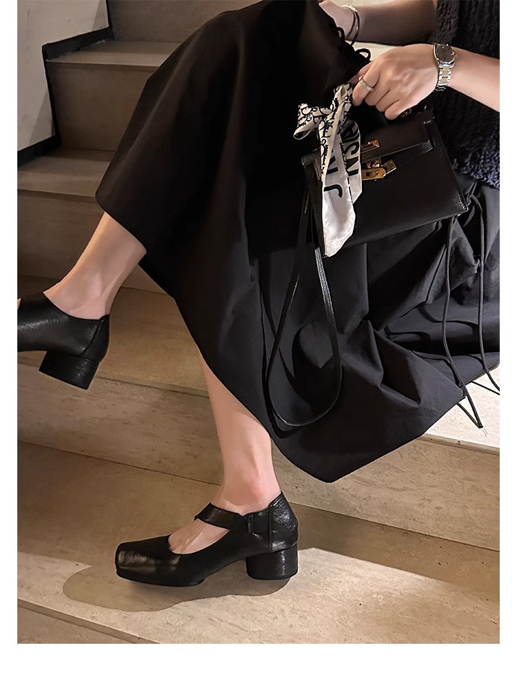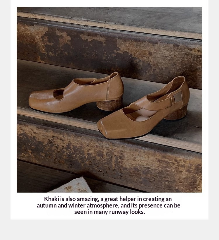 Colors: Black (Flat Sole), Khaki (Flat Sole), Black (Block Heel), Khaki (Block Heel)