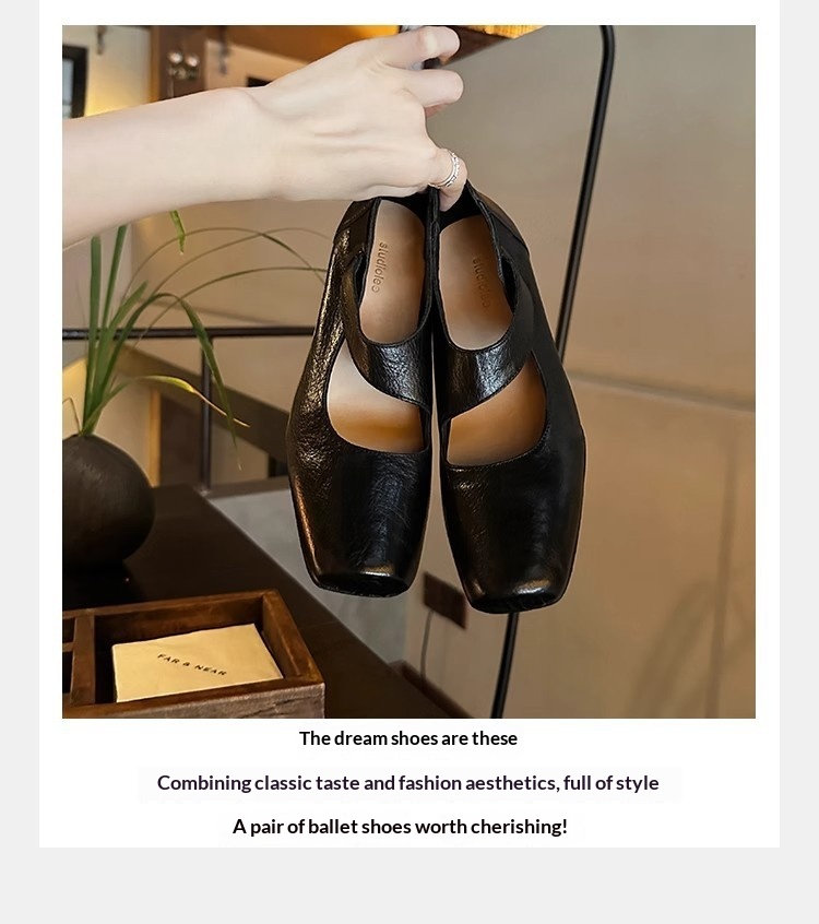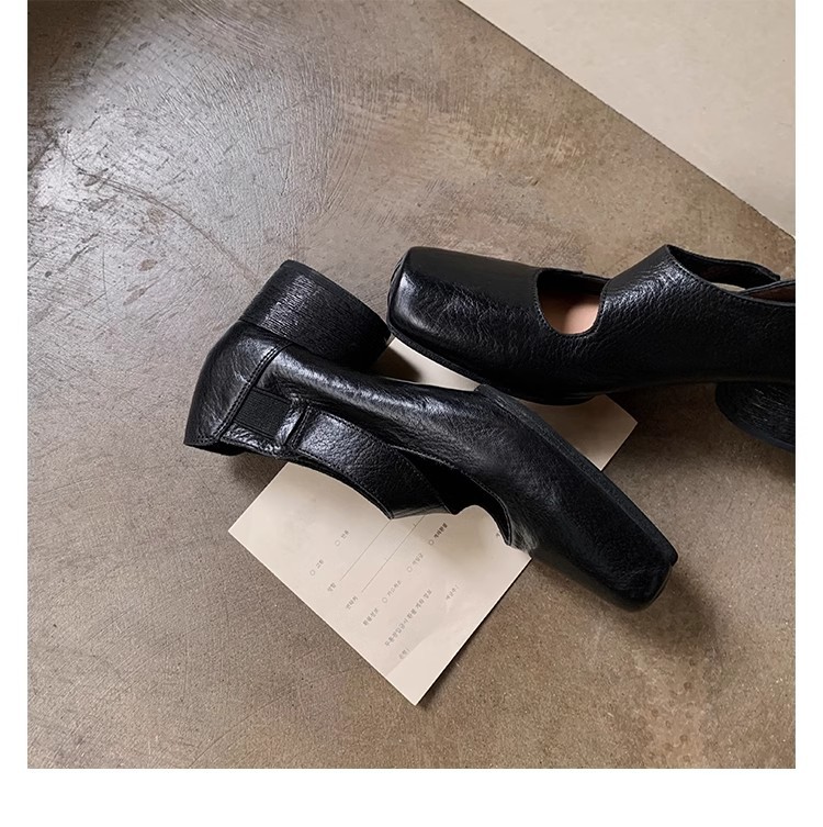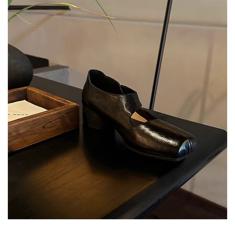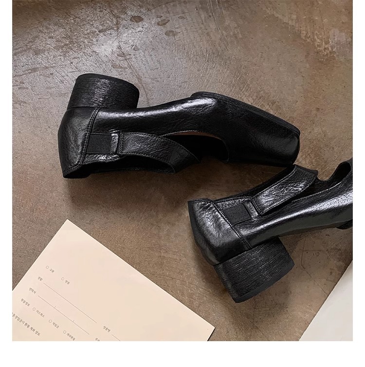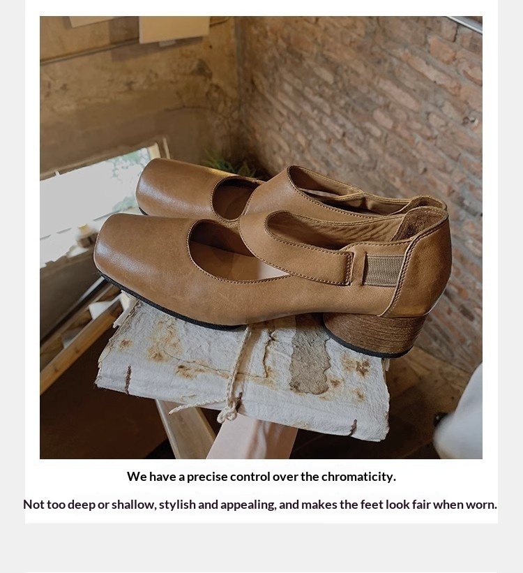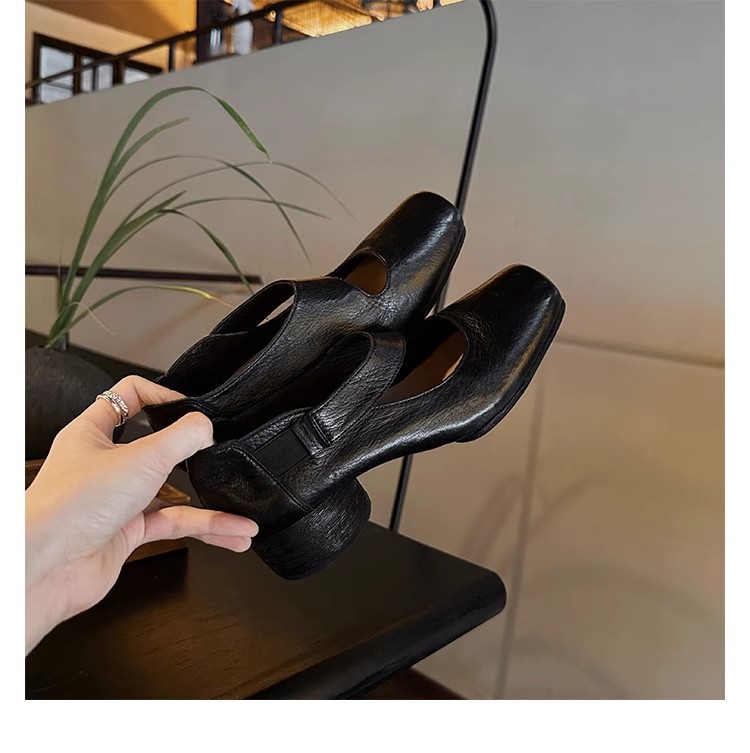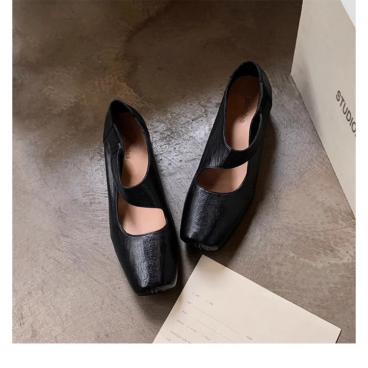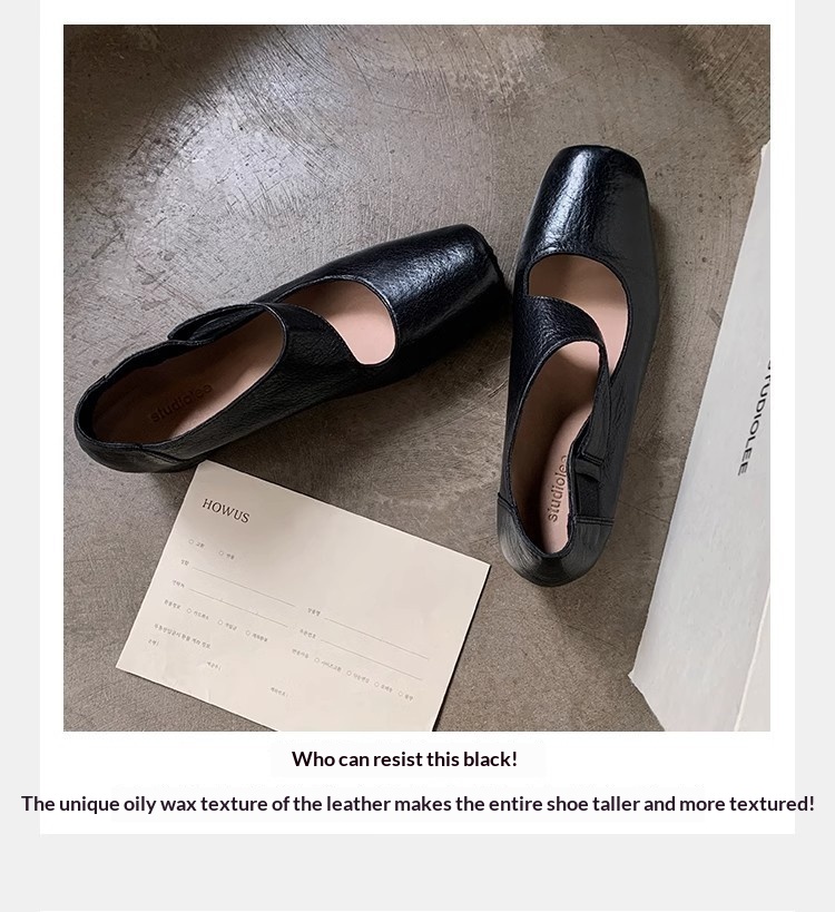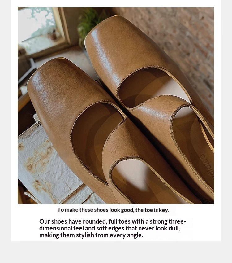 0 Review for Textured Horsehide Square-toe Chunky-heel Soft-upper Womens Ballet Flats