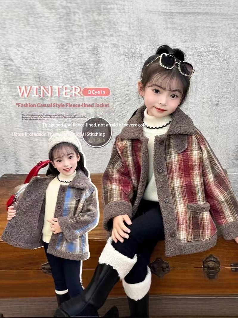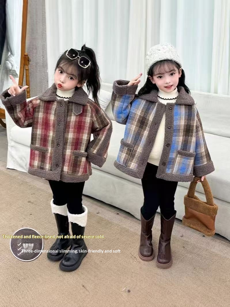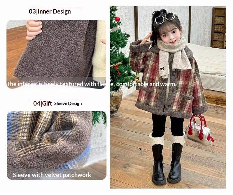 Thickened Fleece-Lined Warm Collared Top For Older Kids AutumnWinter Korean Style