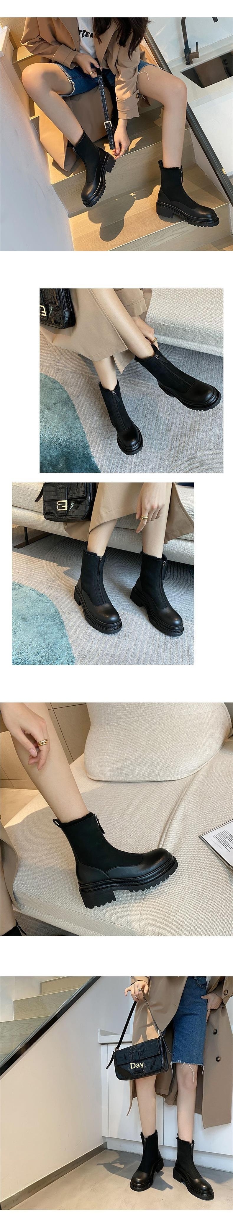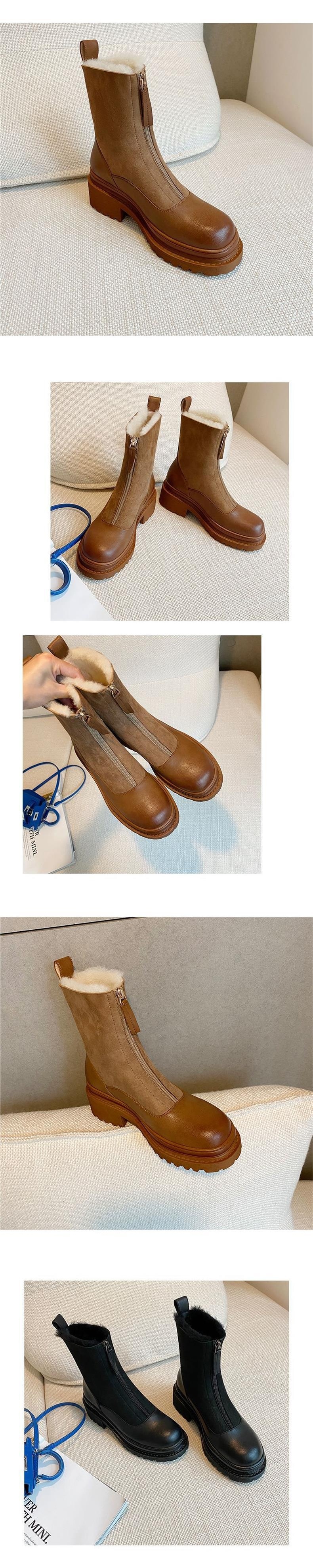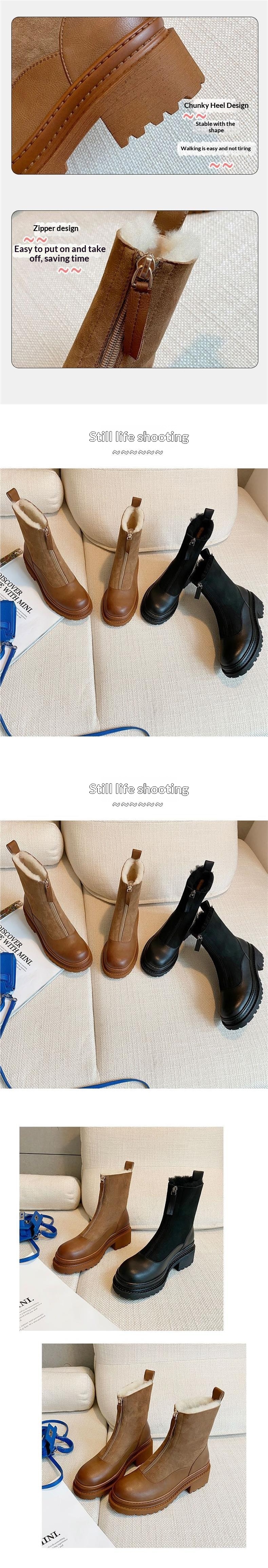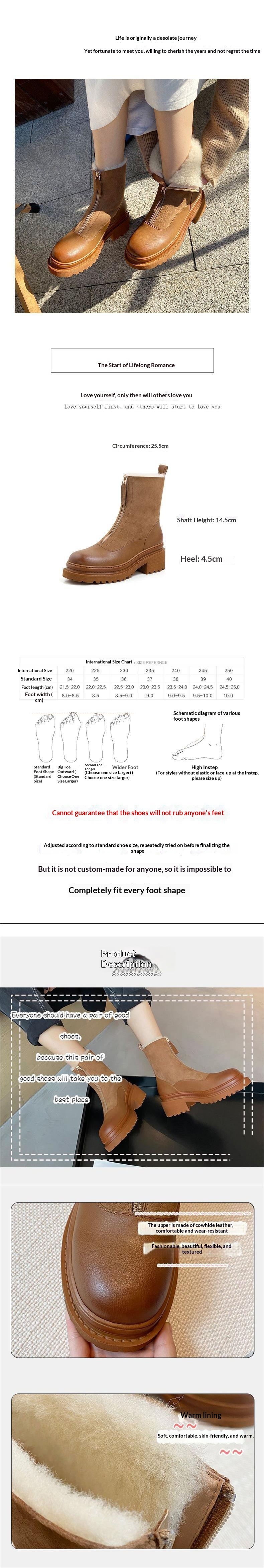 Thickened Front-Zip Ankle Boots Influencer-Style Cotton Shoes New Arrival