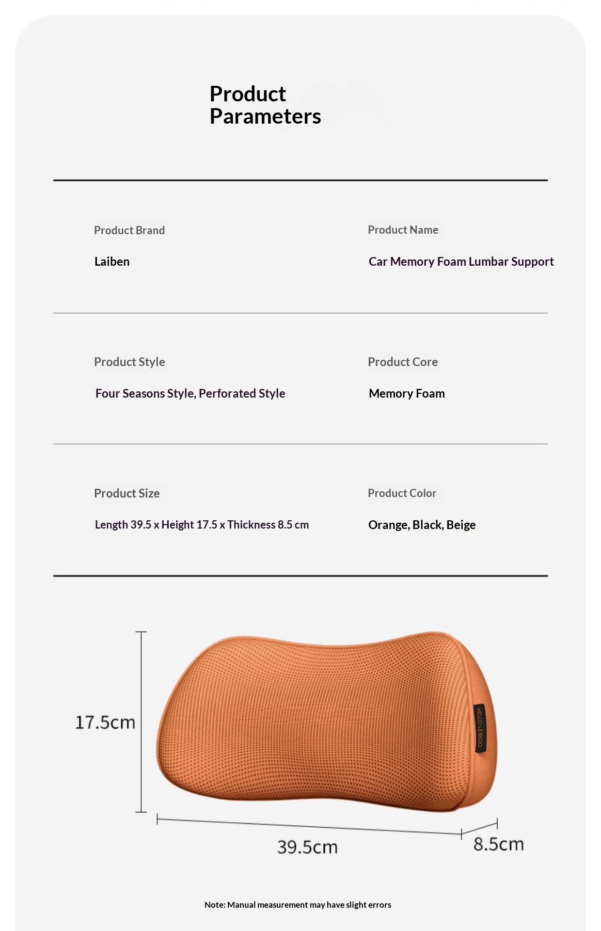 Colors: Memory foam lumbar support — Four-season model — Beige-Black ×1, Memory foam lumbar support — Four-season model — Elegant Beige ×1, Memory foam lumbar support — Four-season model — Royal Orange, Memory foam lumbar support — Perforated model — Beige-Black ×1, Memory foam lumbar support — Perforated model — Elegant Beige ×1, Memory foam lumbar support — Perforated model — Royal Orange