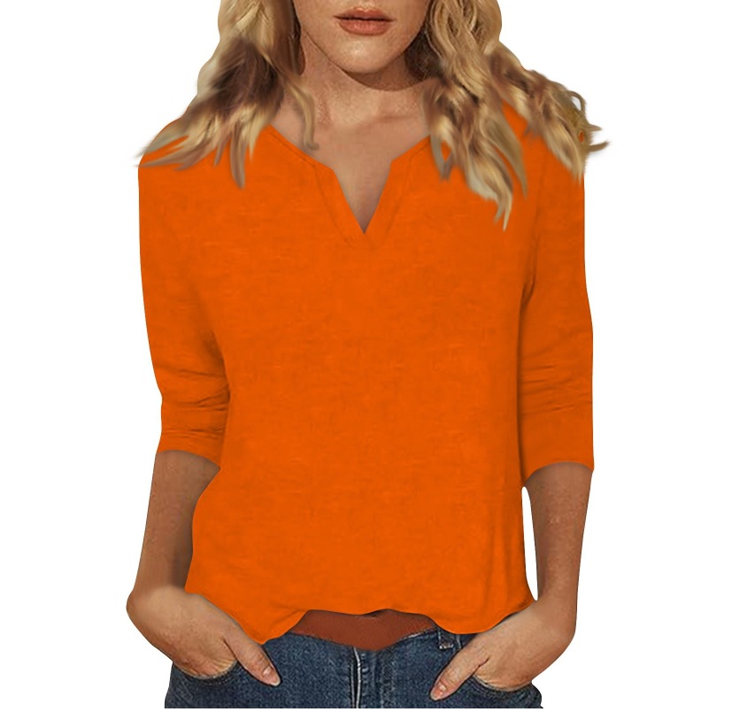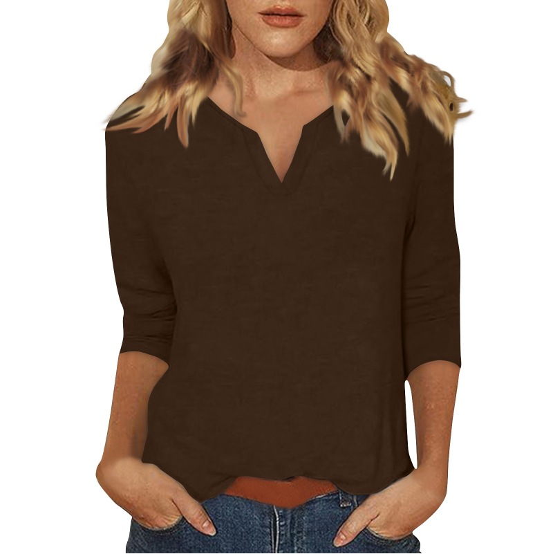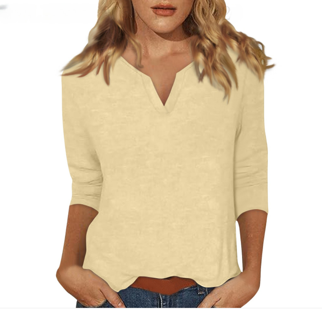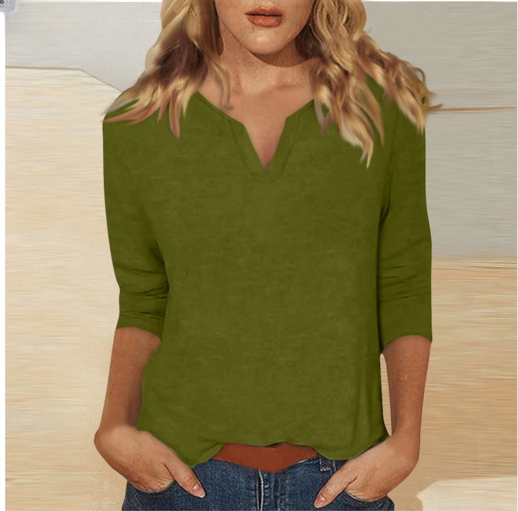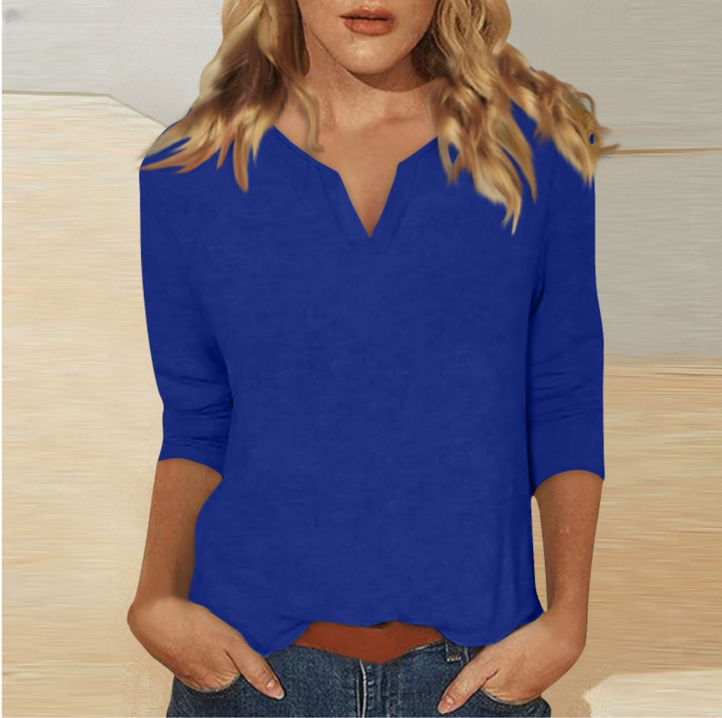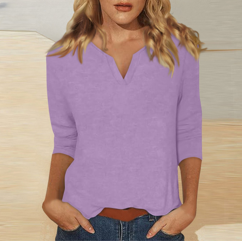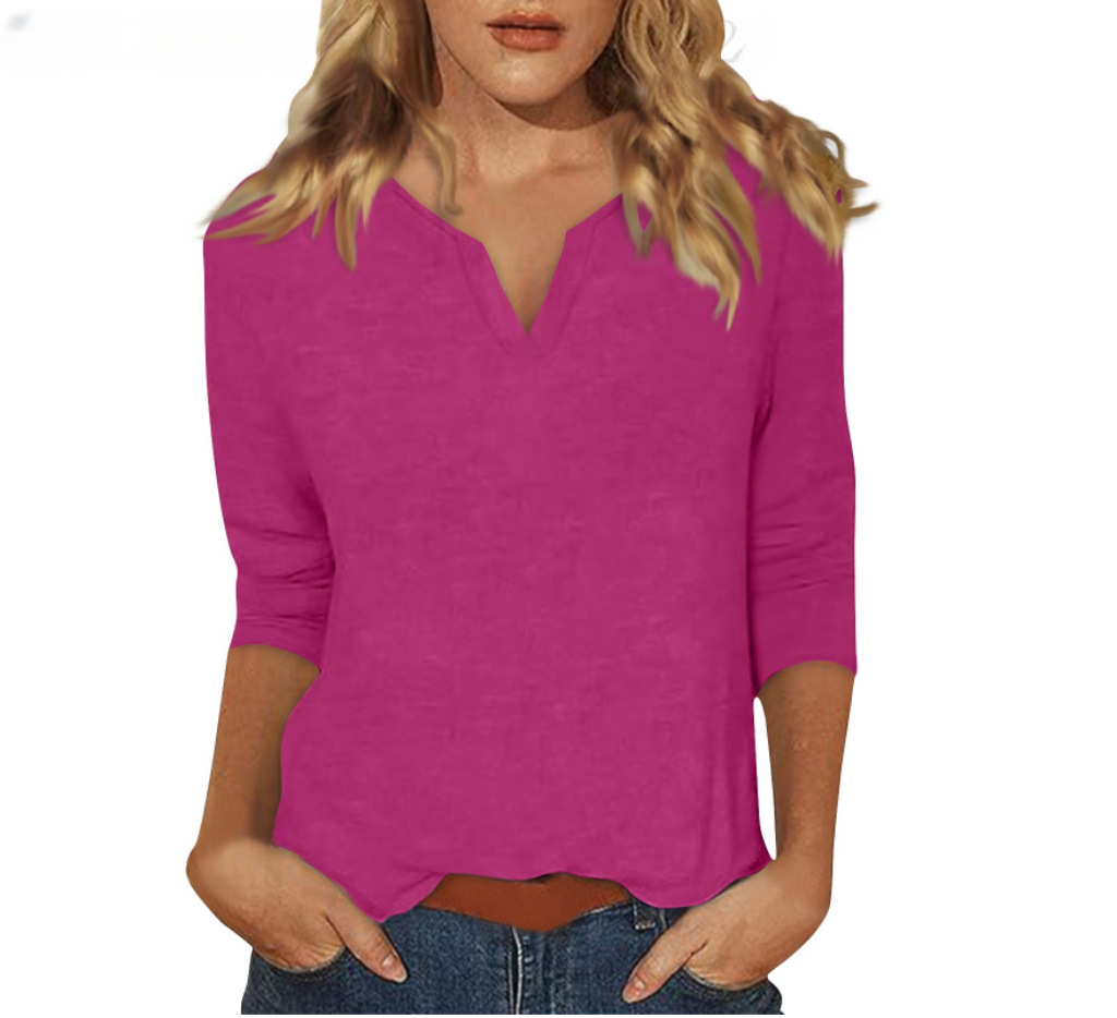 0 Review for Three-quarter-sleeve Solid-color T-shirt Top