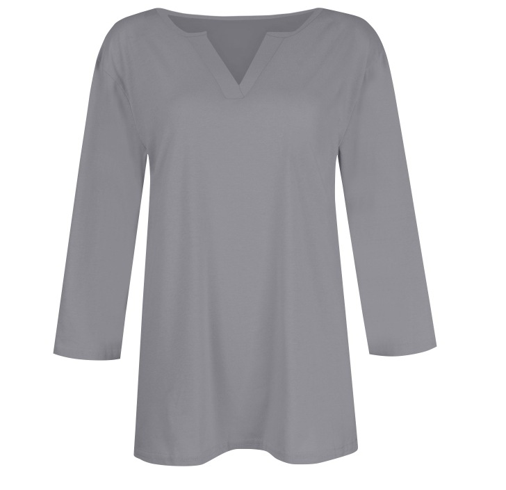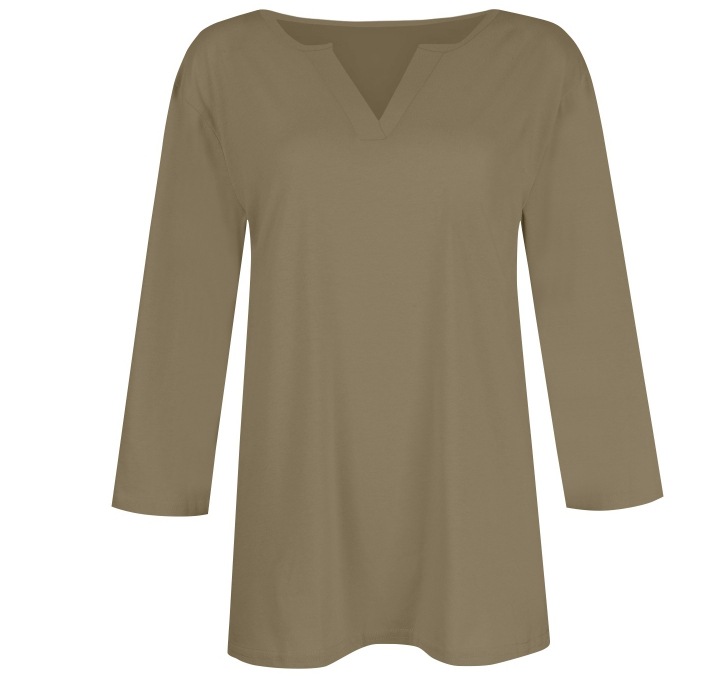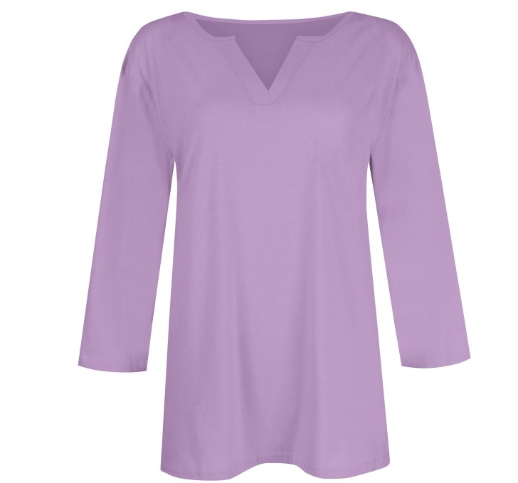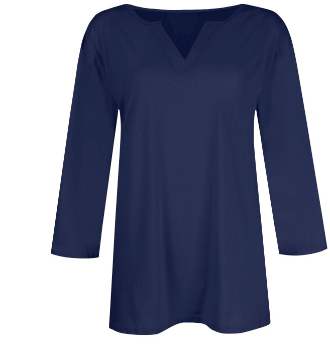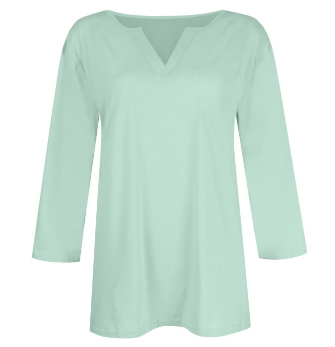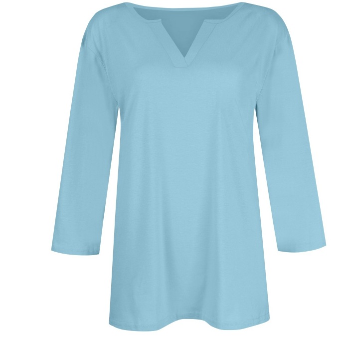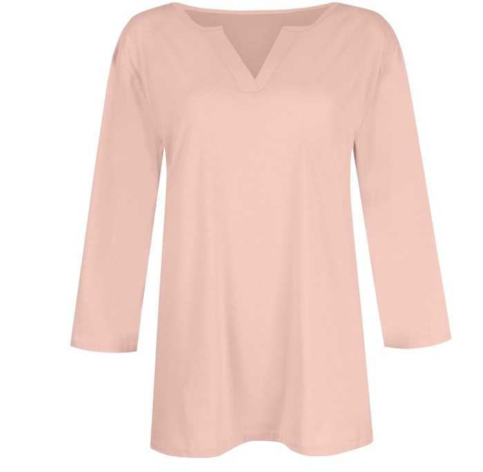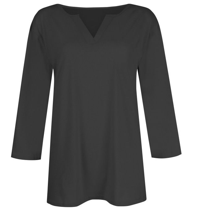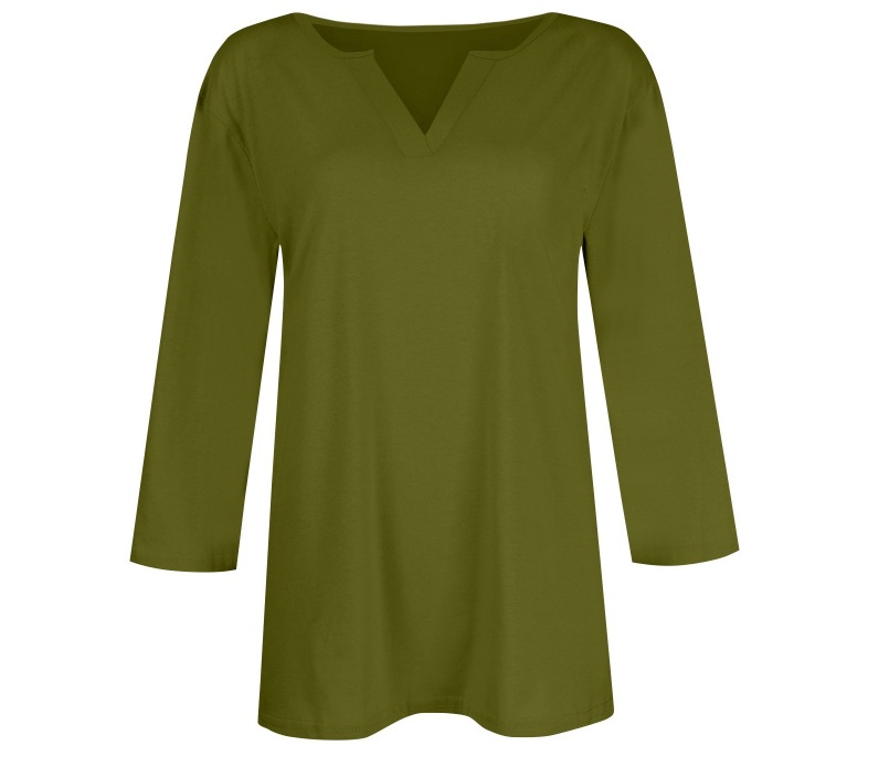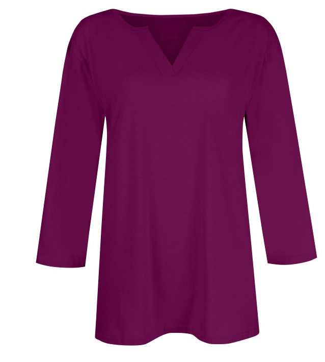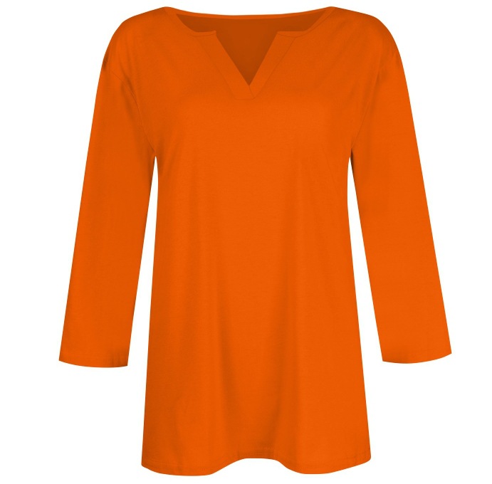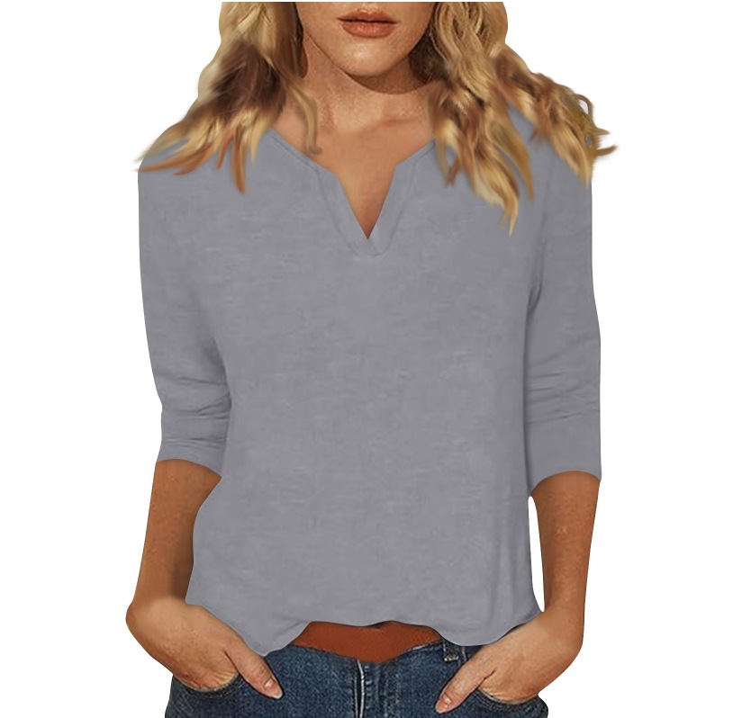 0 Review for Three-quarter-sleeve Solid-color T-shirt Top