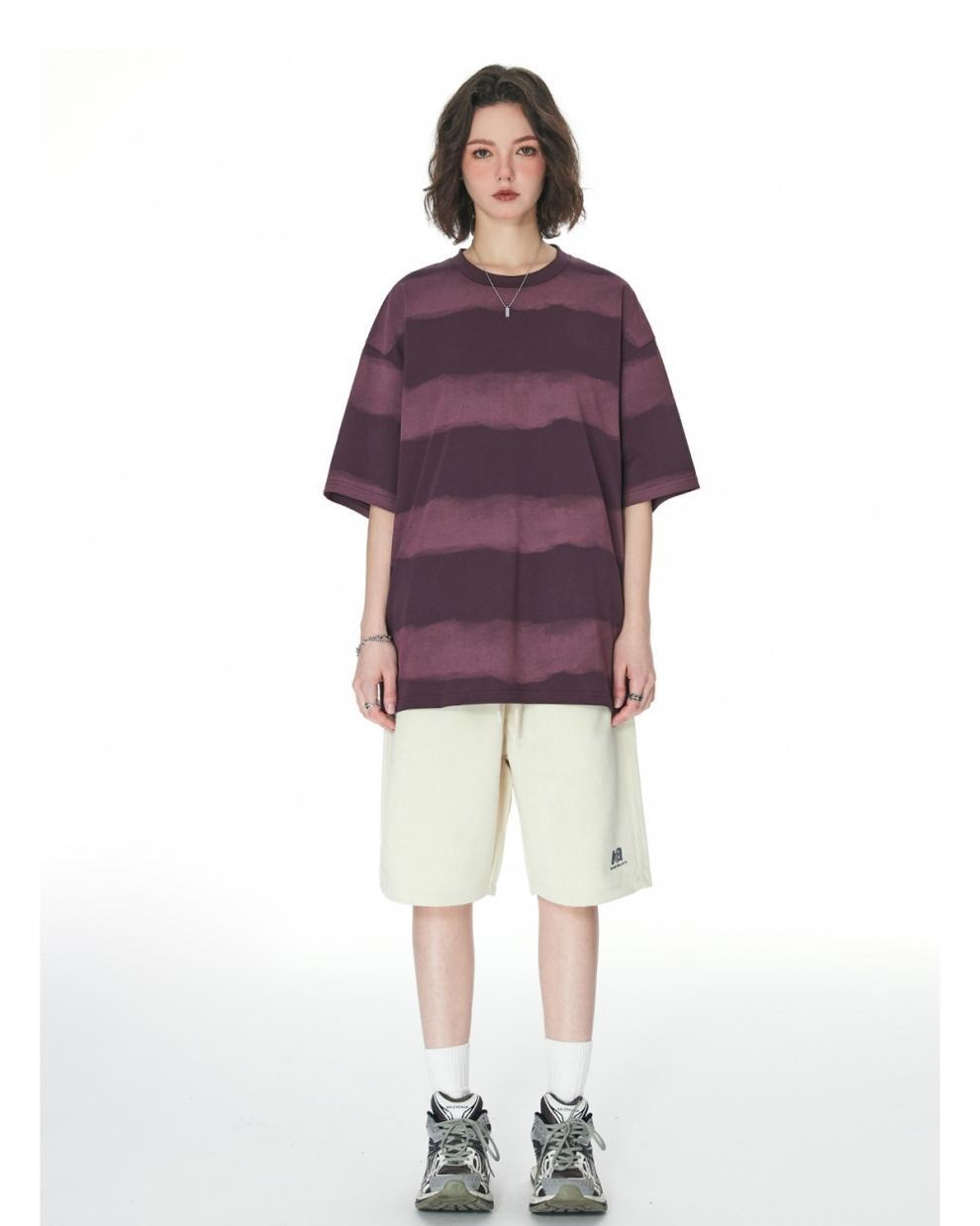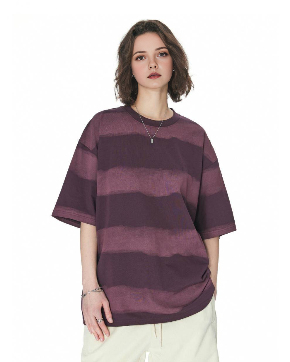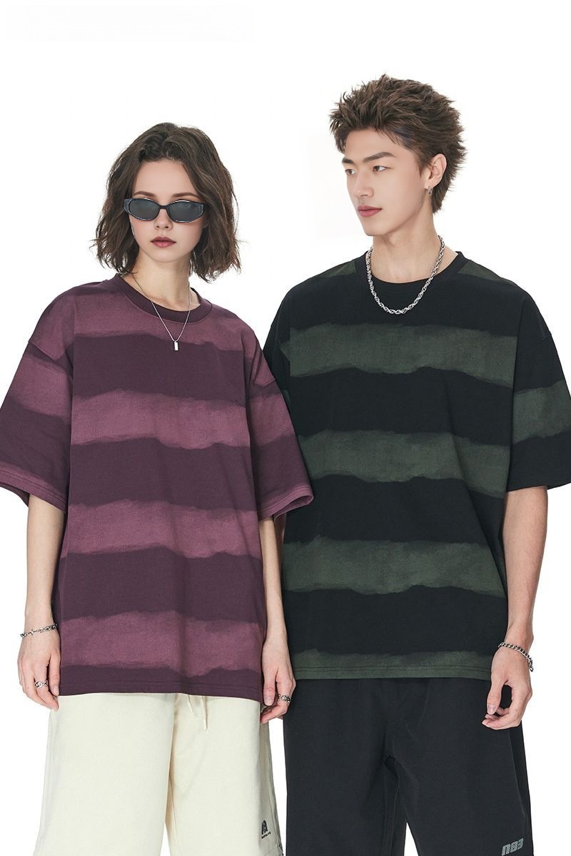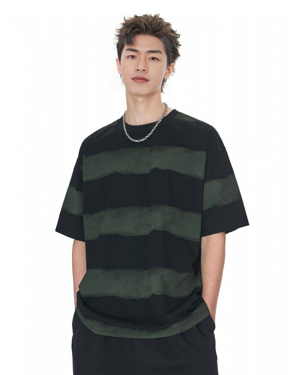0 Review for Tie-dye Washed Striped Short-Sleeve Mens Cotton T-Shirt