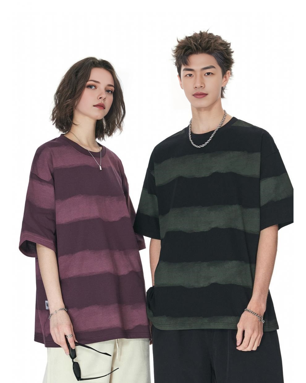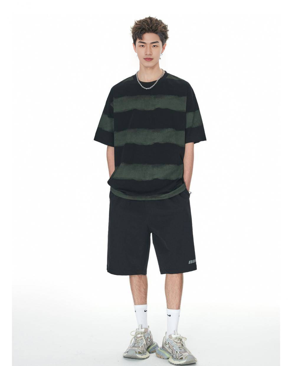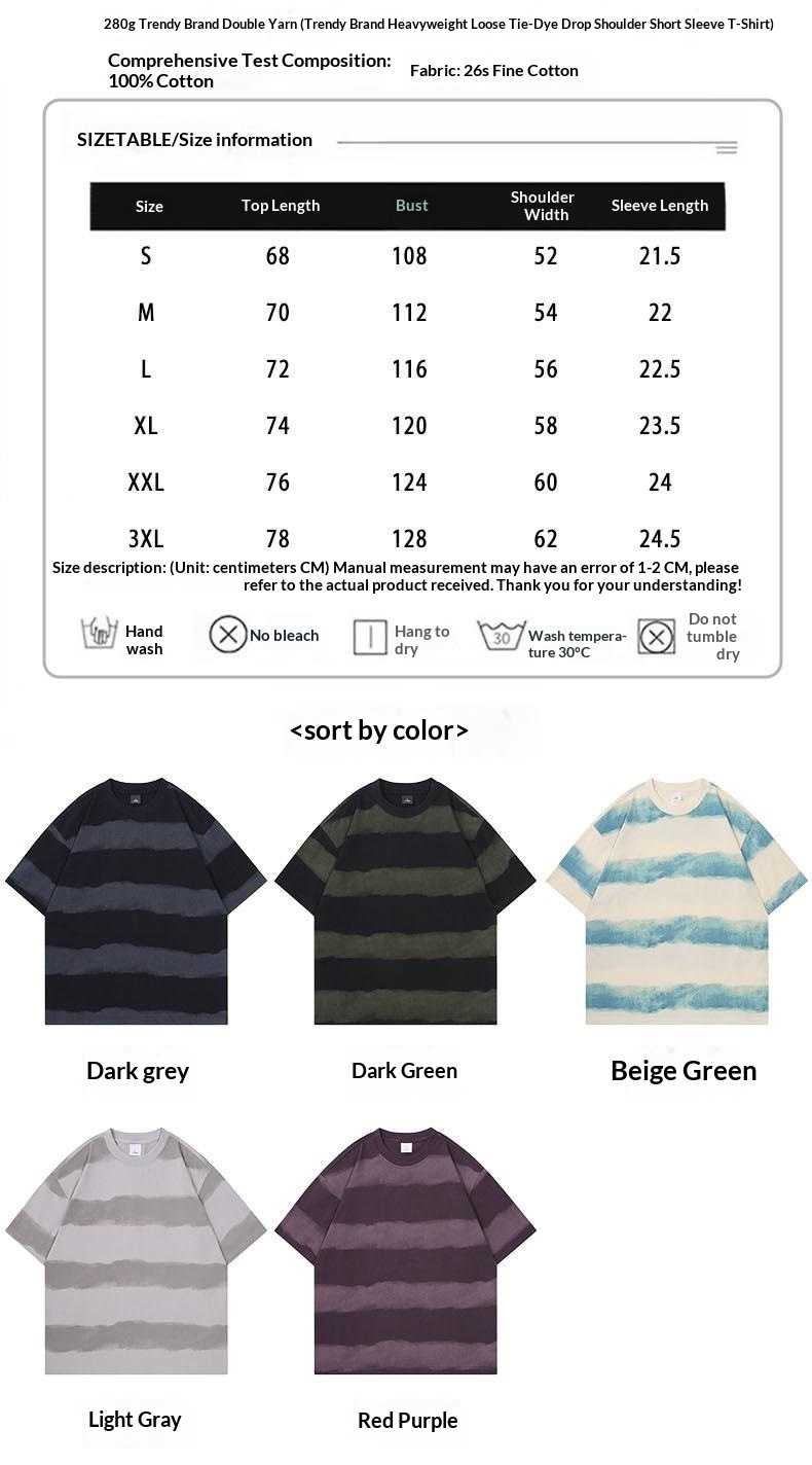 0 Review for Tie-dye Washed Striped Short-Sleeve Mens Cotton T-Shirt