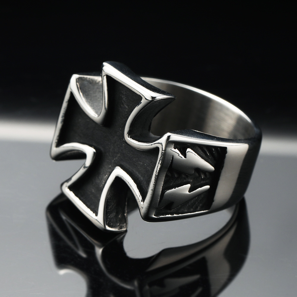 0 Review for Trendy Retro Lightning Cross Titanium Steel Ring