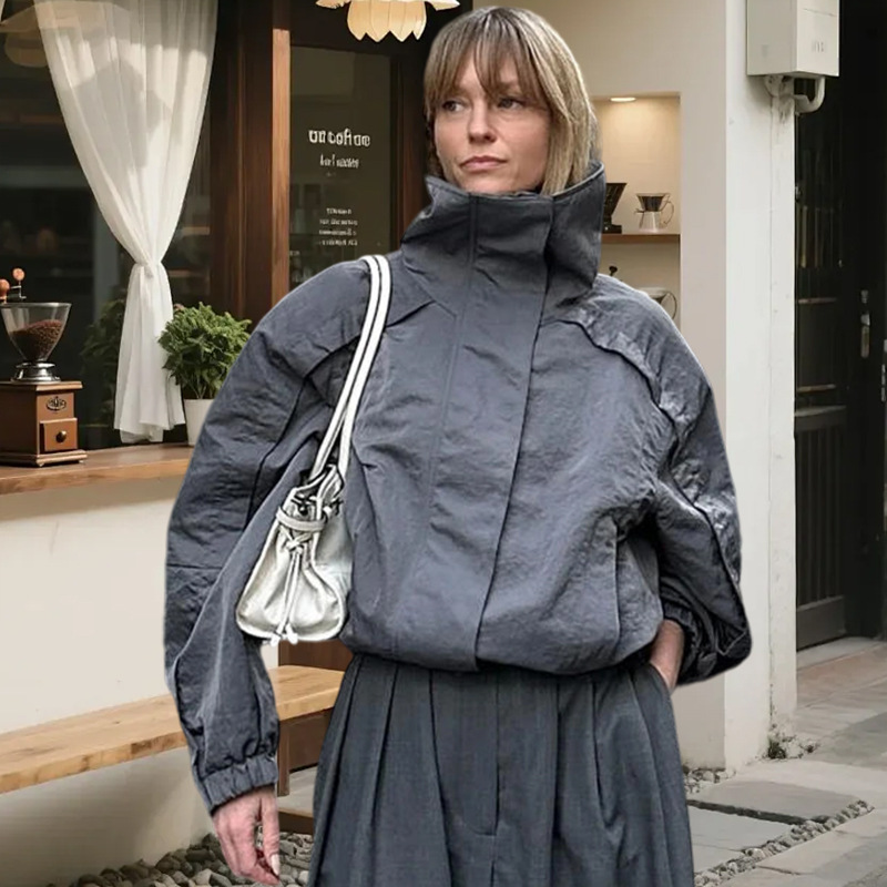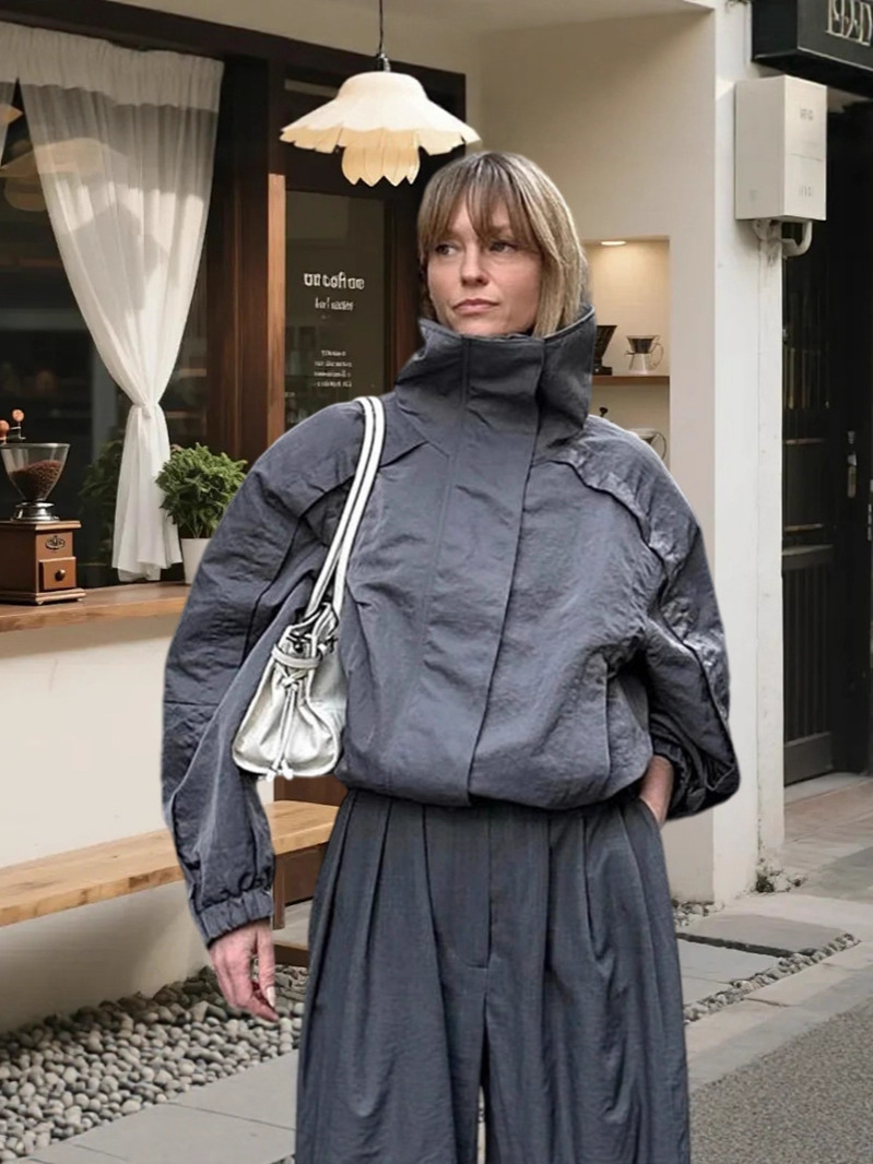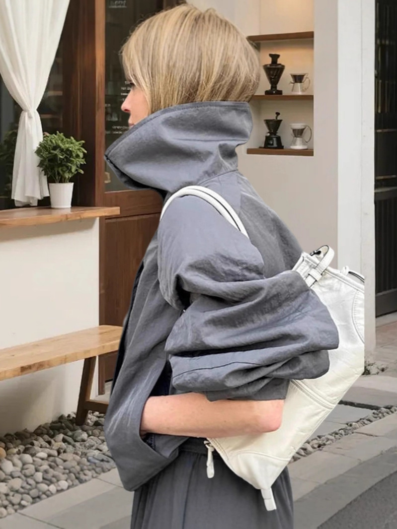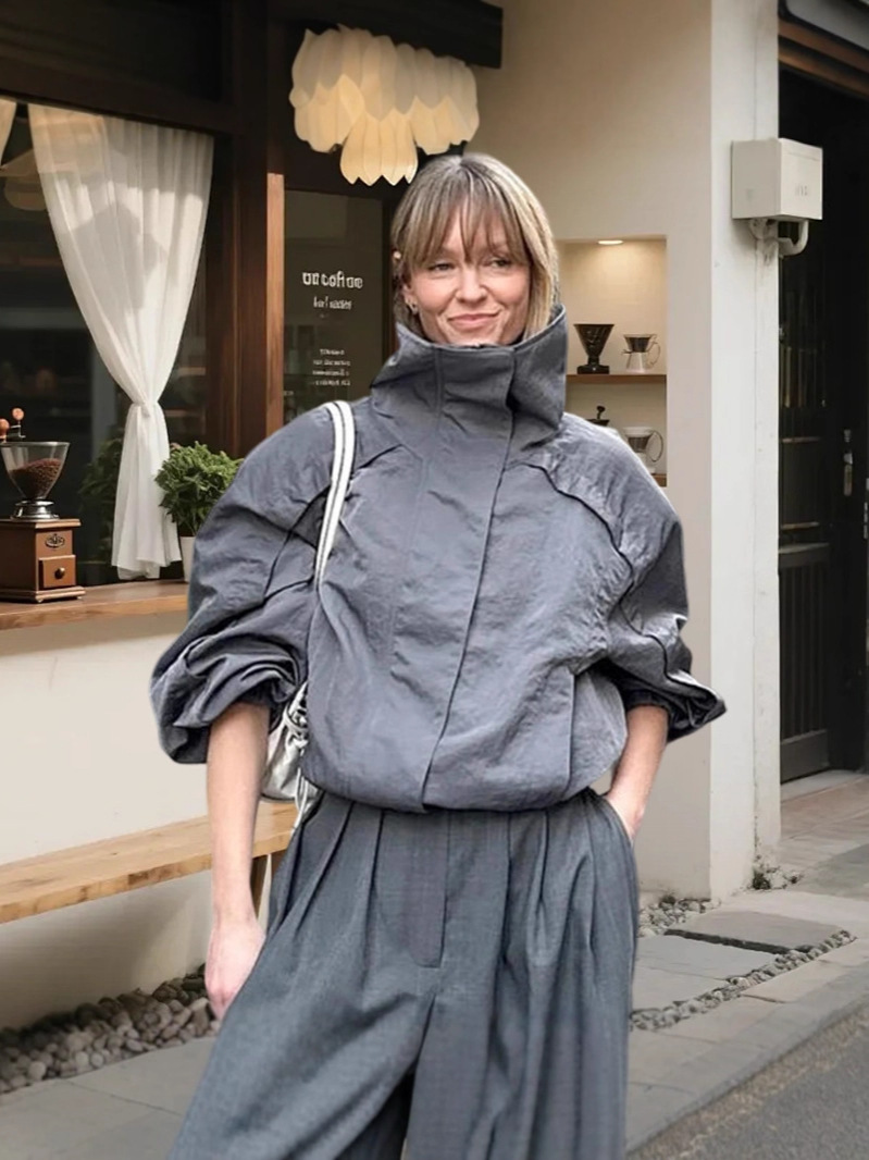0 Review for Turtleneck Fashion Gray With Pocket Loose Outdoor Jacket Coat