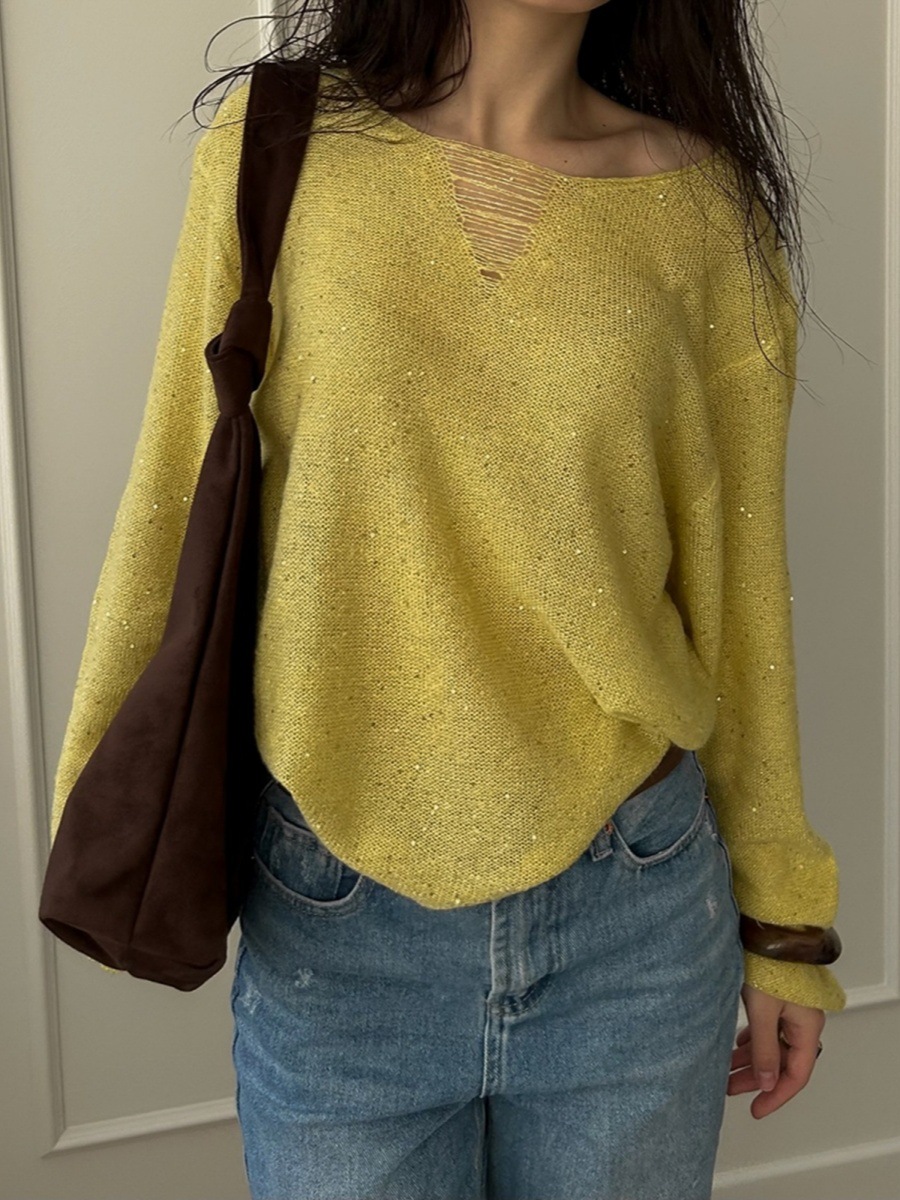 0 Review for V-neck Long Sleeve Thin Loose Top Elegant Atmosphere Blouse