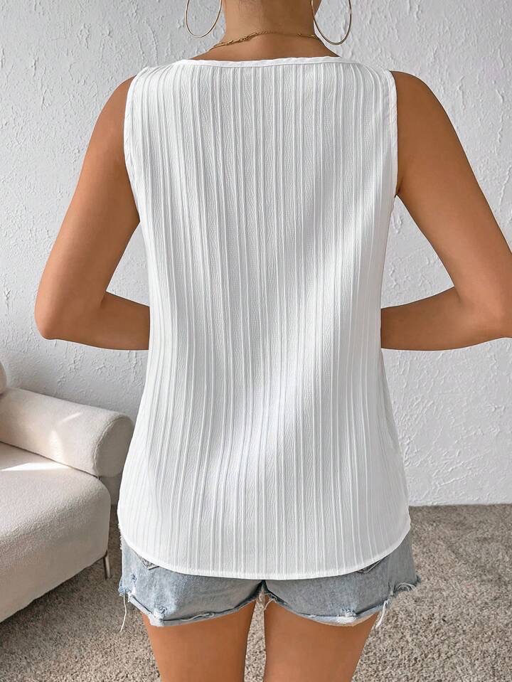 0 Review for V-neck Spliced Hollow-out Lace Tank Top T-shirt