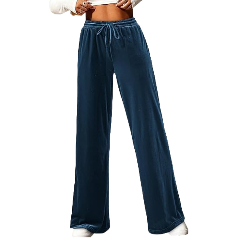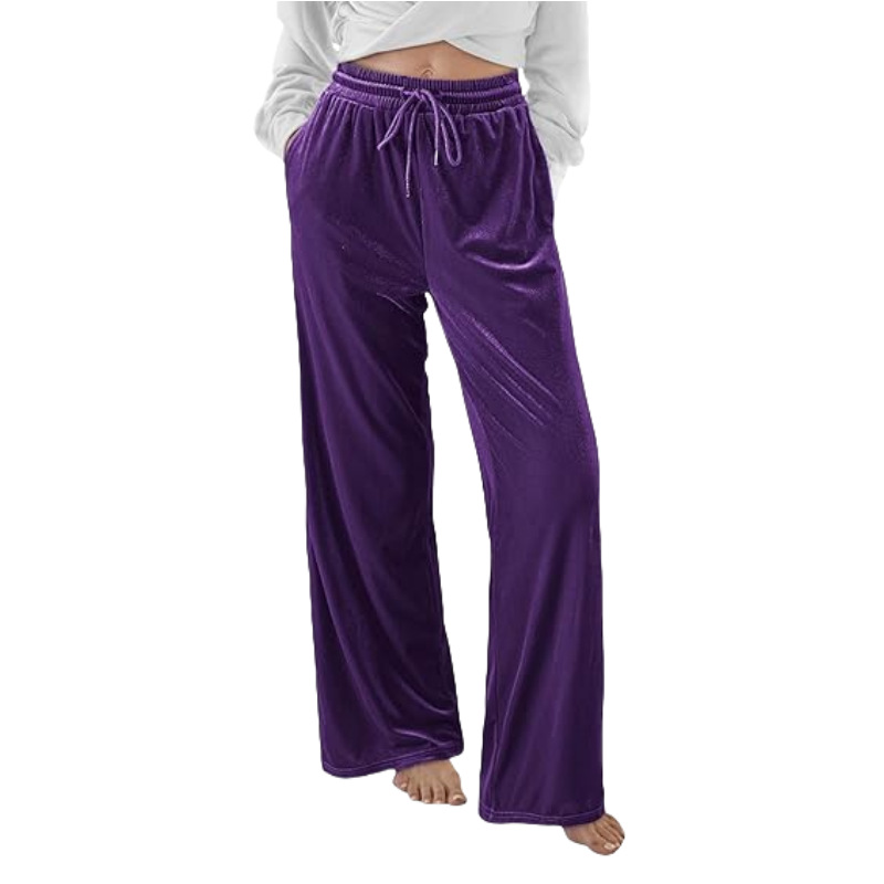 0 Review for Velvet Pants With A Drawstring Waist And Wide Legs