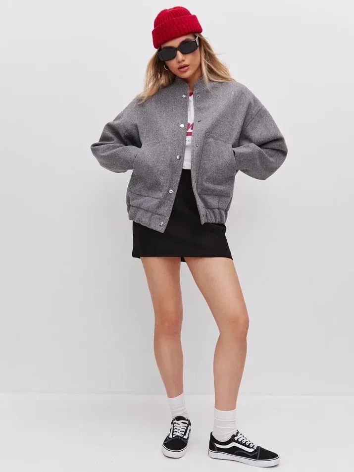 0 Review for Versatile Pocketed Loose-Fit Bomber Jacket Coats