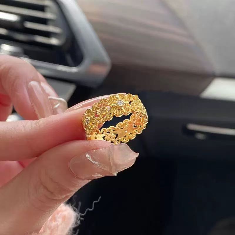 0 Review for Vintage Lace Inlaid Hollow Ring Minority Fashion