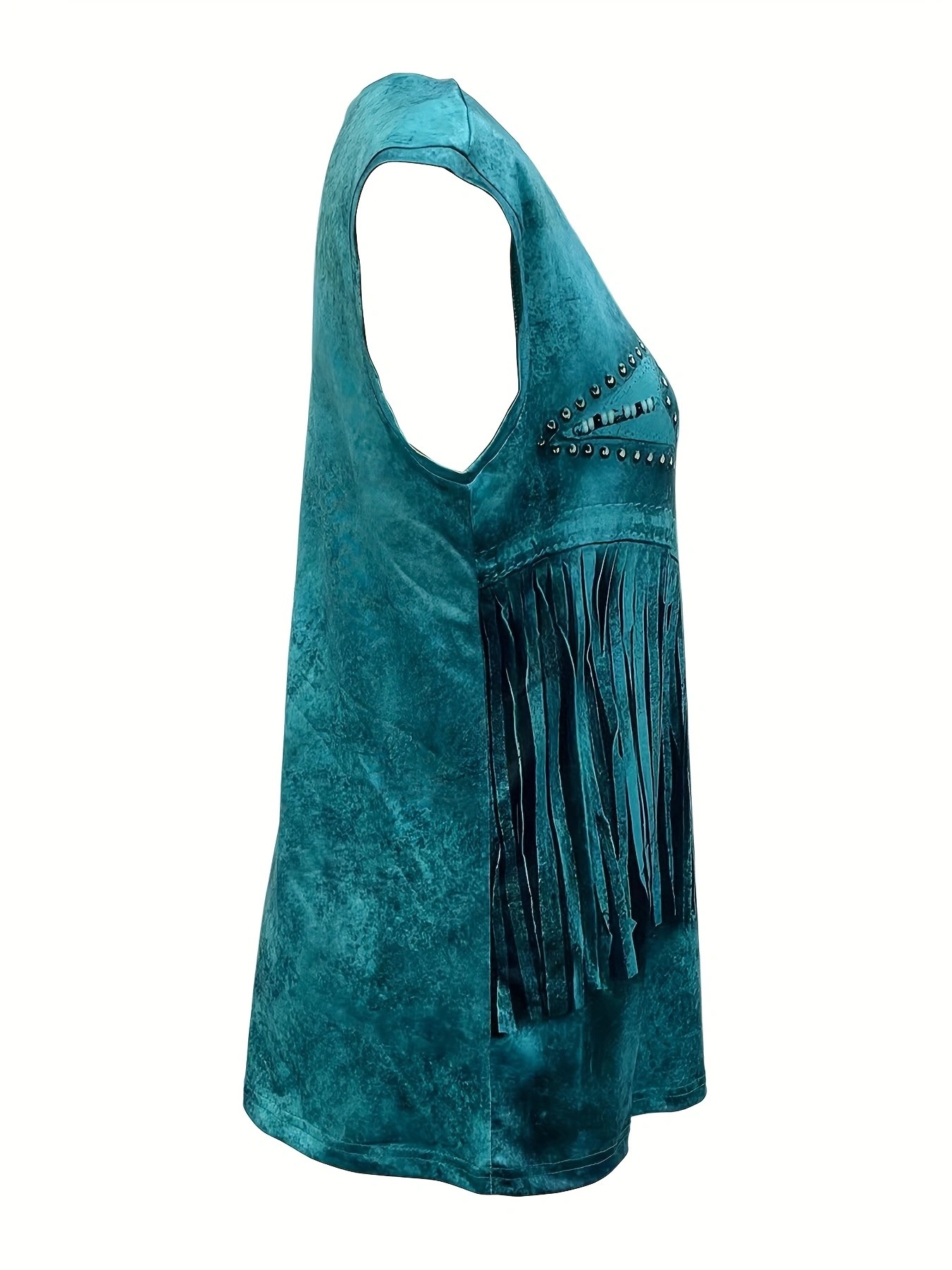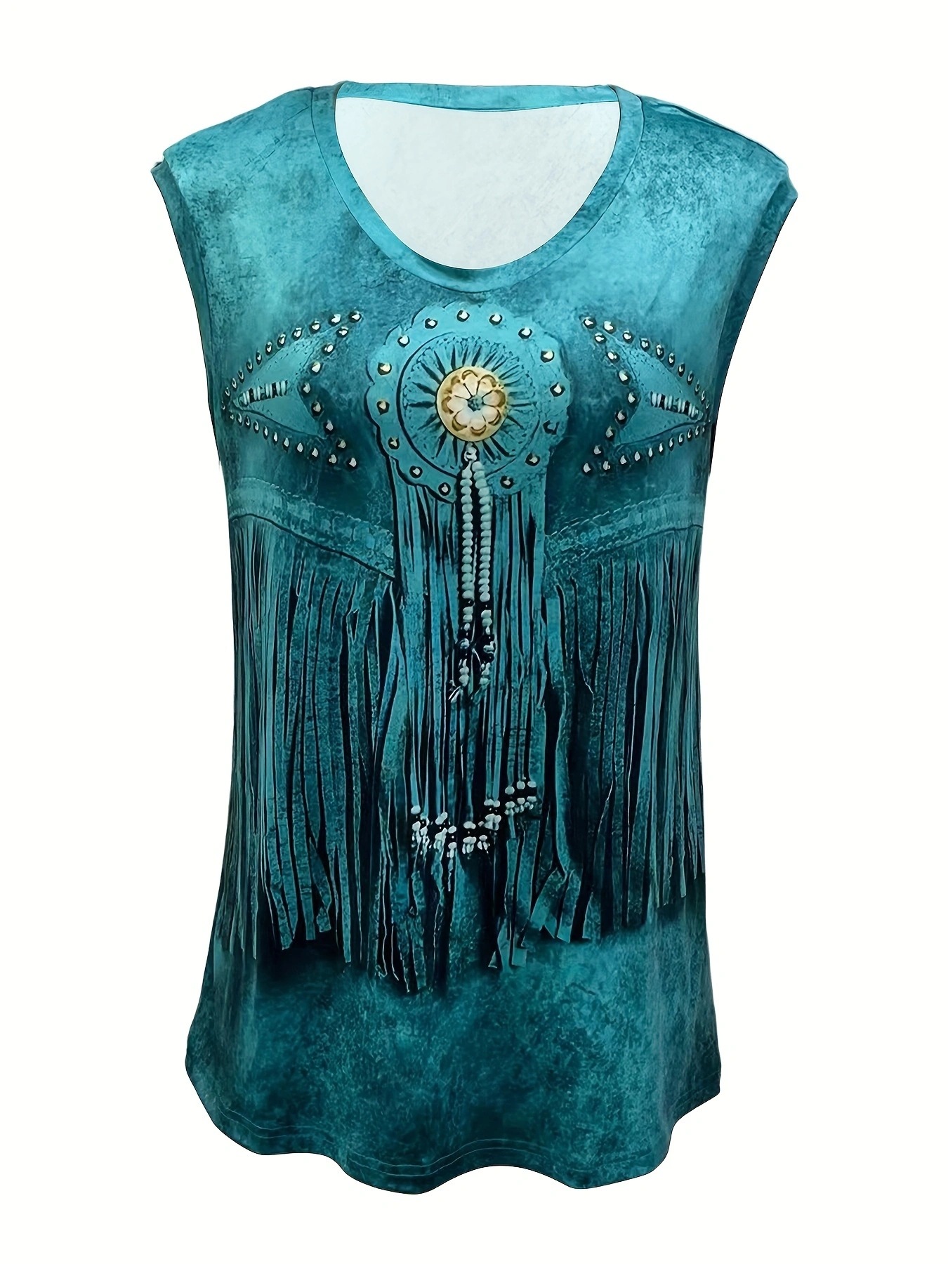 0 Review for Vintage Printed Tassel Art Pattern V-neck Vest T-shirt For Women