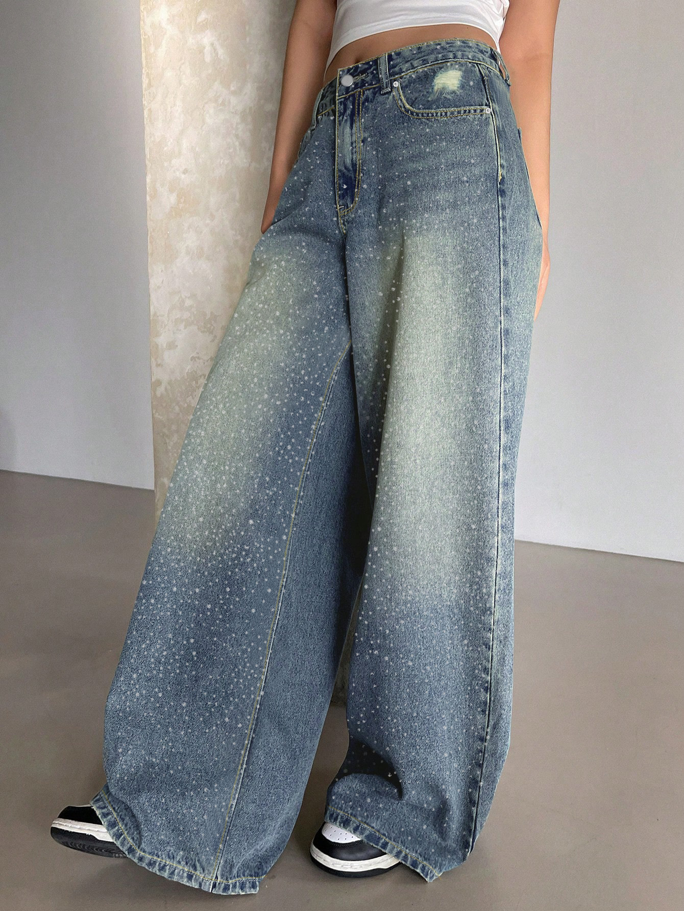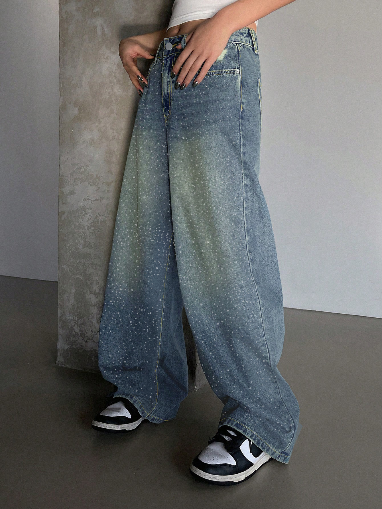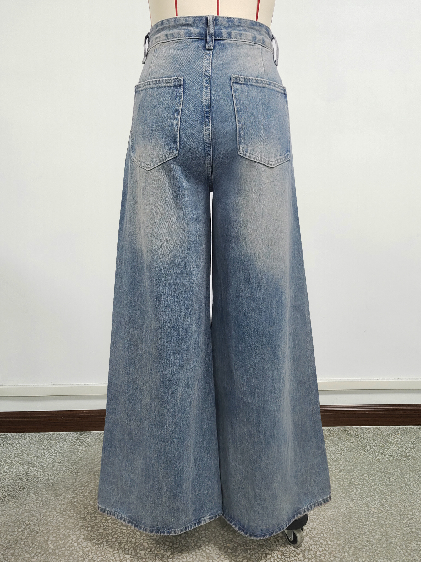 0 Review for Water-washed Blue Wide-leg Extra-long Floor-length Jeans