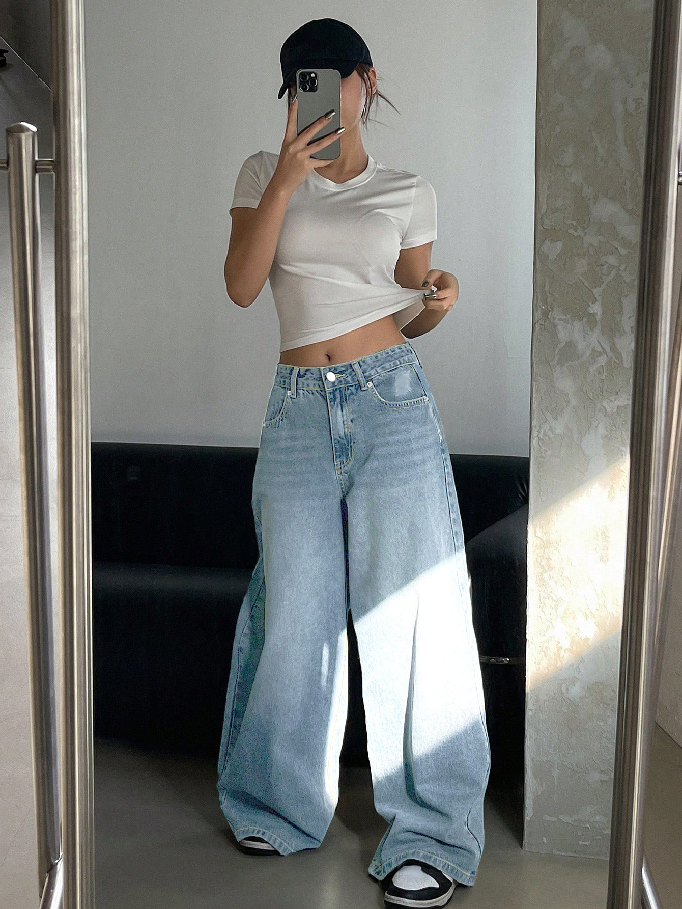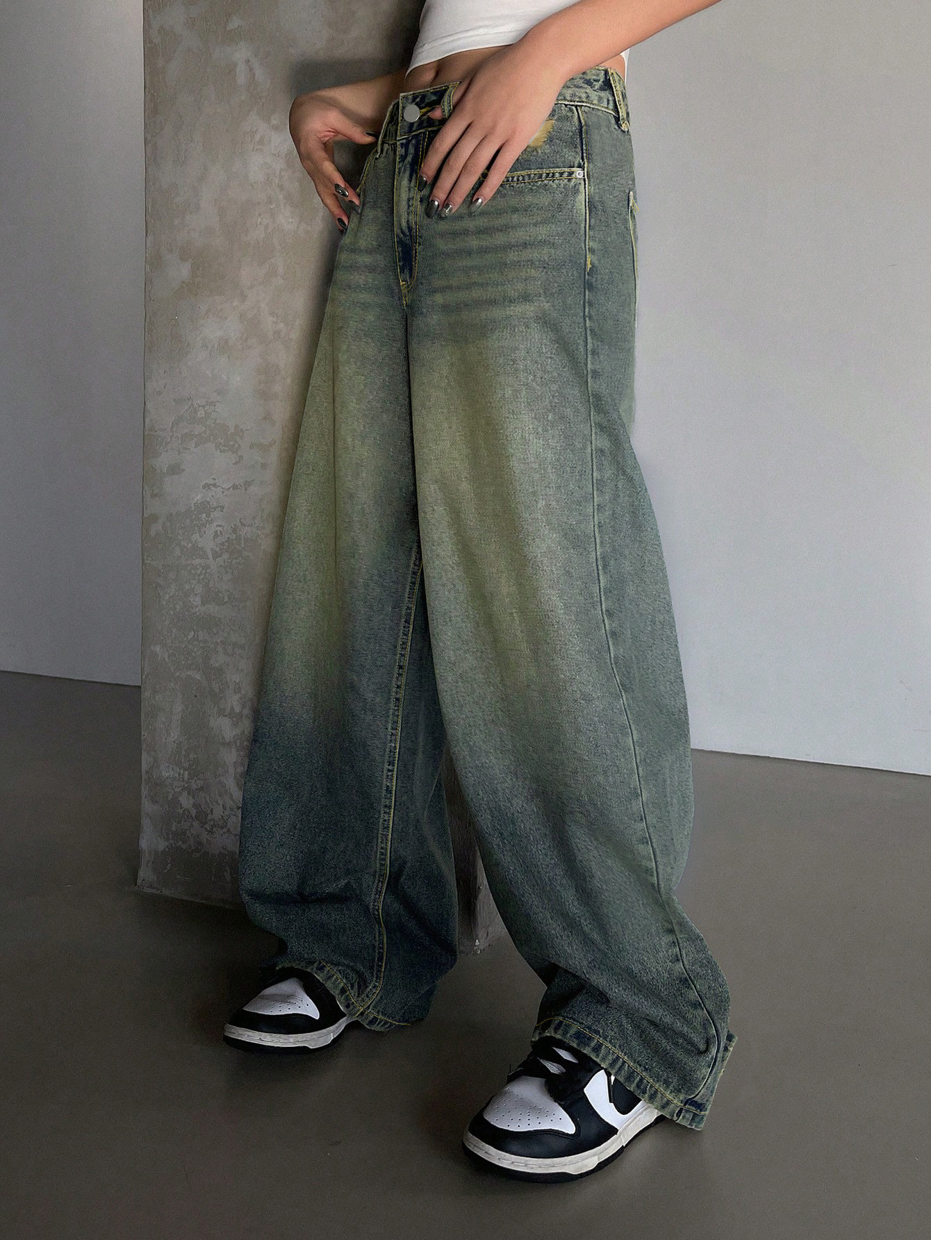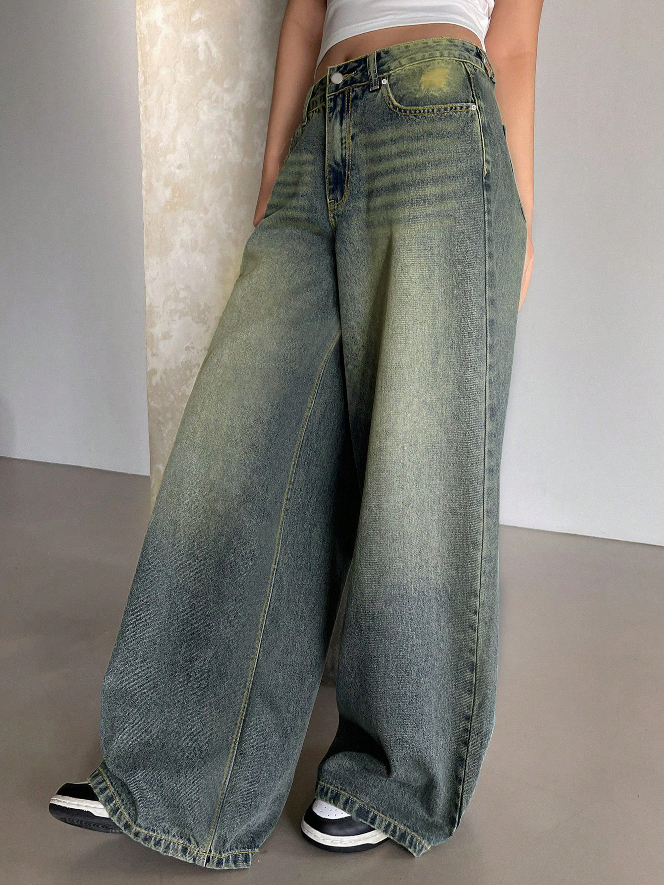 0 Review for Water-washed Blue Wide-leg Extra-long Floor-length Jeans