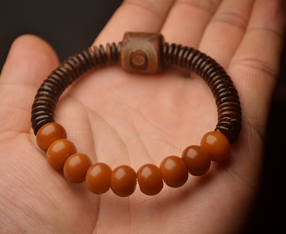 Weathering White Corypha Umbraculifea Old Seeds Beads Single Circle Bracelet