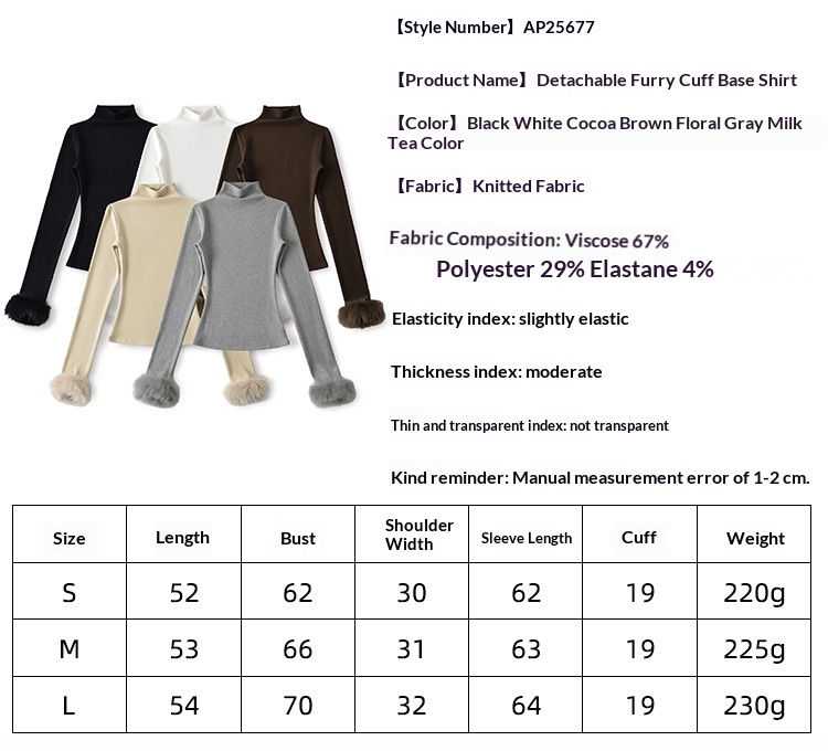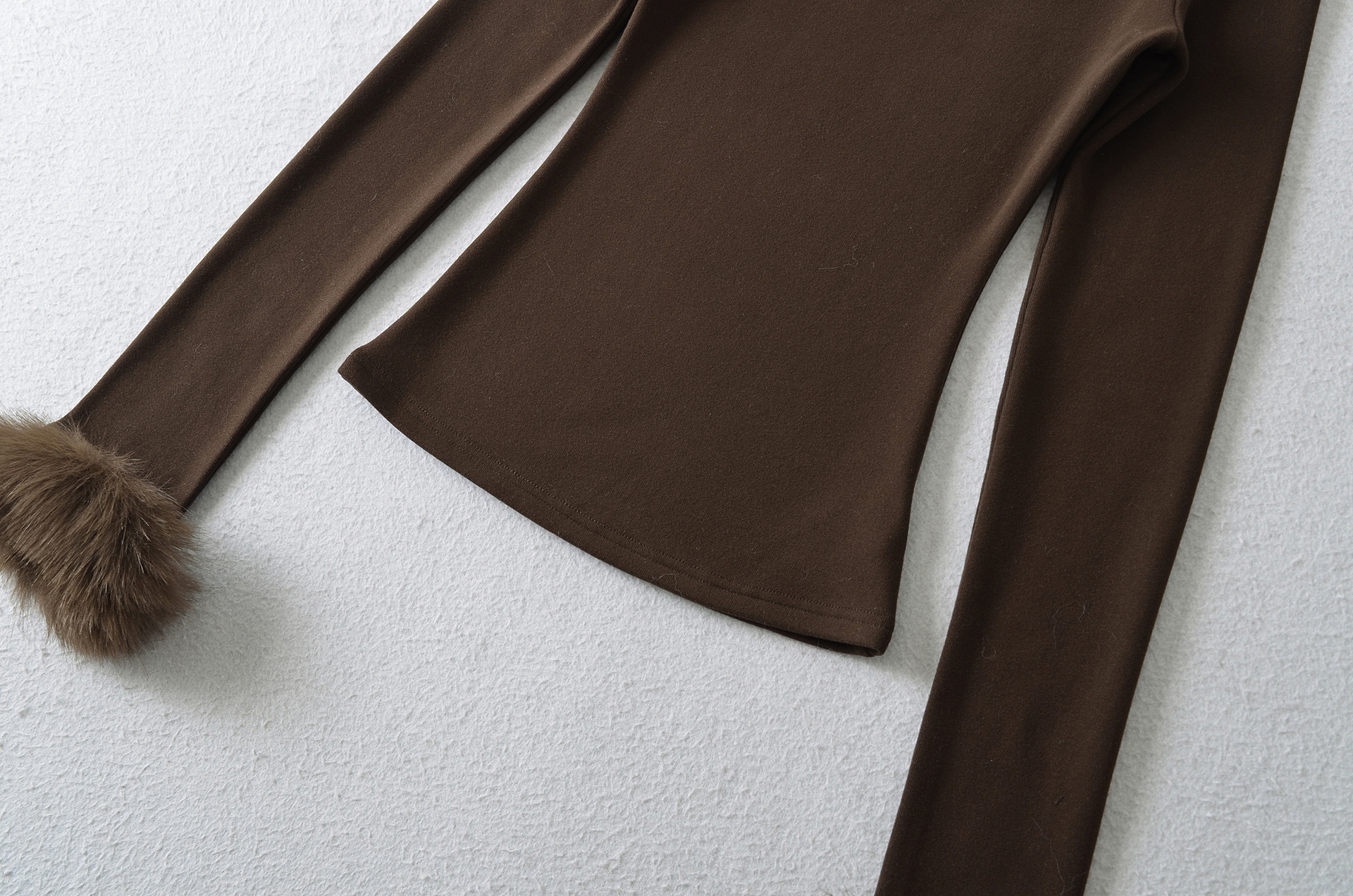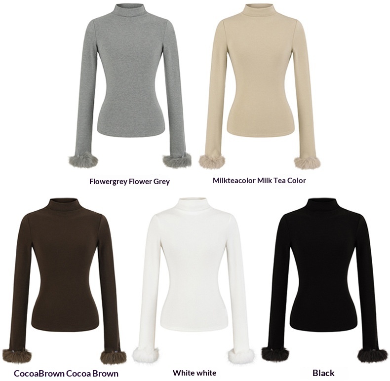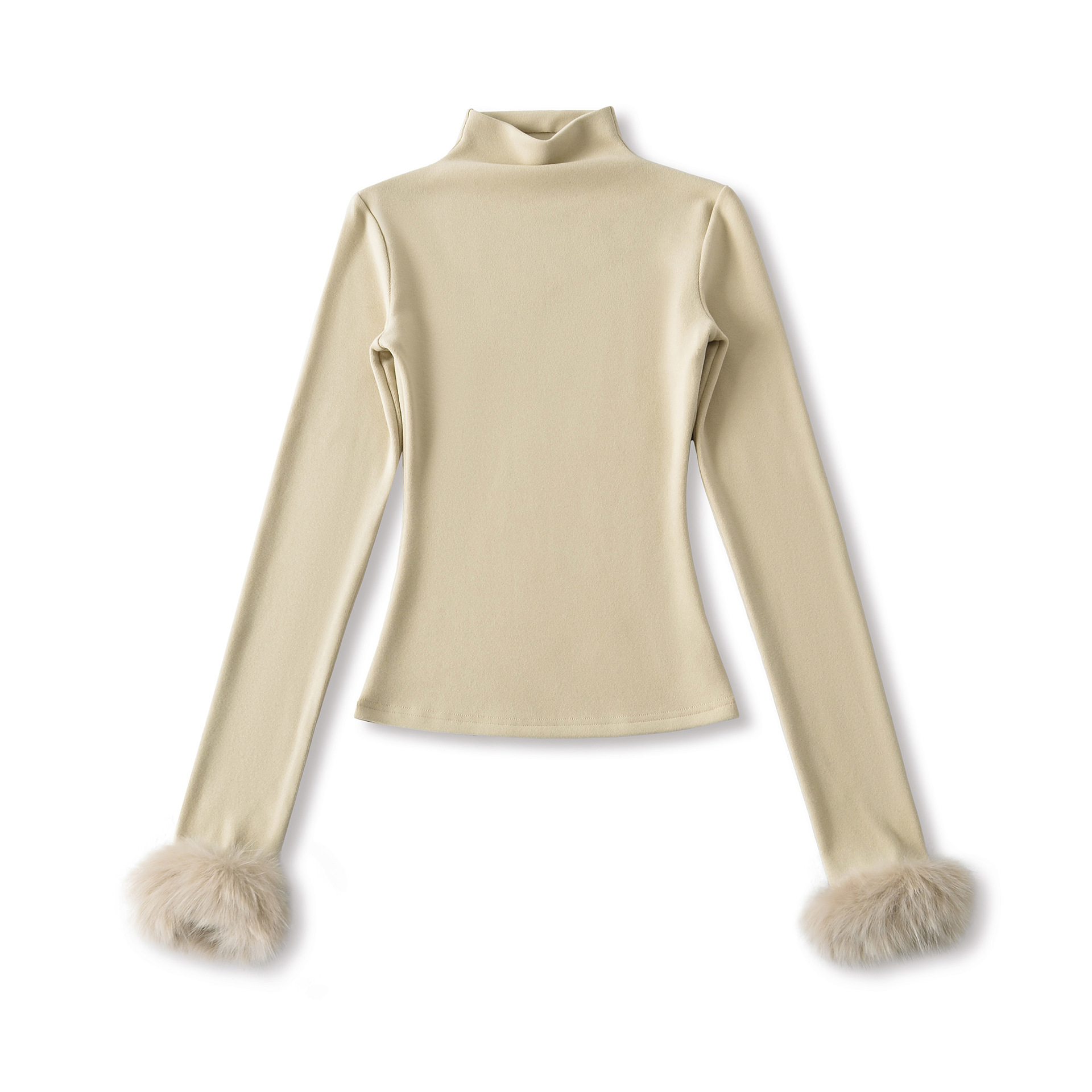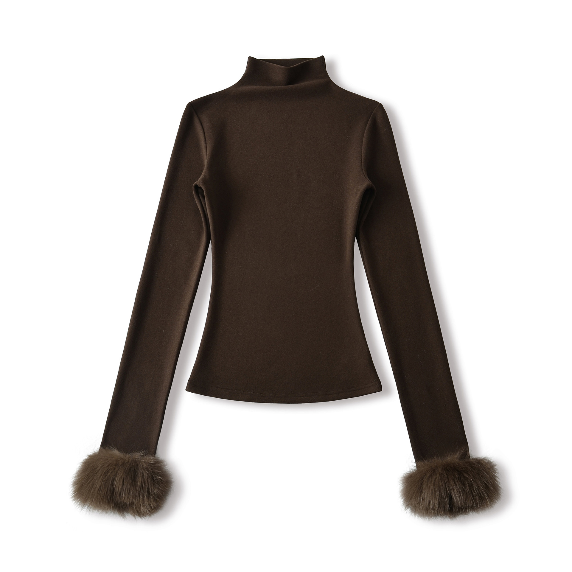 Winter Detachable Furry-sleeve Mock-neck Long-sleeve Pullover T-shirt
