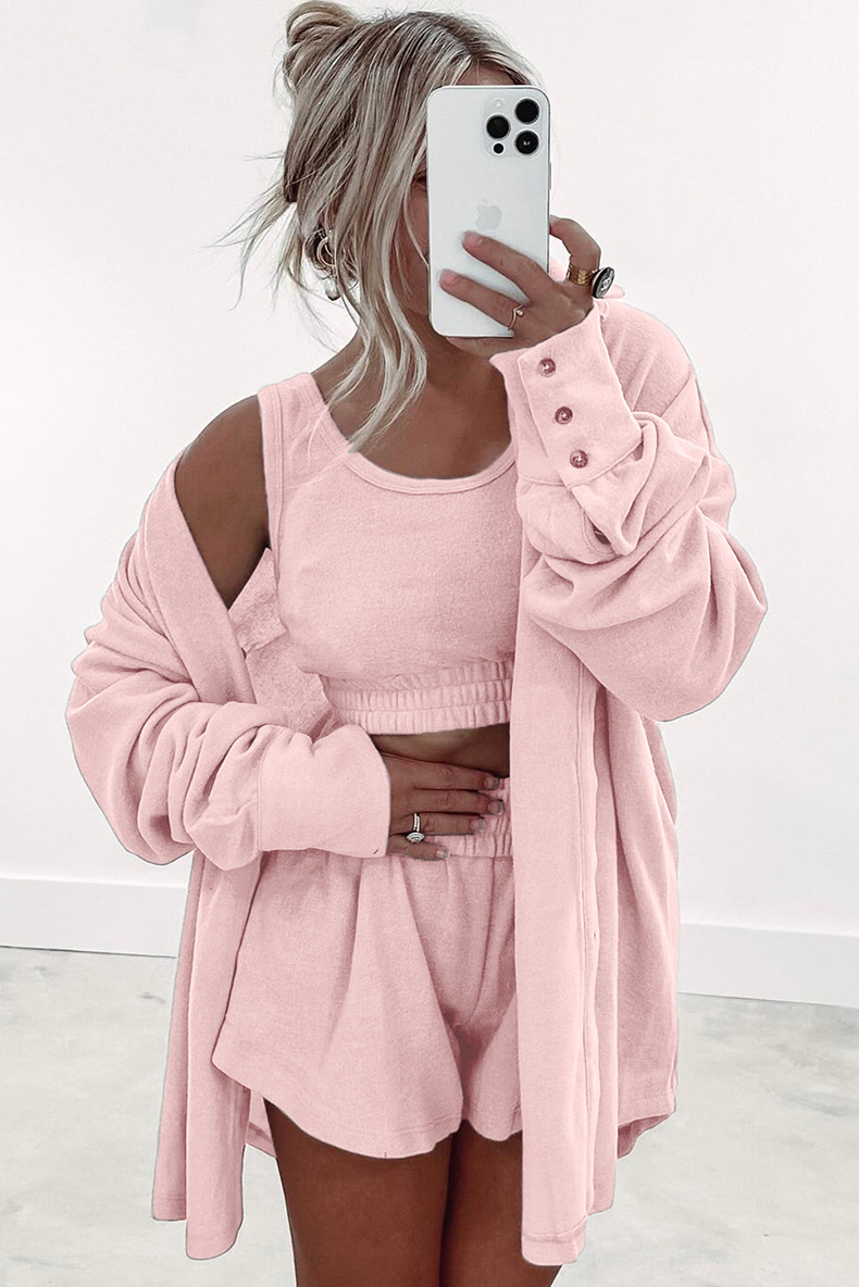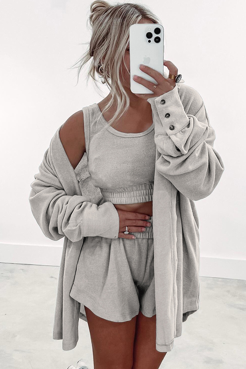 Women's European And American Solid Color Loose Sports Three-piece Suit