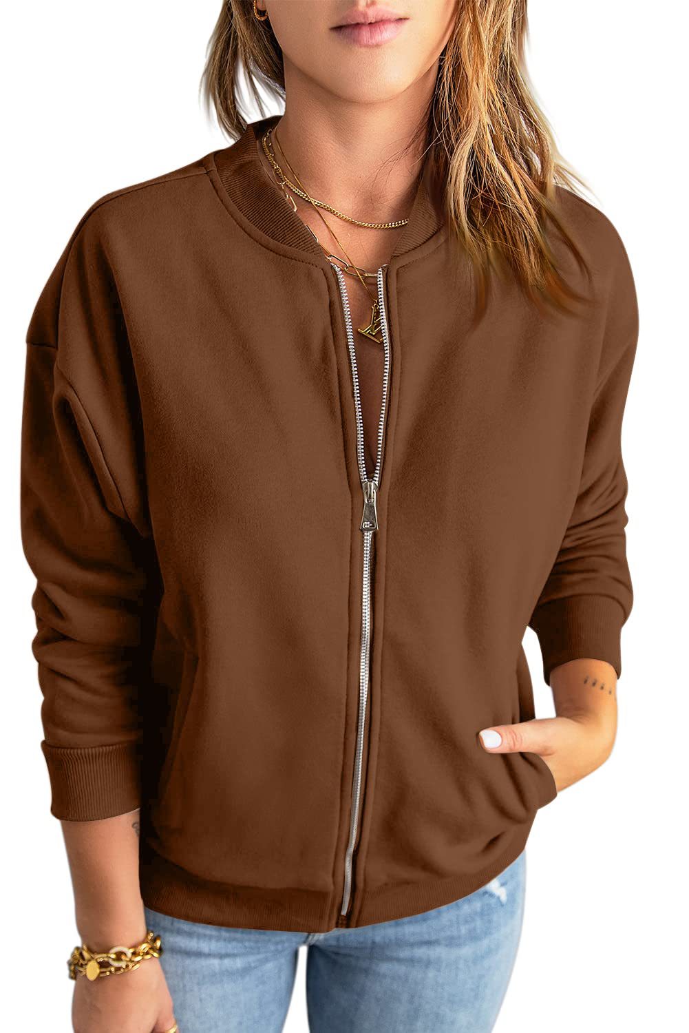 0 Review for Women's Fashion Solid Color Zipper Jacket Coat