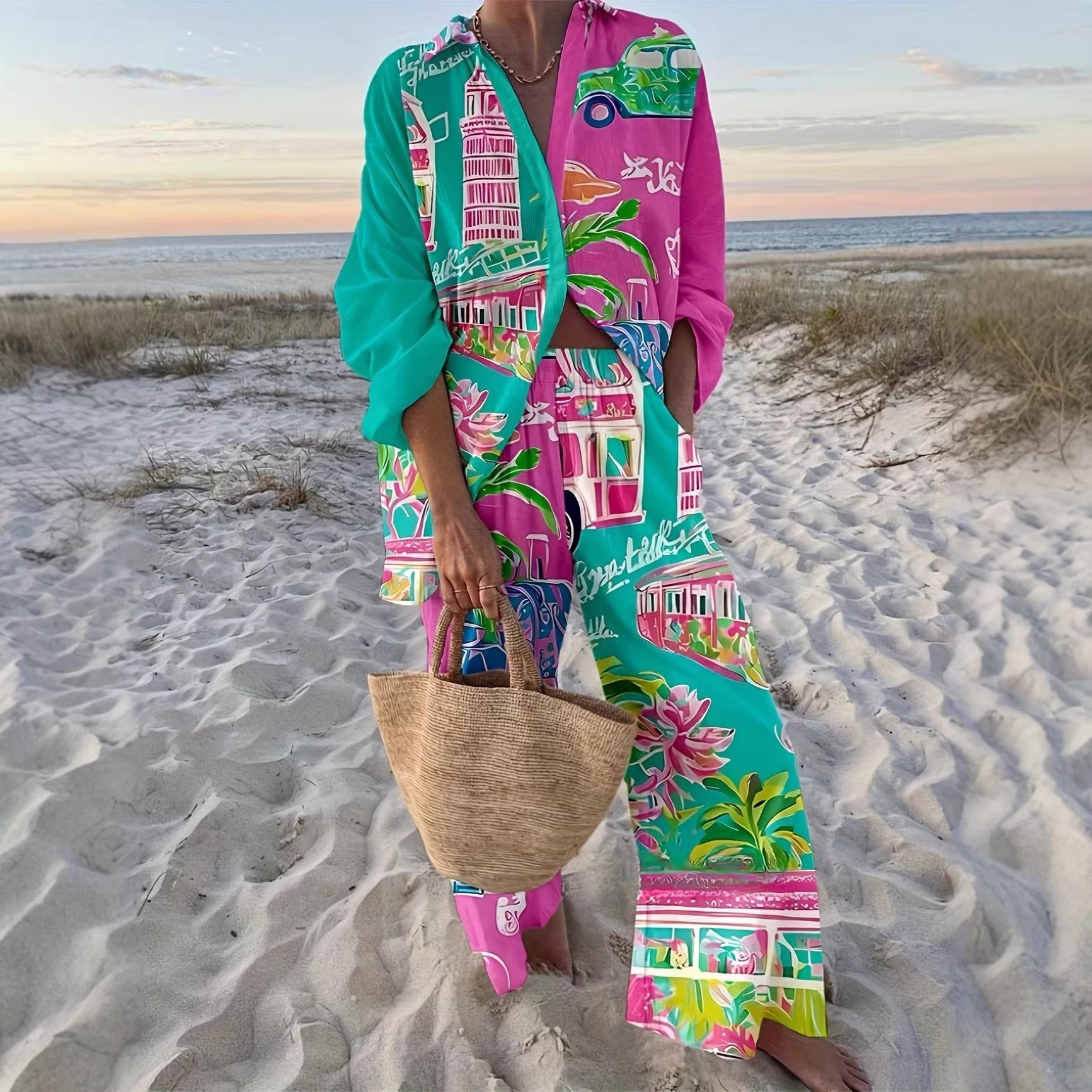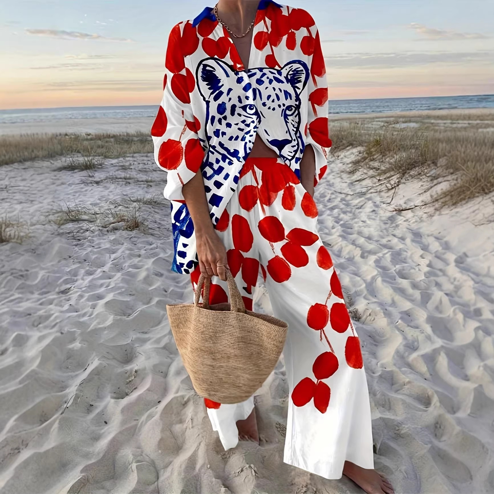 0 Review for Women's Fashionable Casual 3D Digital Print Set