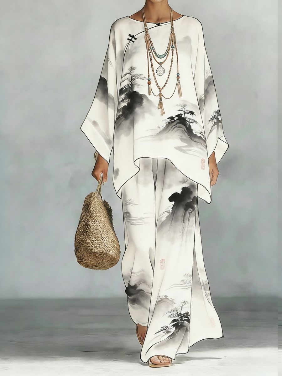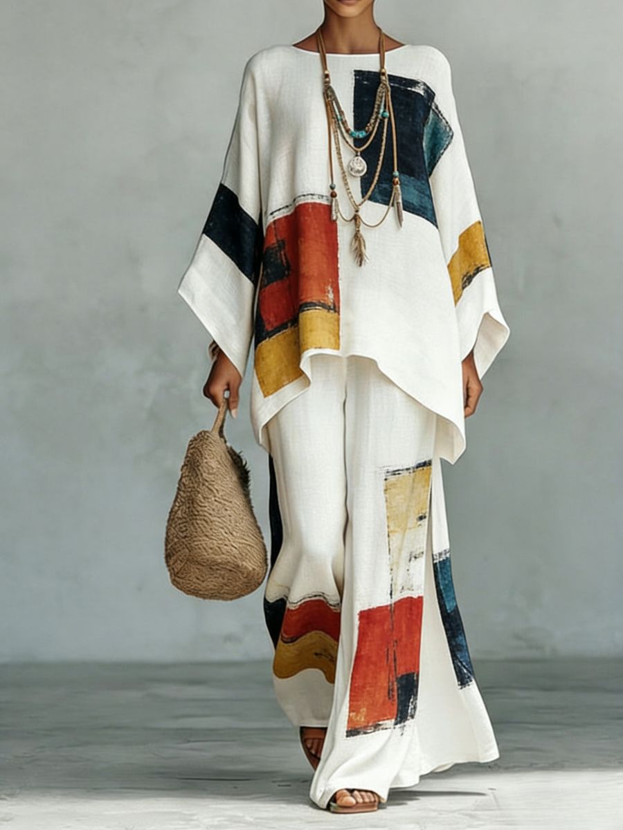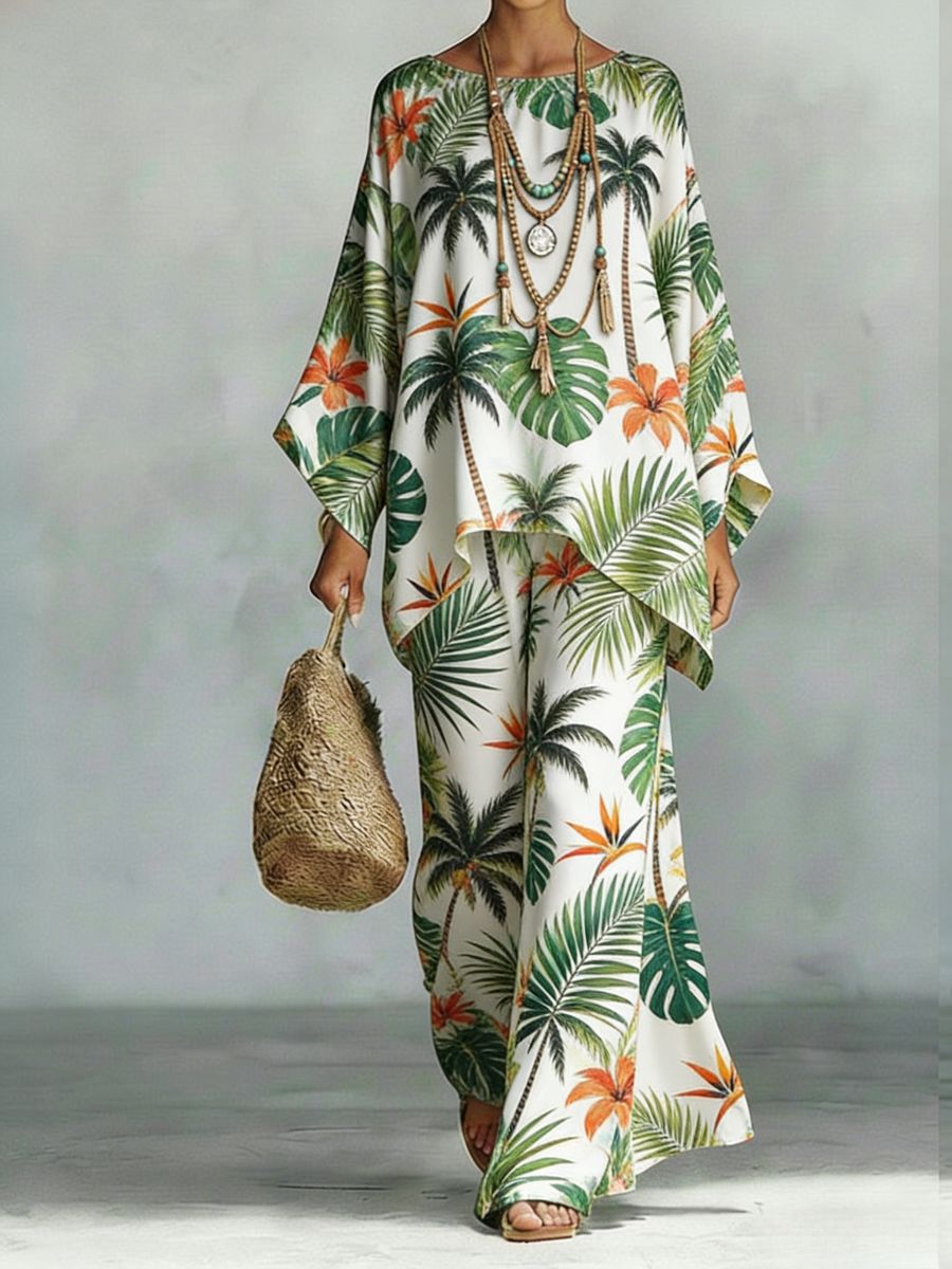 0 Review for Women's Floral Print Linen Wide-Leg Two-Piece Set