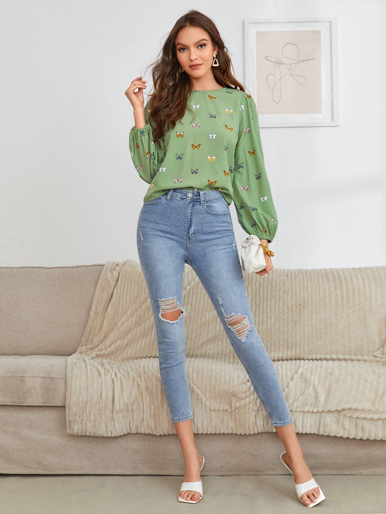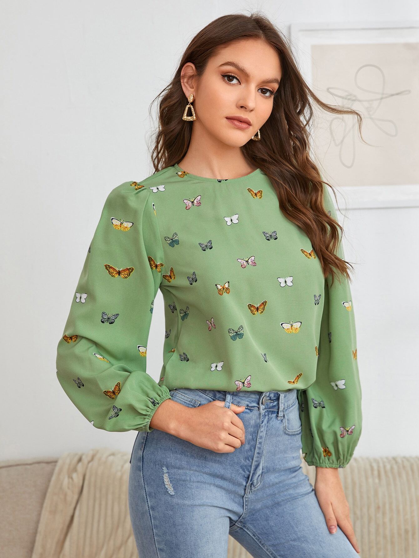 0 Review for Women's Long-sleeved Shirt Butterfly Print