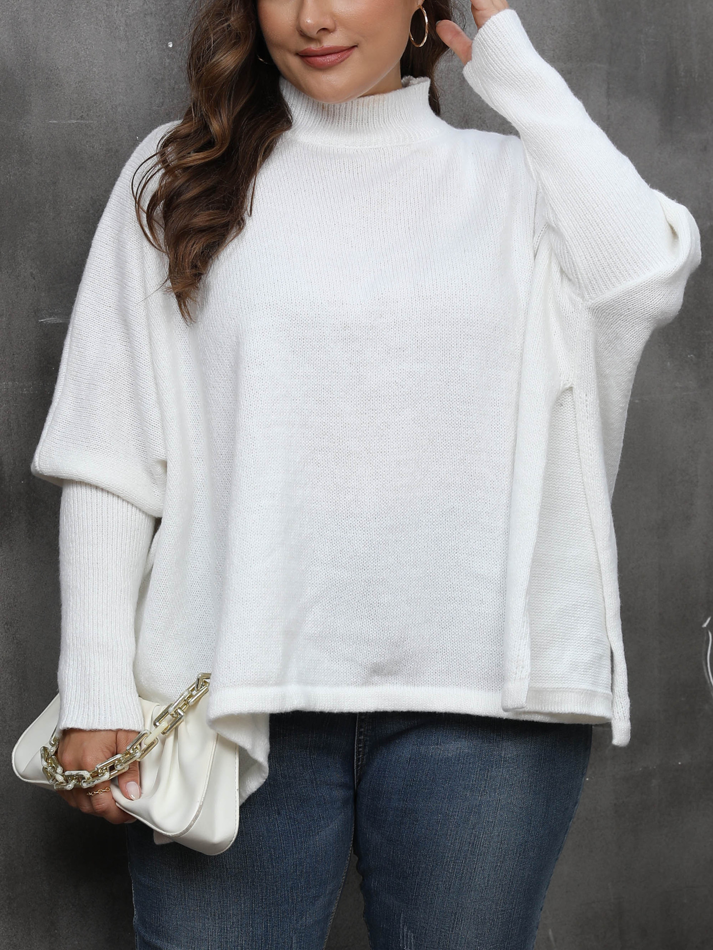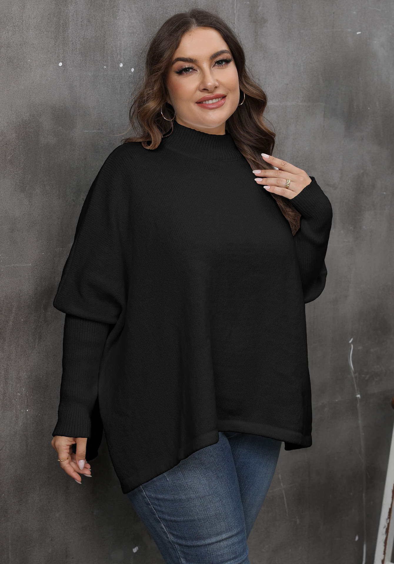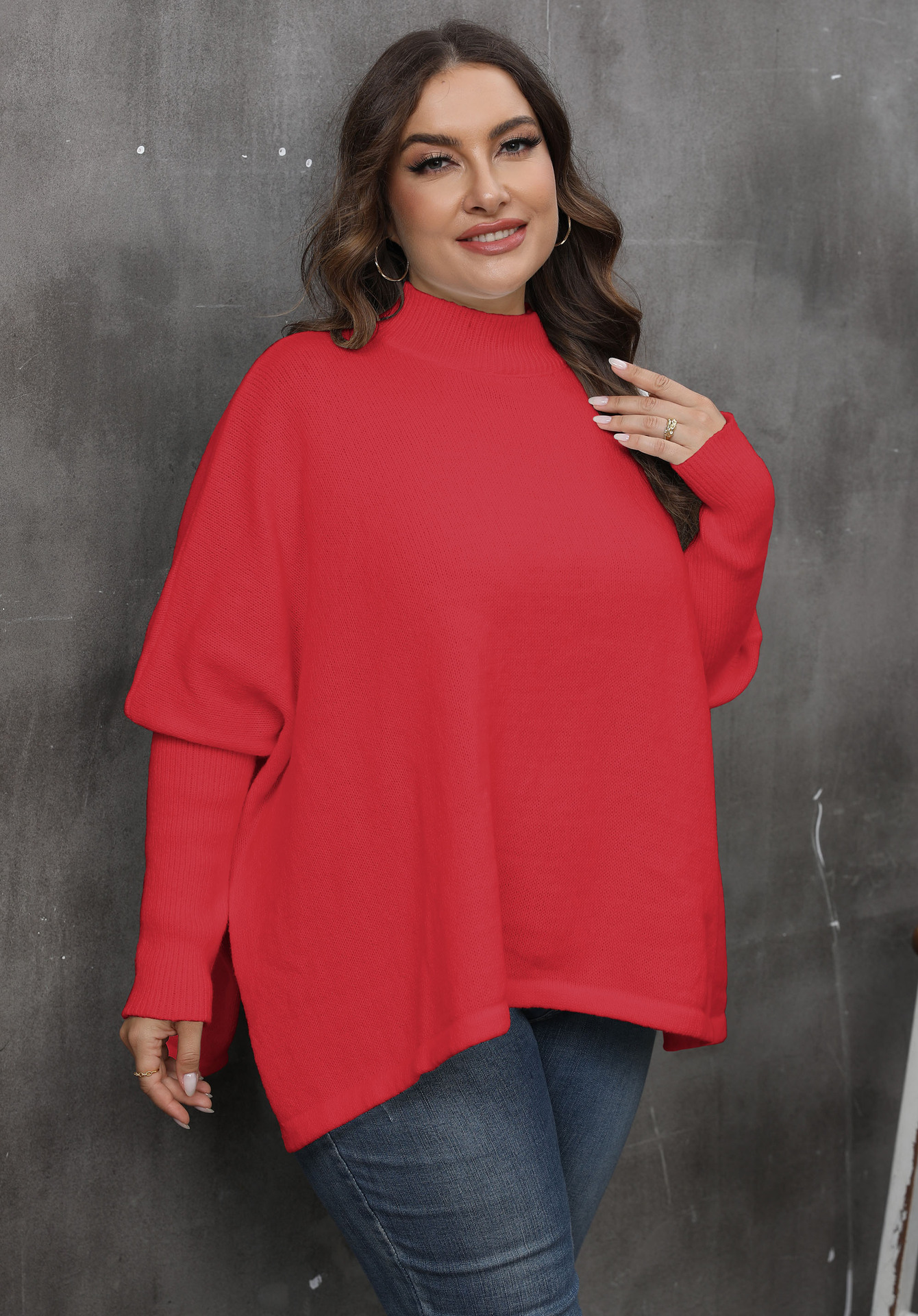 0 Review for Women's Pullover Plus Size Loose Split Batwing Sleeve Half Collar Top