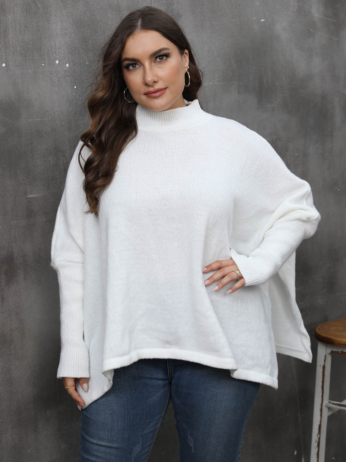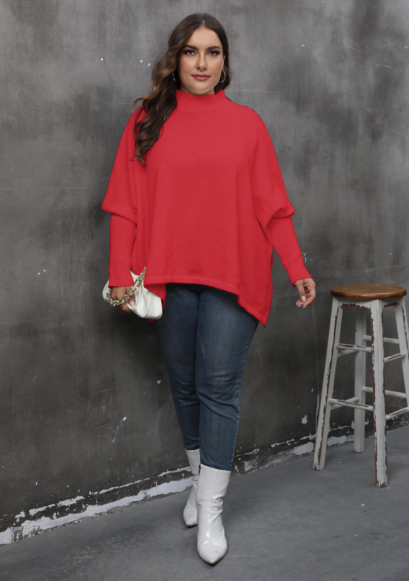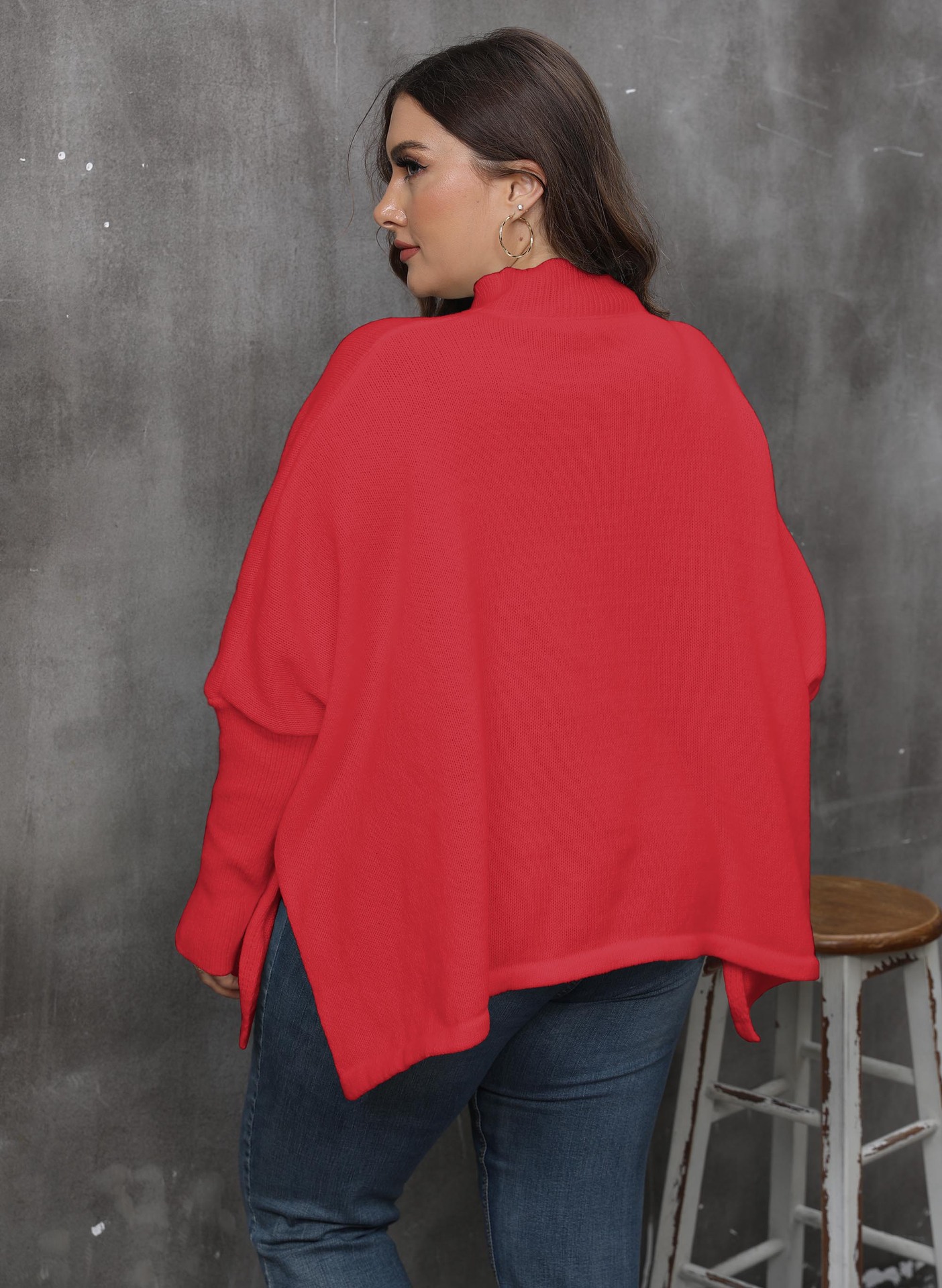 0 Review for Women's Pullover Plus Size Loose Split Batwing Sleeve Half Collar Top