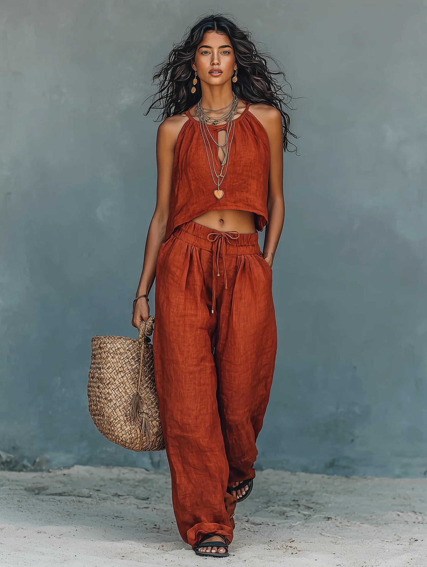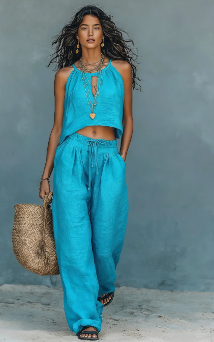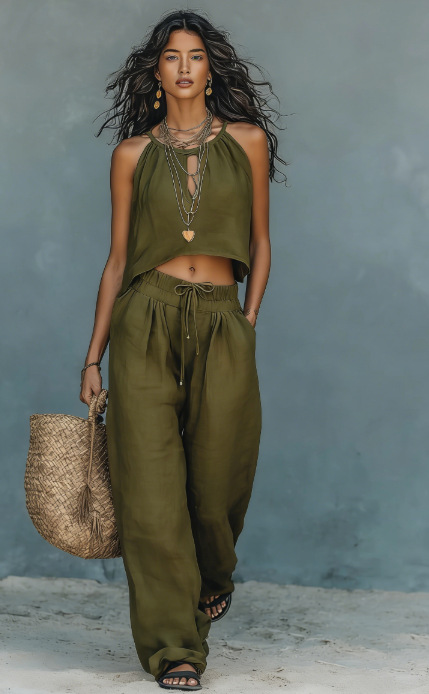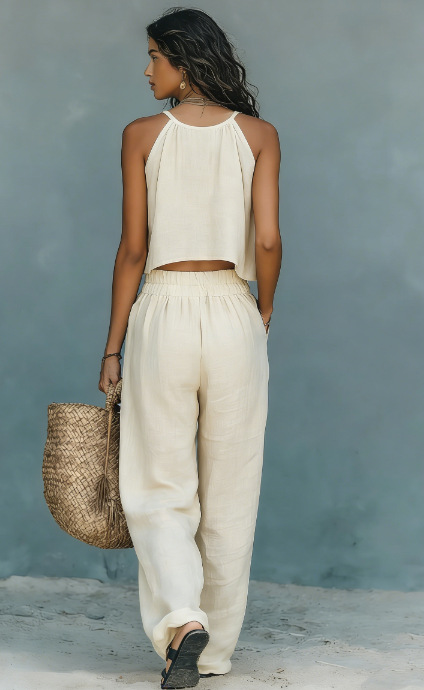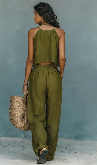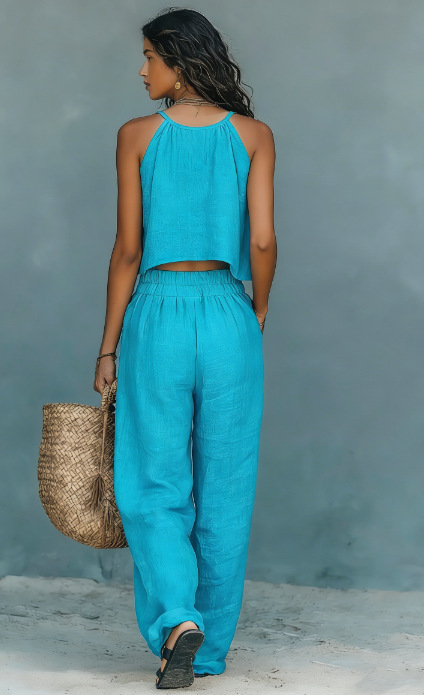 0 Review for Women's Sleeveless Tank Top And Wide-Leg Pants Set