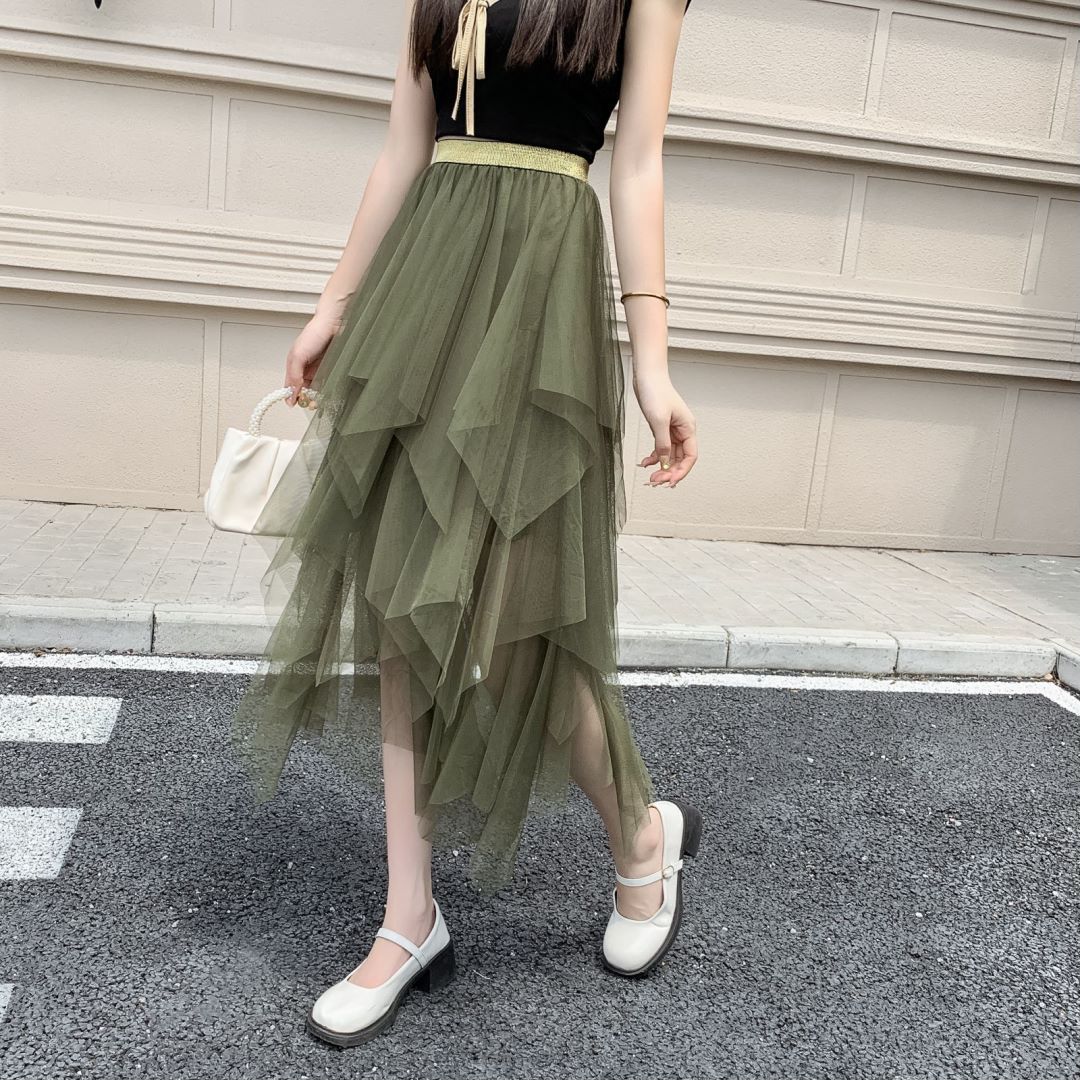 0 Review for Women's Solid-Color Versatile Asymmetrical Mesh Skirt