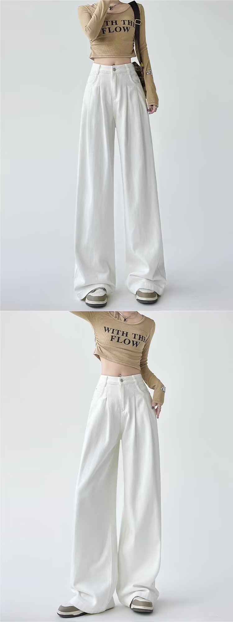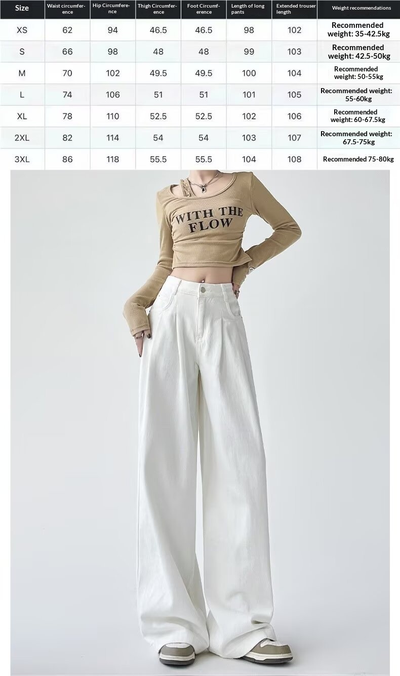 0 Review for Women's White Wide-leg Straight Jeans