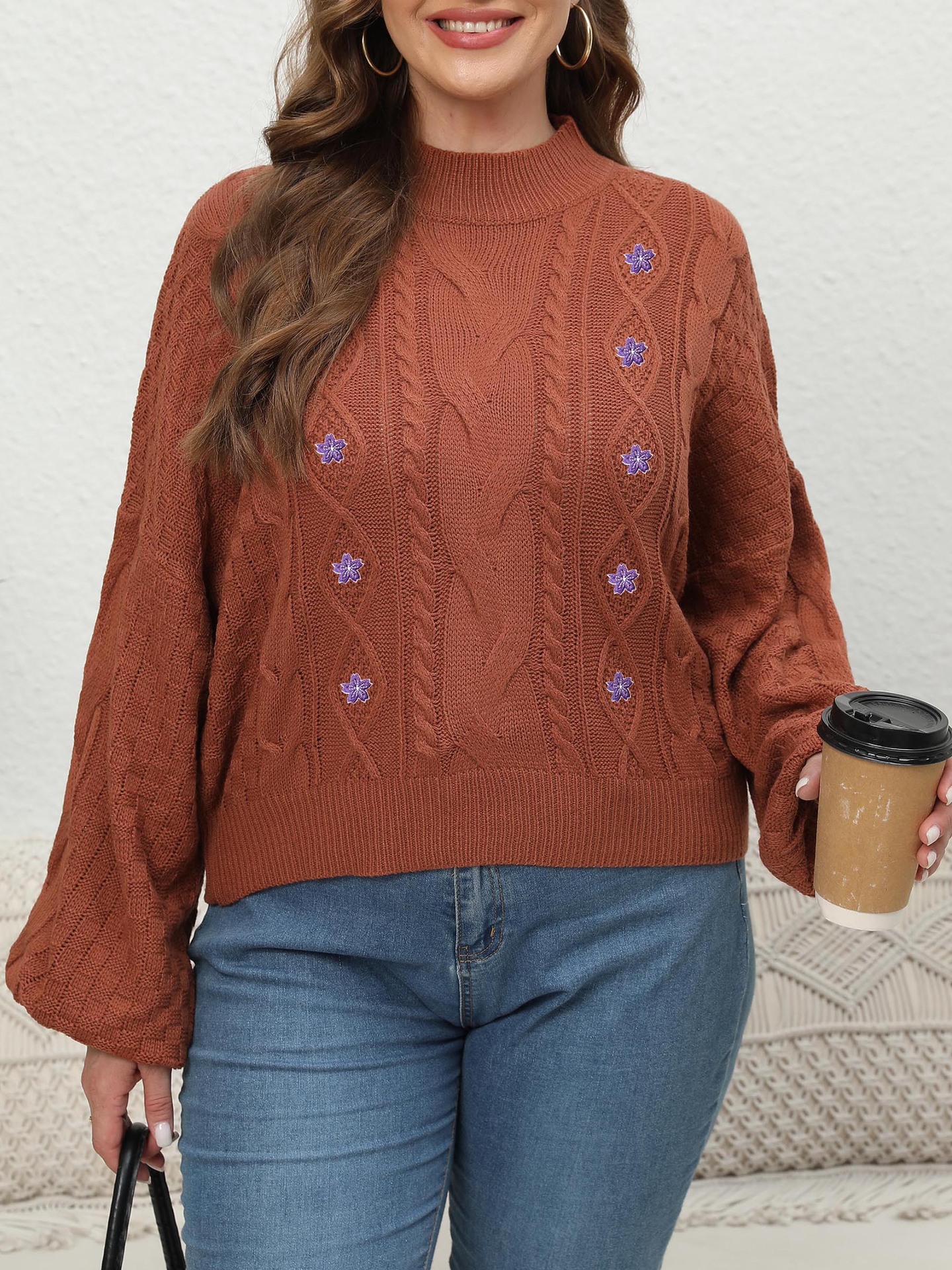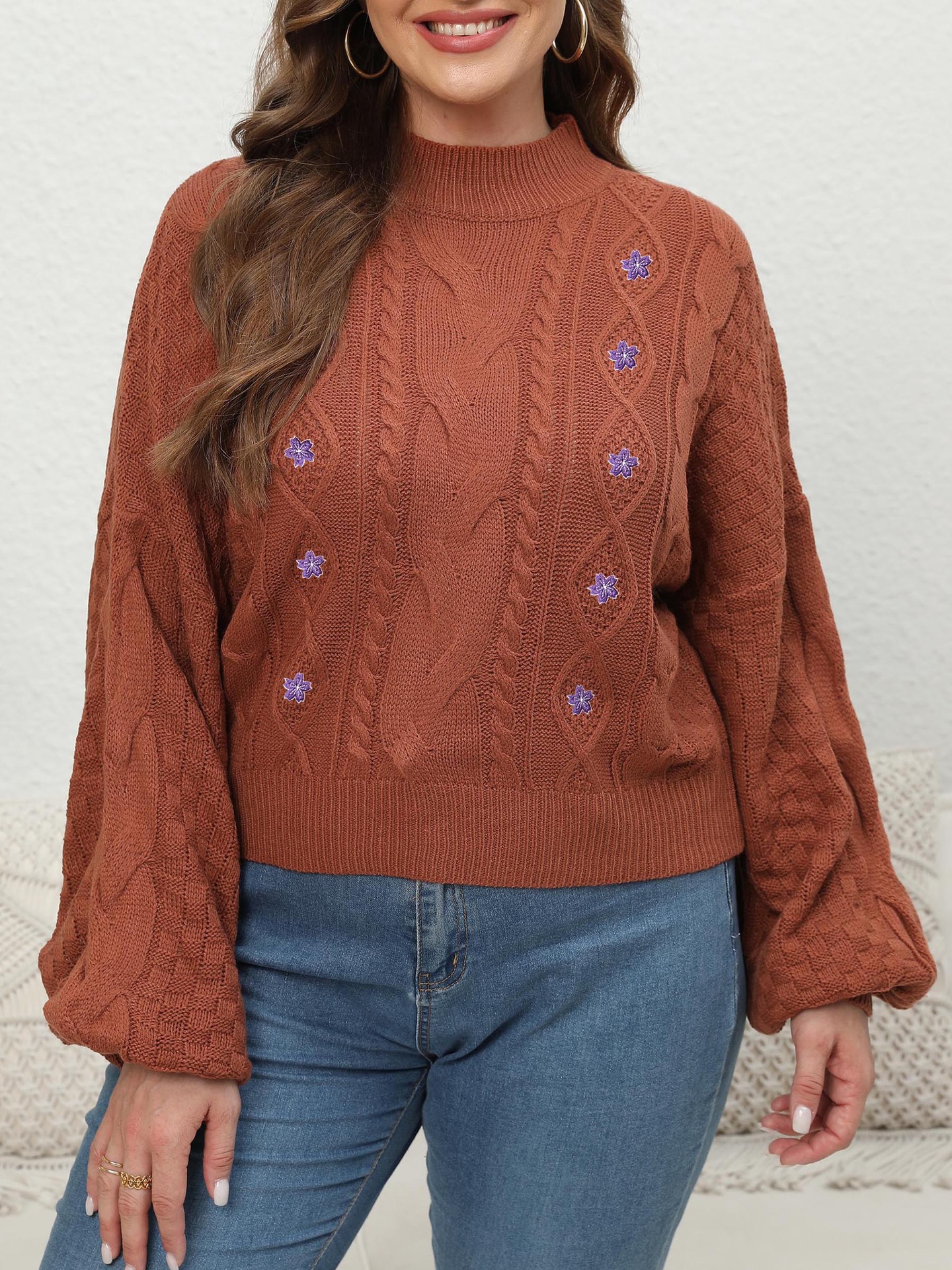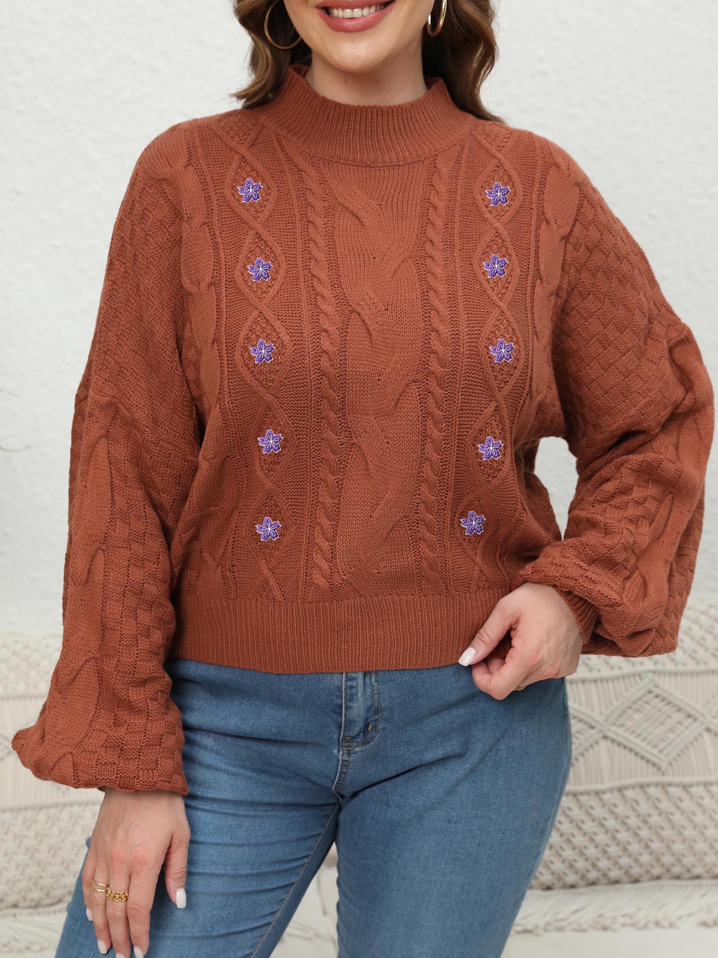 0 Review for Women's Woven Sweater Plus Size Half-turtleneck Lantern Sleeve Flower Sweater